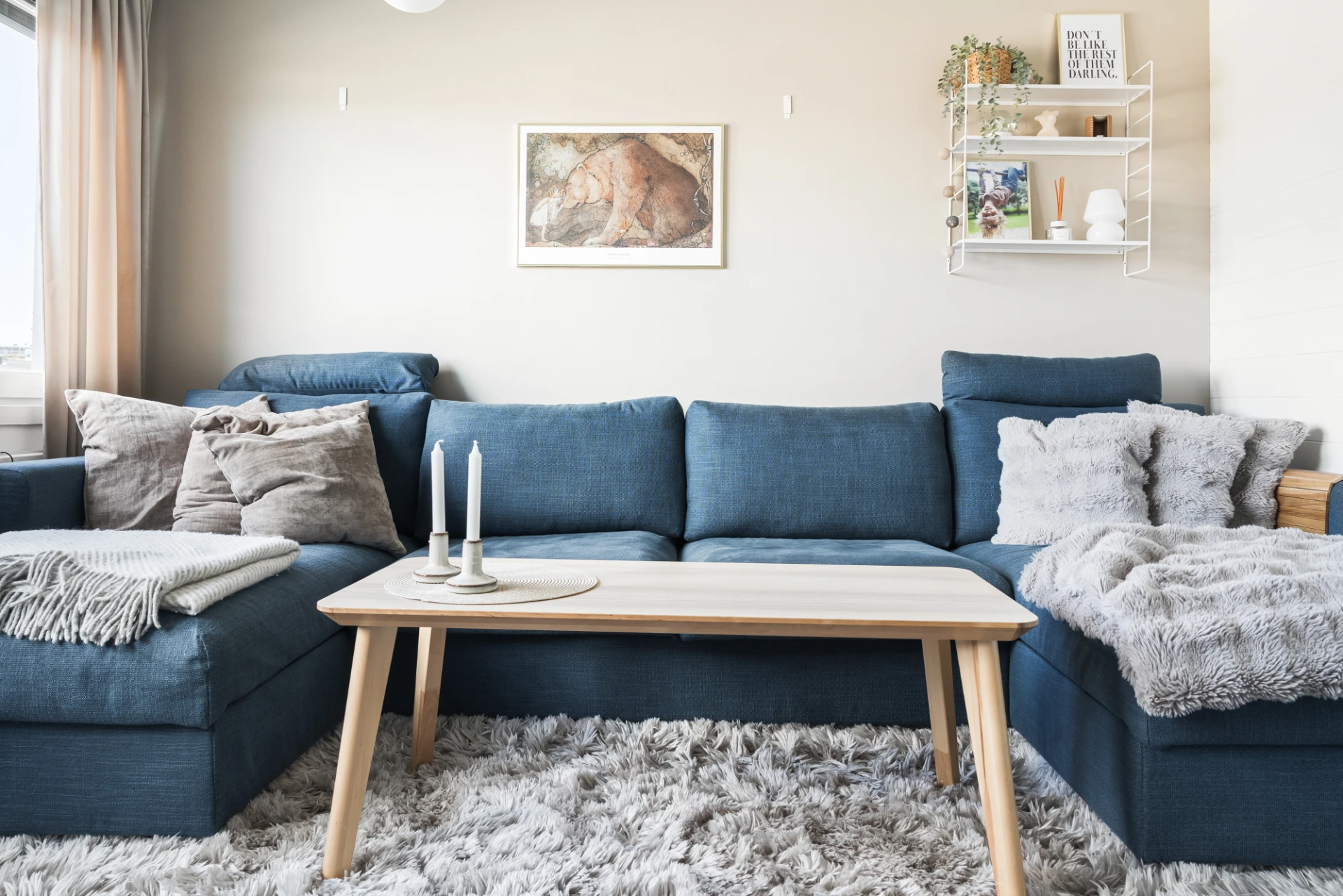 Vardagsrummet är idag avdelat och består av ett mindre vardagsrum och mindre sovrum. Väggen kan enkelt tas ner utan att göra skada på golv och väggar. Nuvarande ägare erbjuder sig gärna att återställa detta innan inflytt om nuvarande planlösning ej önskas. Parkettgolv och ljusa väggar.