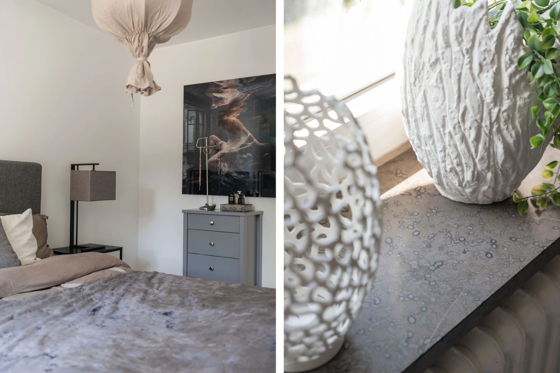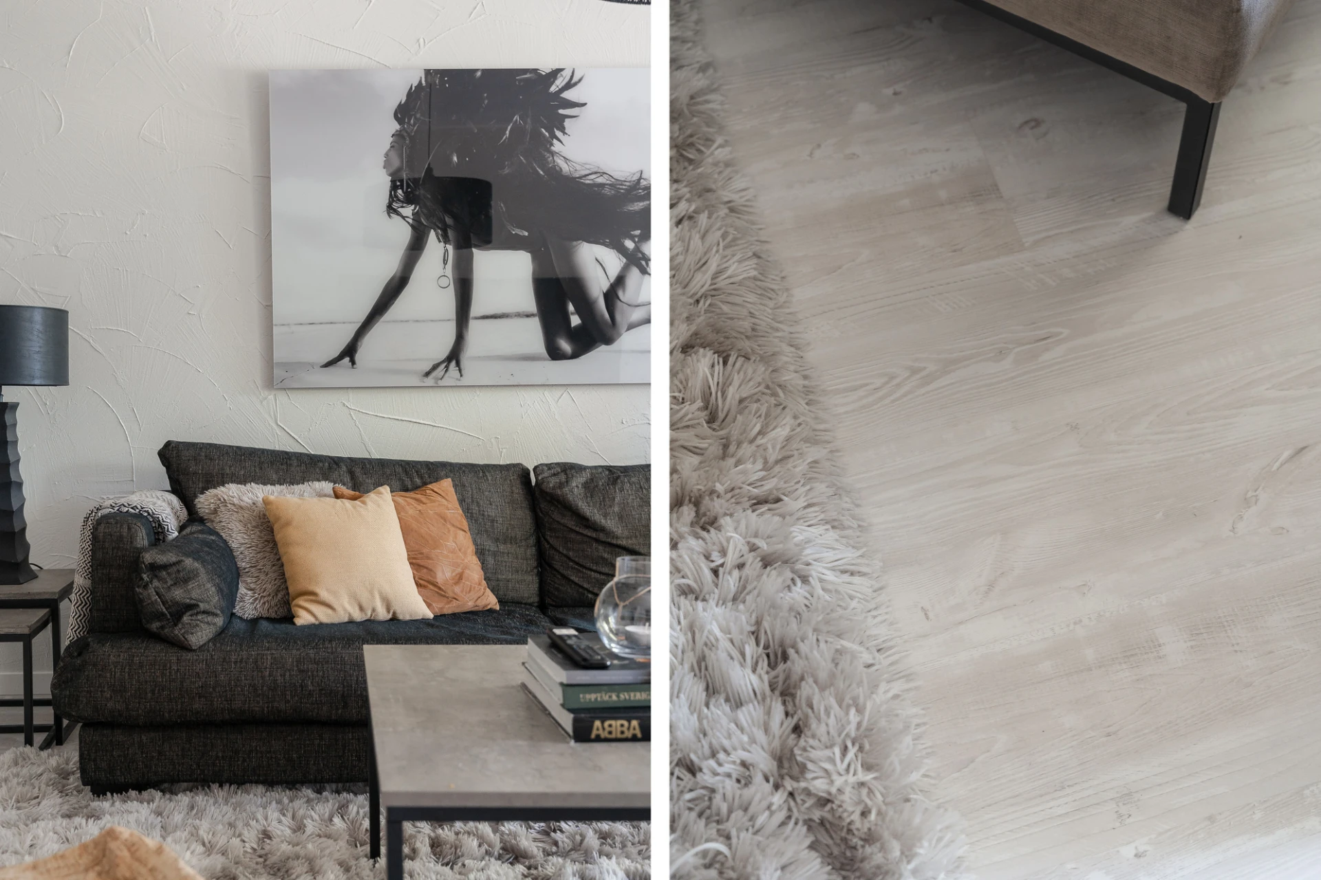 Ljust laminatgolv och ljus väggfärg (ebba grey).