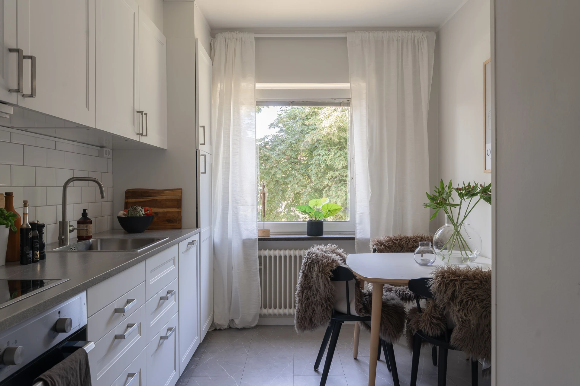 Välkommen till denna smakfullt renoverade tvårummare där kvalitet och elegans går hand i hand. Lägenheten bjuder på genomtänkt planlösning, modernt kök och badrum båda renoverade 2021. Den ljusa och välkomnande hallen leder dig vidare till det stilrena köket med goda arbetsytor, generös förvaring med plats för ett matbord. Vardagsrummet är rymligt och inbjudande med öppna sociala ytor och rikligt ljusinsläpp. Härifrån når du den inglasade balkongen som fungerar som ett extra rum året om perfekt för både avkoppling och umgänge. Sovrummet är lugnt och trivsamt med gott om förvaring och plats för dubbelsäng. Genomgående ljusa färgval och vackra golv i hall, vardagsrum och sovrum skapar ett enhetligt och harmoniskt hem. Här bor du på ett centralt läge med närhet till förskolor, skolor, service och kommunikationer. En lägenhet som måste upplevas på plats. Varmt välkommen på visning!