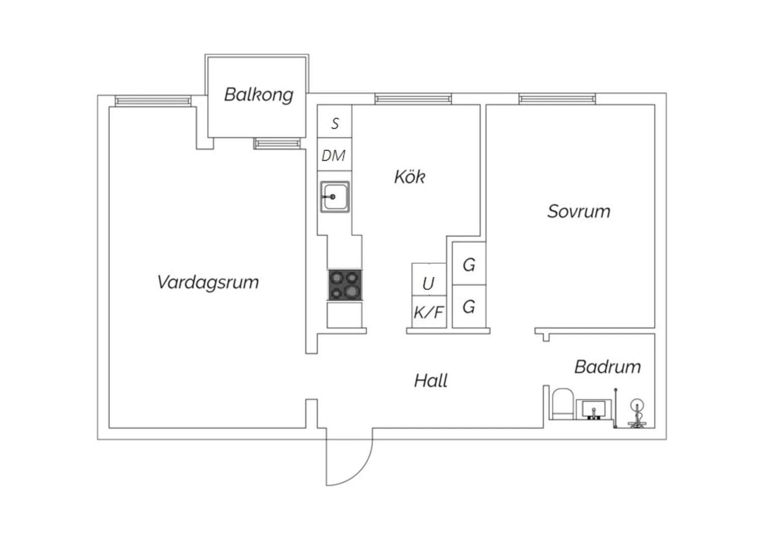 Storlek: 2 rum och kök, 52,5 kvm boarea