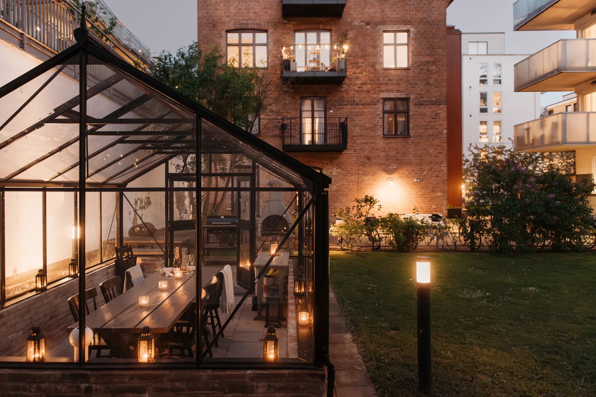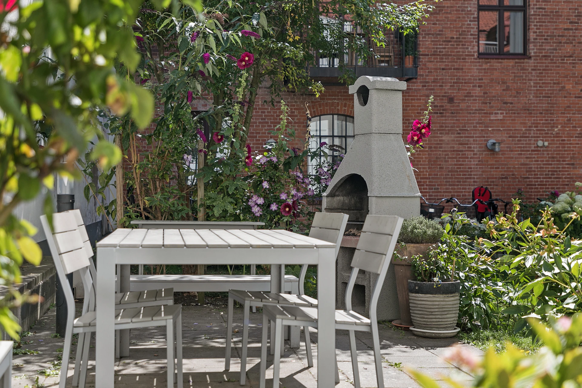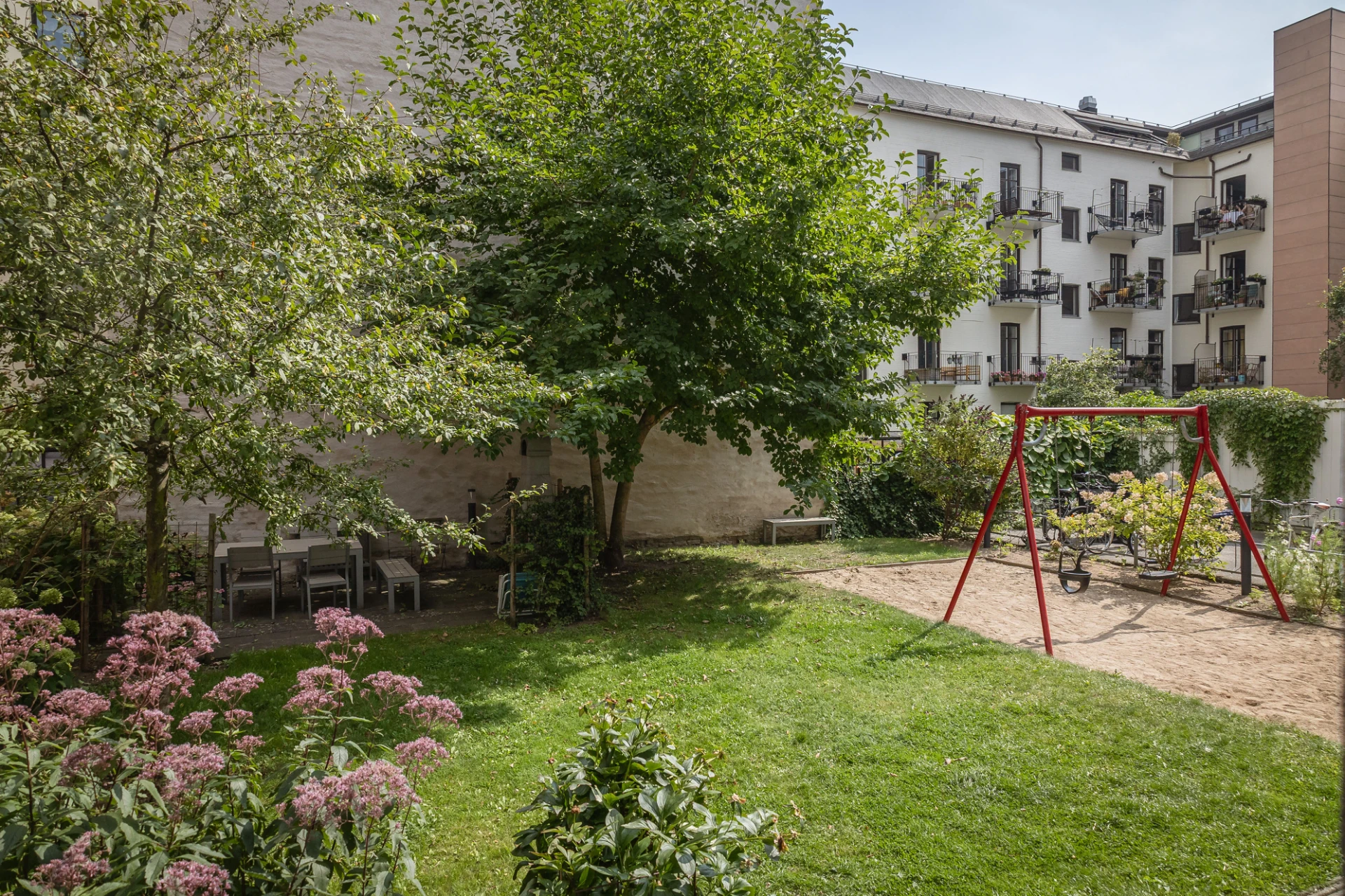 Samtliga lägenheter är utrustade med egen tvättmaskin och torktumlare. I föreningen finns en fin och barnvänlig innergård med lekplats samt sittgrupper och gemensam grill. På framsidan finns även en kryddträdgård. Det finns även cykelställ på gården.