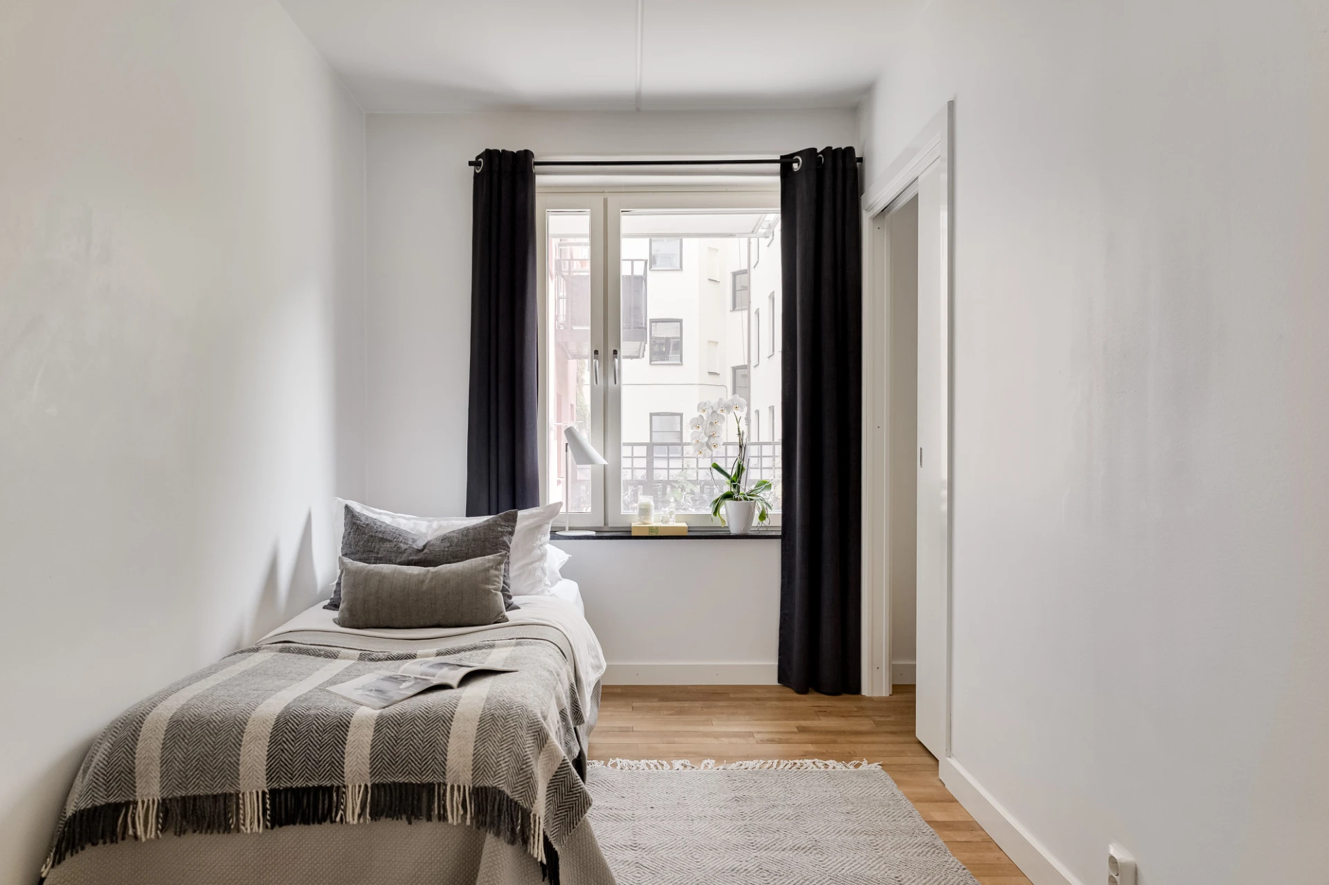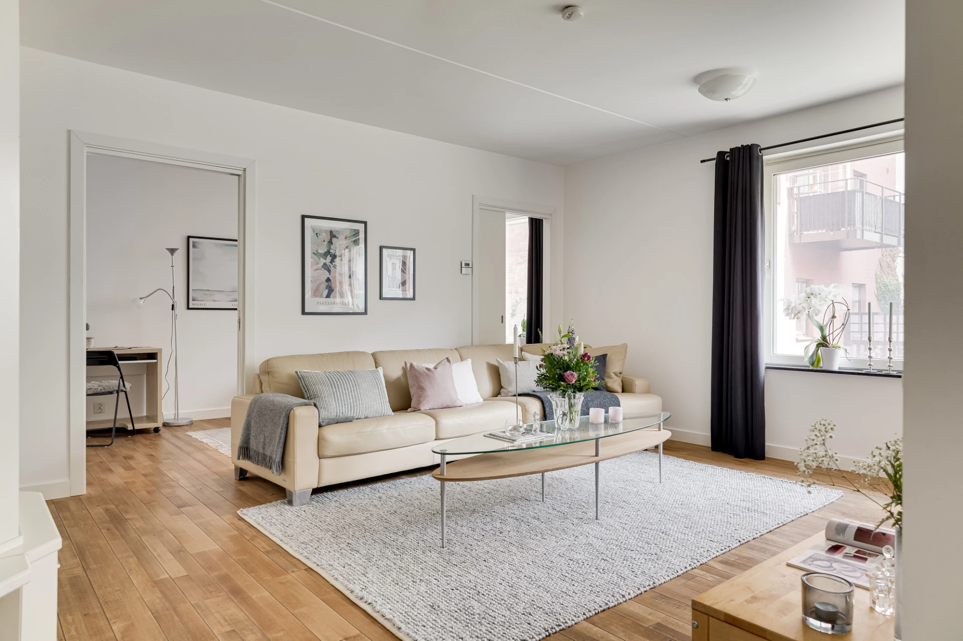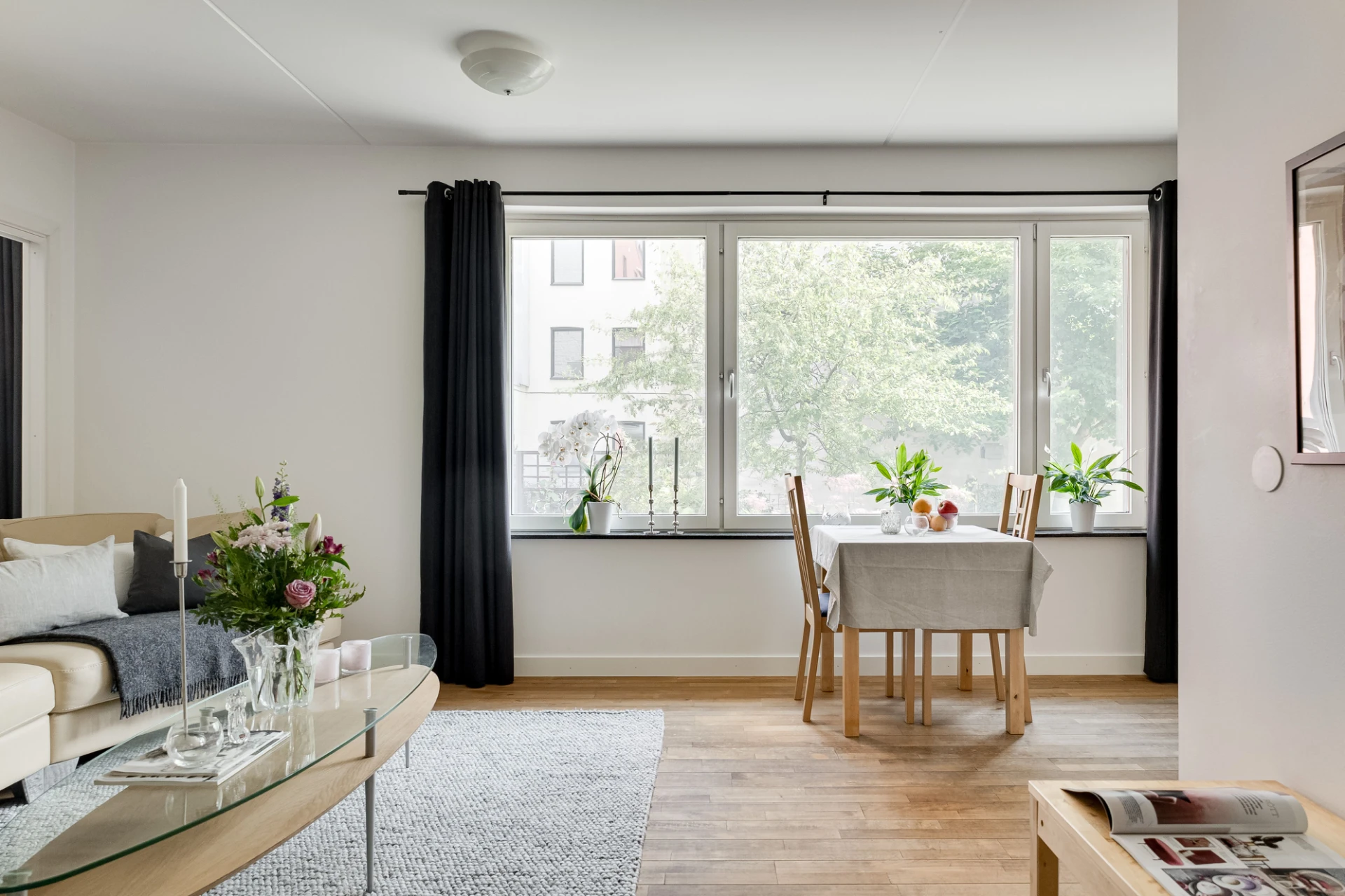 På attraktiv adress på populära Drottningtorget kan vi nu stolt presentera denna trivsamma tvårummare med välplanerade kvadratmeter. Här avnjuts en bostad med gårdsvända fönster som ger ett vackert ljusinsläpp alltigenom. Bostaden präglas av en enhetlig interiör med genomtänkta färgval som förgyller lägenhetens hemtrevliga känsla. Planlösningen är otroligt bra med luftiga sällskapsytor i kök och vardagsrum vilket blandar matglädje med varm och social atmosfär i en semiöppen planlösning. Vidare finner vi ett rymligt sovrum och ett helkaklat badrum i bra storlek med lyxen av egna tvättmöjligheter.