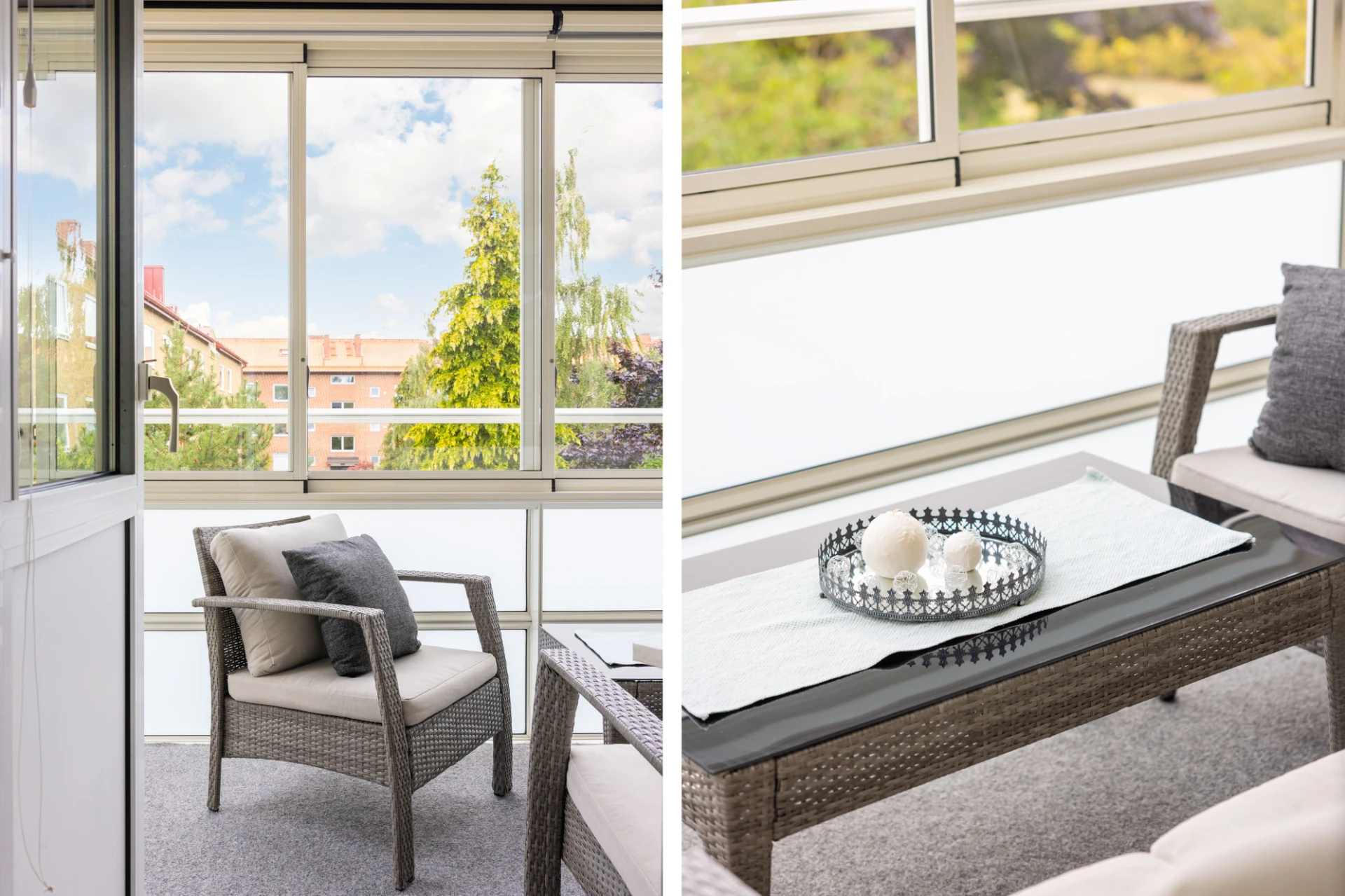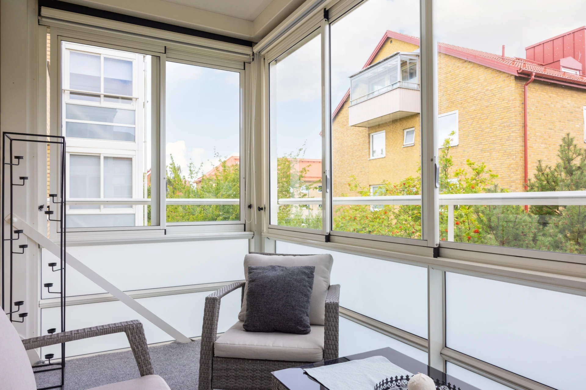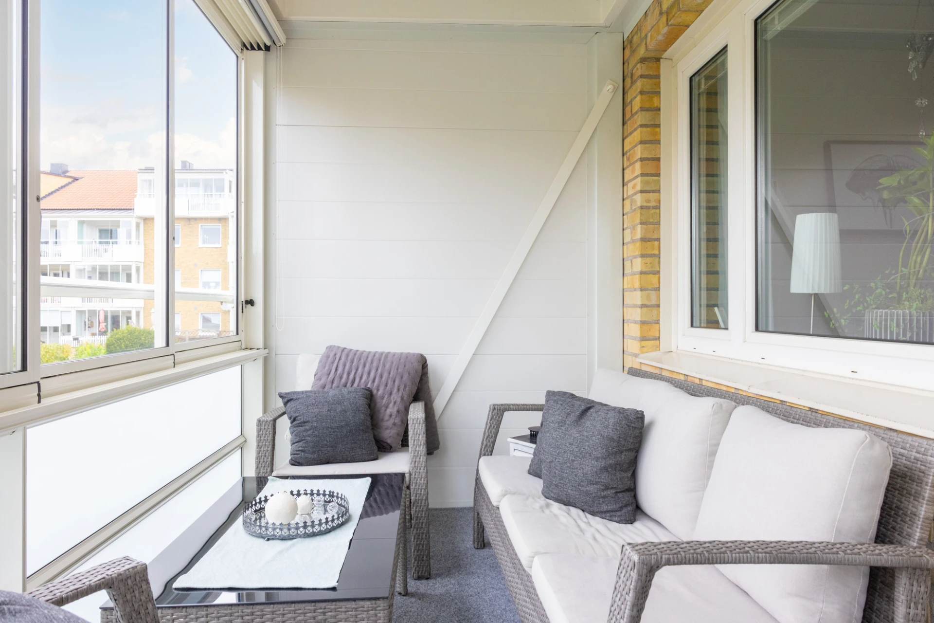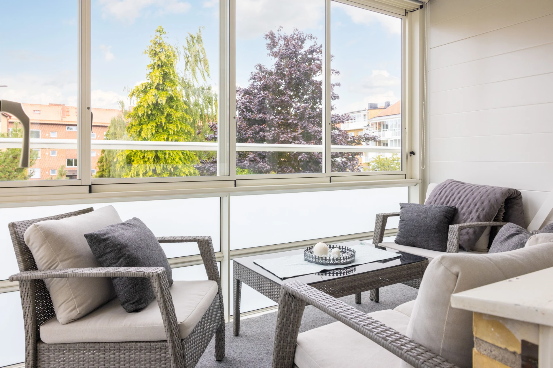 Optimalt planerad trea med inglasad balkong i lugnt och trivsamt område