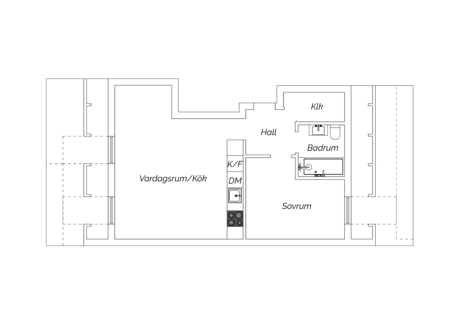 Storlek: 2 rum och kök, 50 kvm boarea, 7 kvm biarea