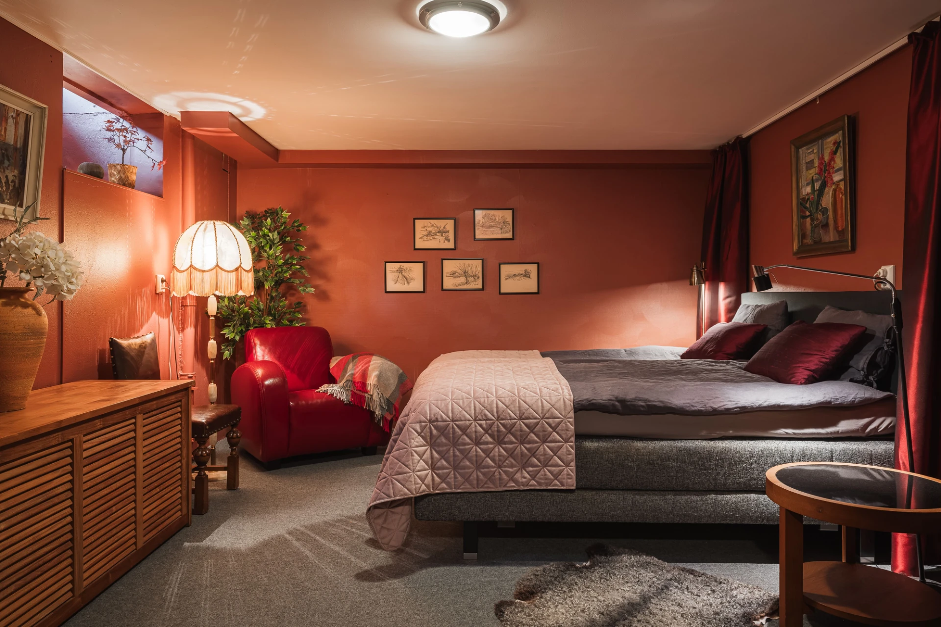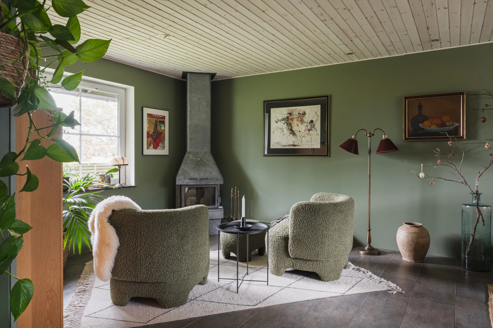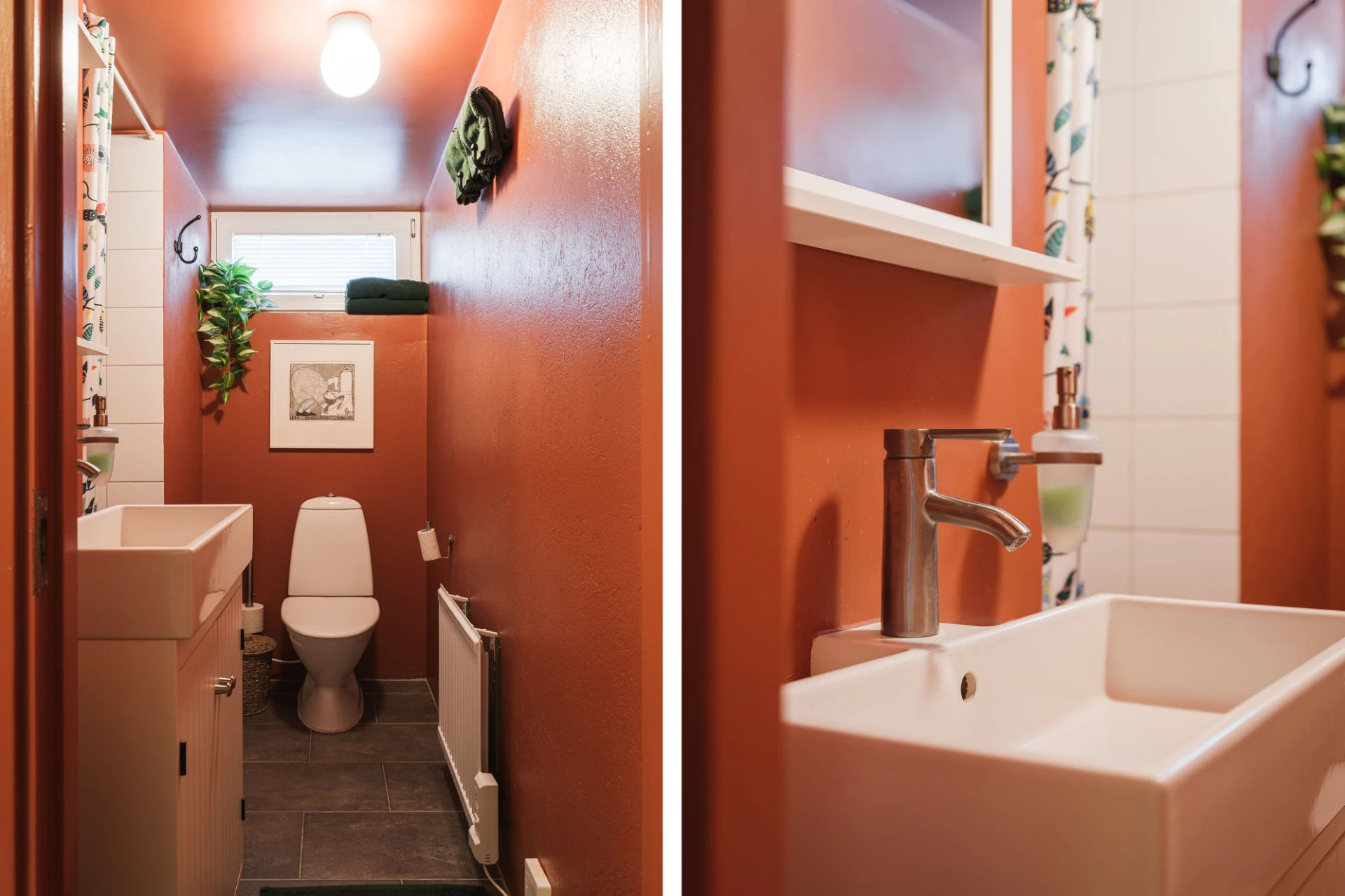 El med golvvärme i kök, badrum, matsal, v-rum, sov bv, tvättstuga, hall, källare