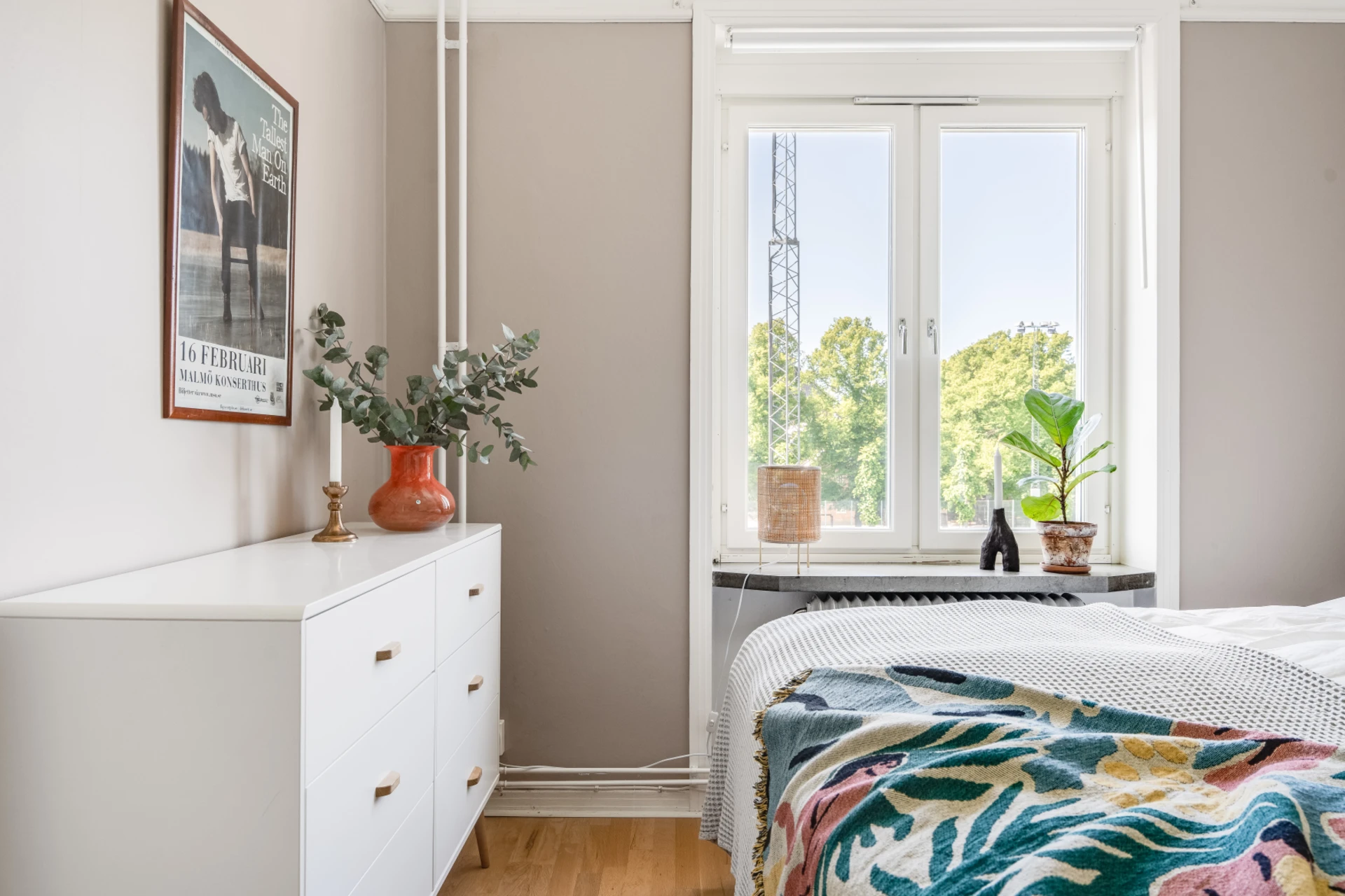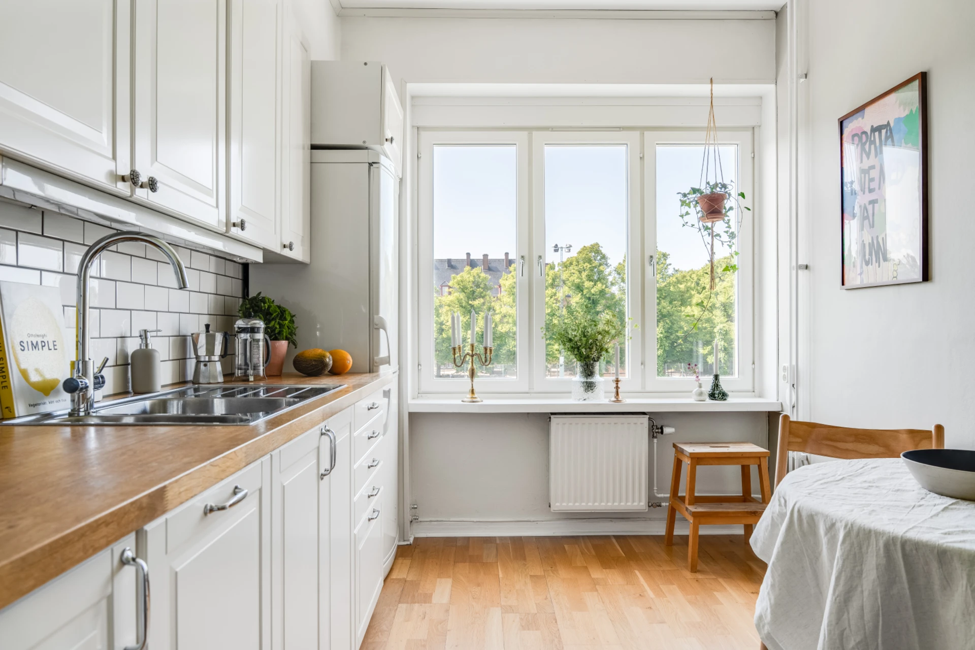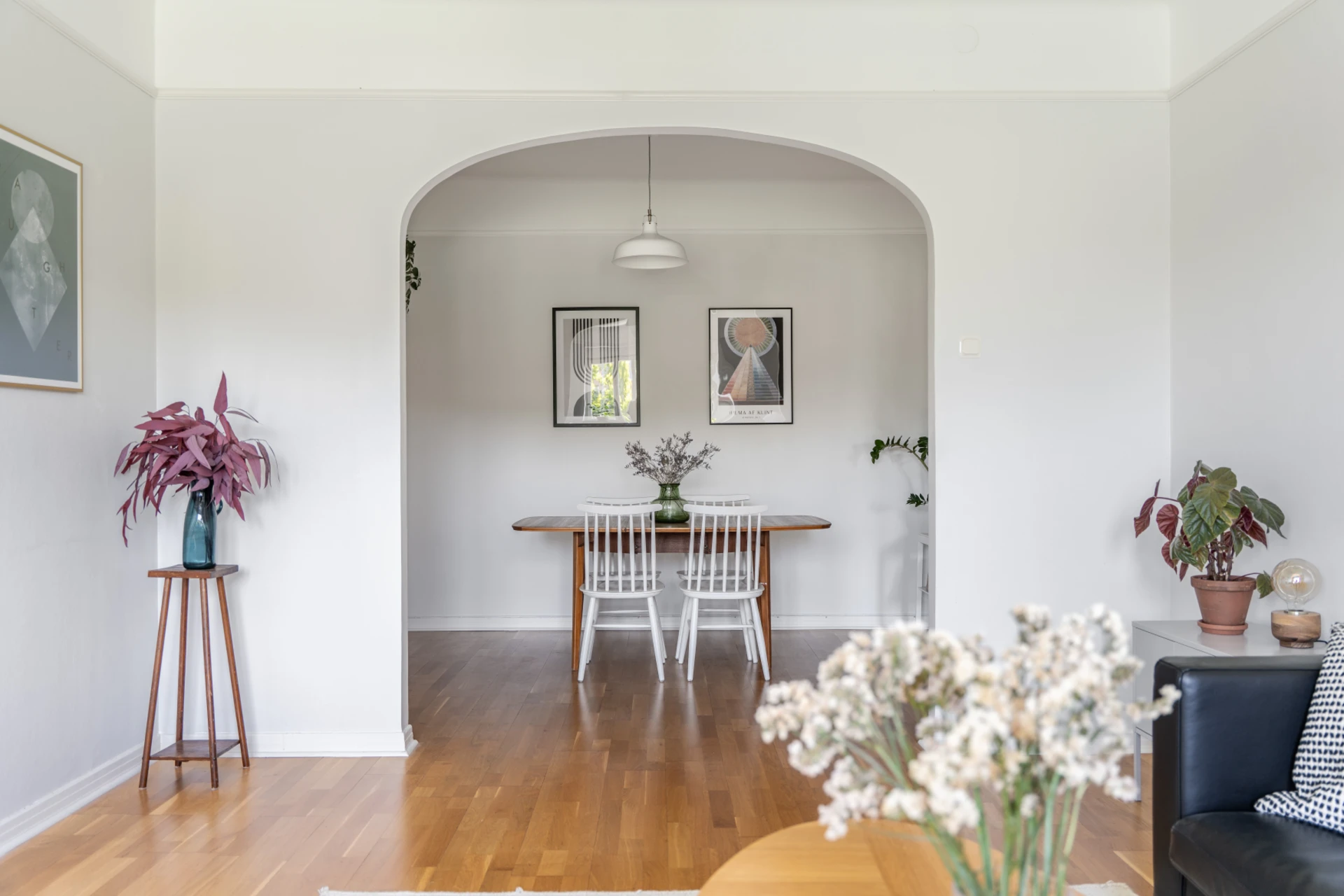 Nu har vi nöjet att presentera denna inbjudande 2,5:a högt upp i huset – en pärla där ljuset flödar in genom stora fönster med grönskande vy. Bostaden bjuder på en smart planlösning som skapar en generös känsla av rymd. Den praktiska halvan präglas en härlig och social matsal i direkt anslutning till det luftiga vardagsrummet - vilket tillsammans blir en naturlig plats att umgås med nära och kära. Genomgående parkettgolv, högt i tak och tidsenliga valv omfamnar oss med en enhetlig och karaktäristisk atmosfär. Det ljusa och inbjudande köket i lantlig stil med profilerade luckor och en praktisk diskmaskin, rymmer en matplats där vardagen kan få ta plats. Lägg därtill ett rofyllt sovrum med goda förvaringsmöjligheter och ett nyligen renoverat samt helkaklat badrum i stilren ton.