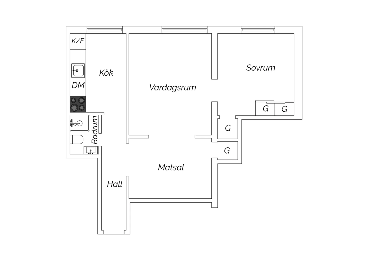 Disponeras som 2,5 rum och kök enligt nuvarande planlösning. 2 rum och kök enligt föreningens information. I köpet ingår klädhängare i hall, hyllsystem i halvan och garderob i sovrum.
