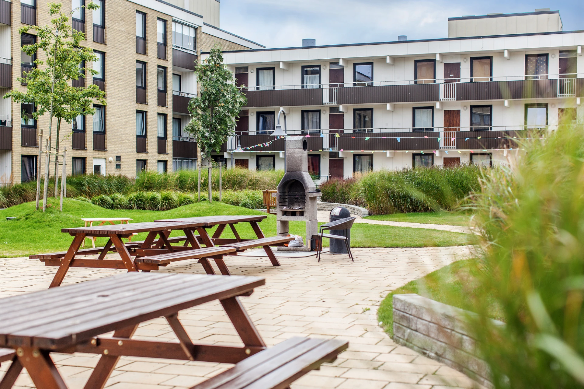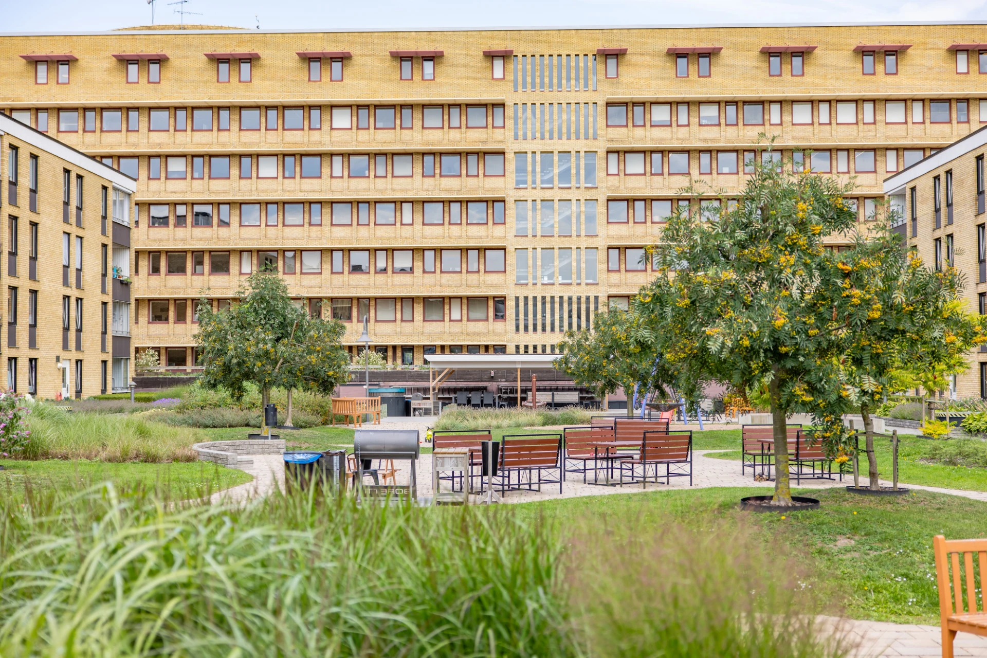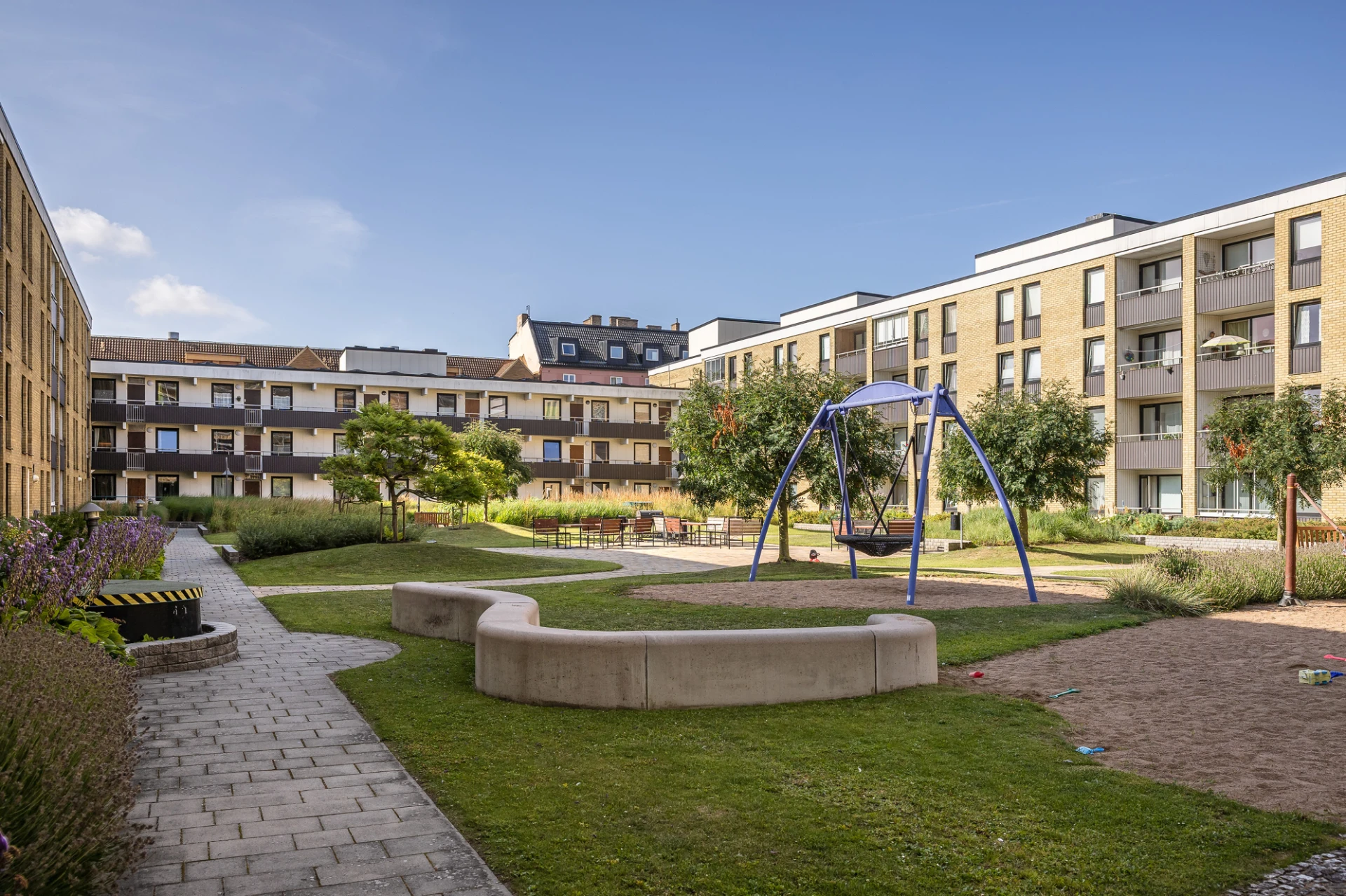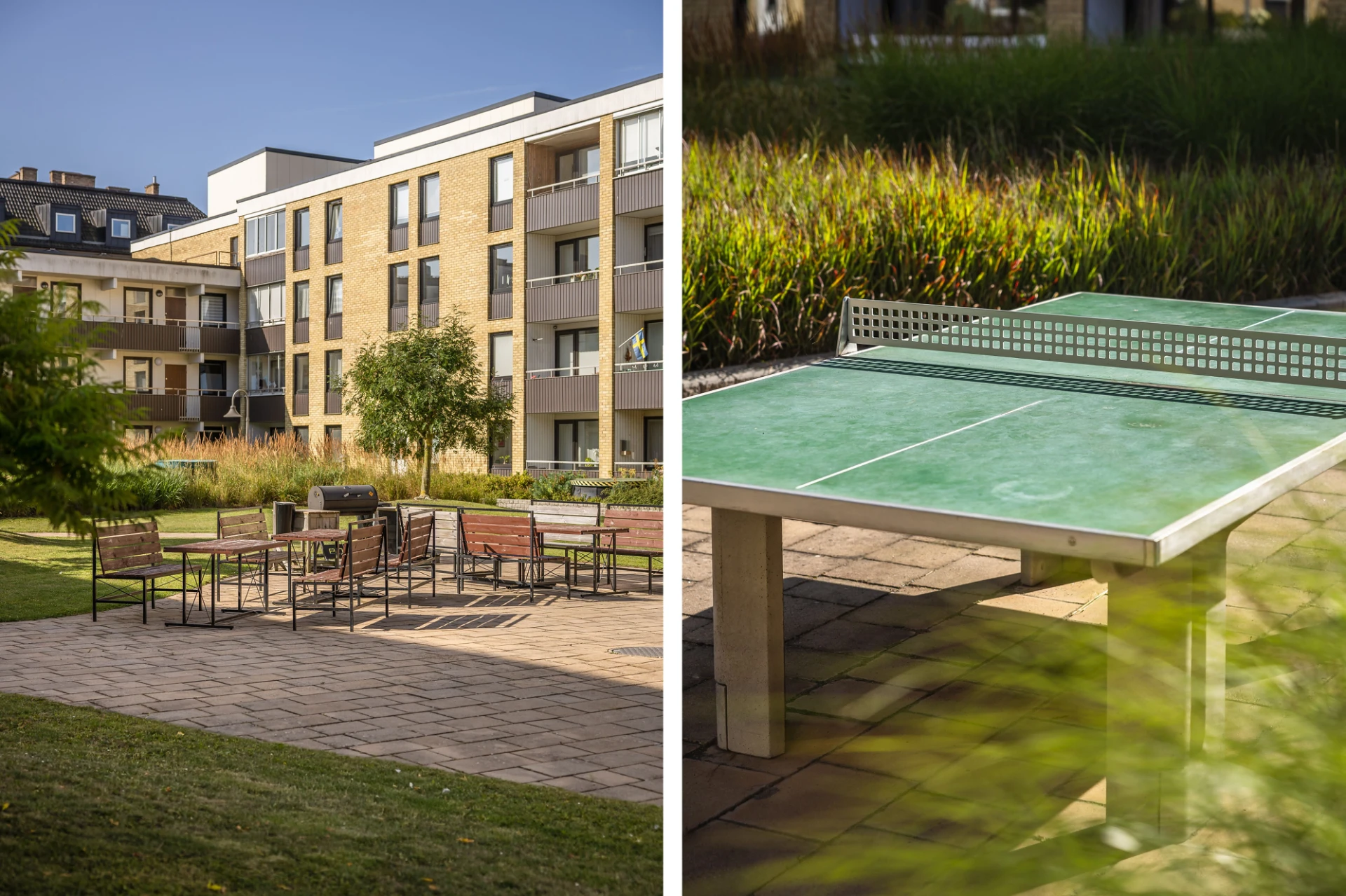 Föreningen har en otroligt inbjudande innergård, belägen på våning 2, med grillplatser och utemöbler, lekplats samt ett fast pingisbord.
