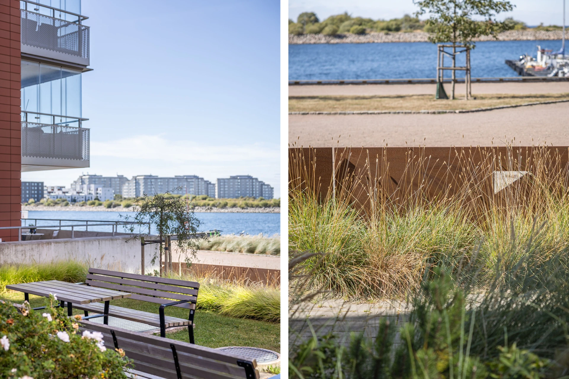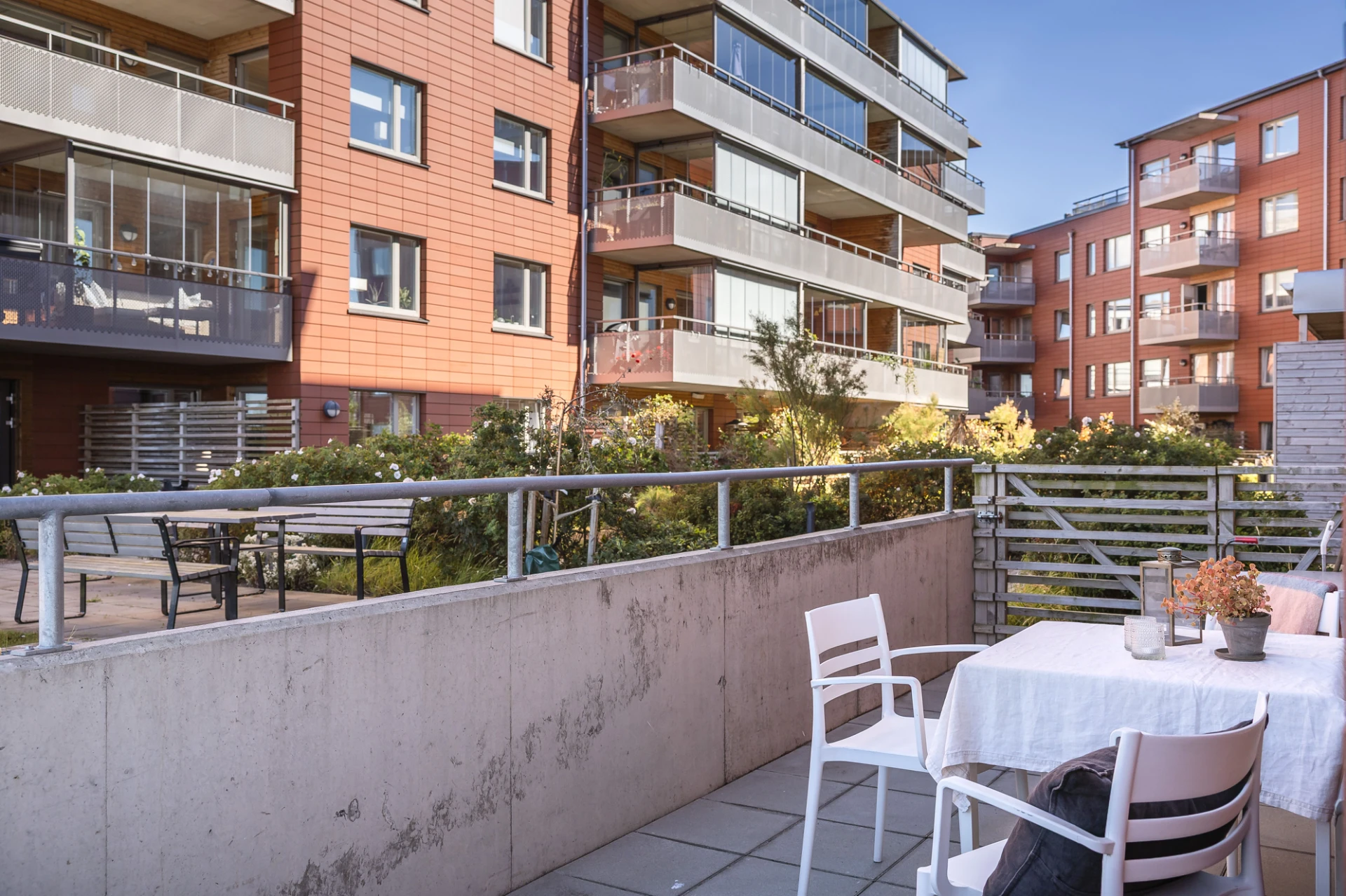 I föreningen finns två stilrena innergårdar med trädäck, utemöbler och hängmatta samt gott om plats för umgänge.