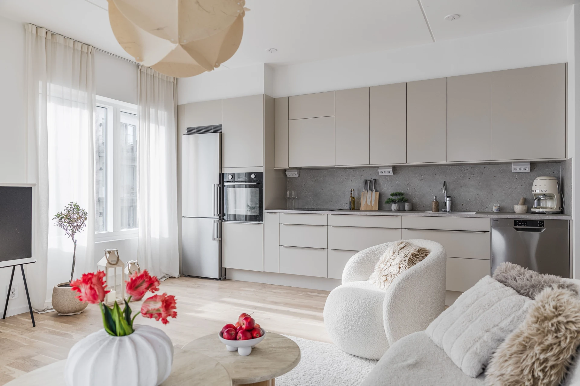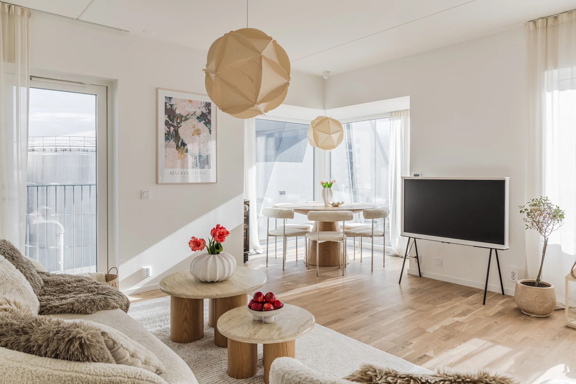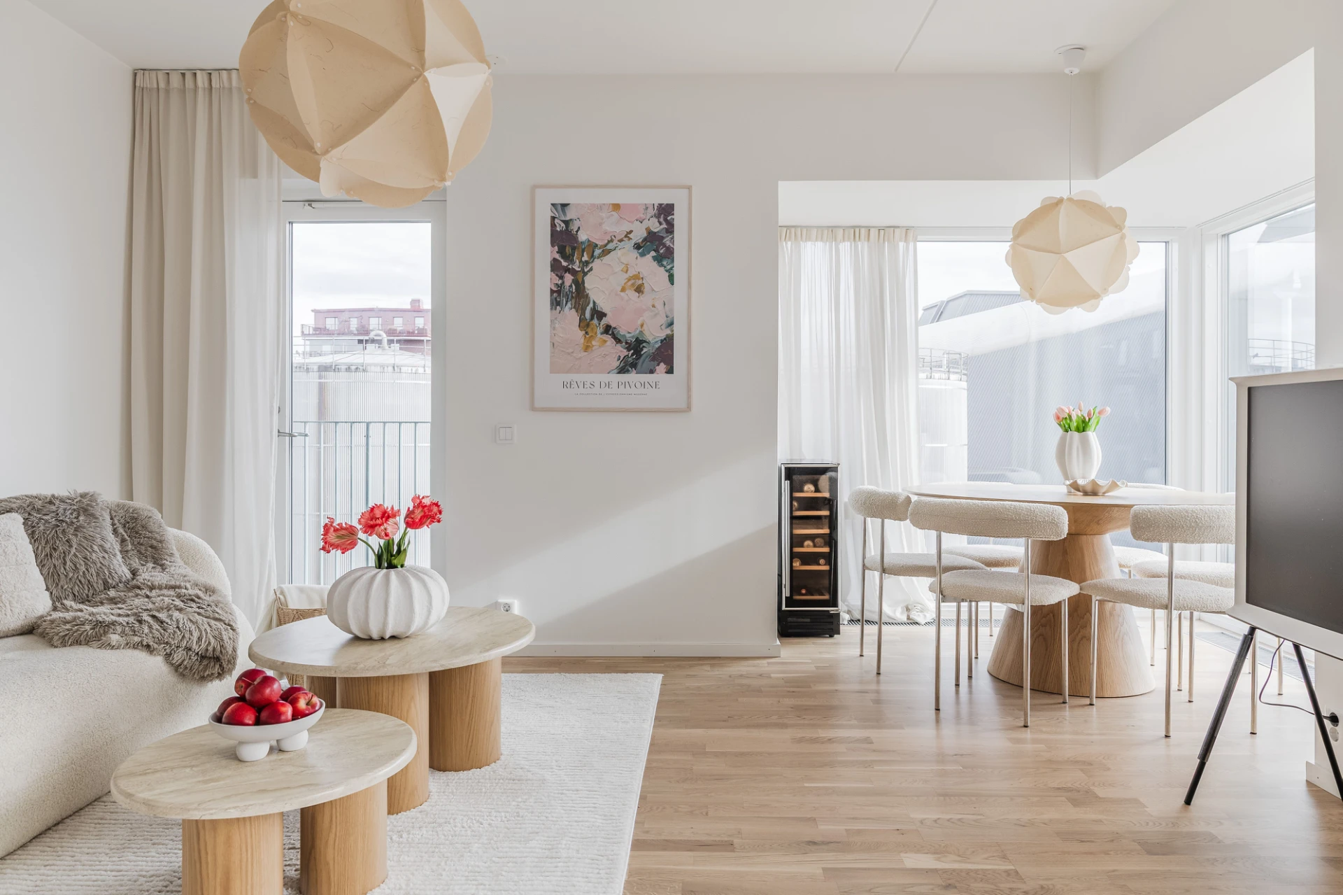 Nu har vi nöjet att presentera en underbar gaveltvåa i hjärtat av Limhamns Sjöstad – med genomtänkt planlösning och en rymlig balkong som bjuder på vacker havsglimt. Den öppna planlösningen mellan kök och vardagsrum gör bostaden lika funktionell i vardagen som inbjudande vid sociala tillställningar. Här möts dansk design och svensk funktionalitet, med inslag som ett inglasat burspråk och en generös takhöjd som skapar en luftig och ljus atmosfär. De sociala ytorna flyter harmoniskt samman och leder direkt ut till den stora balkongen.