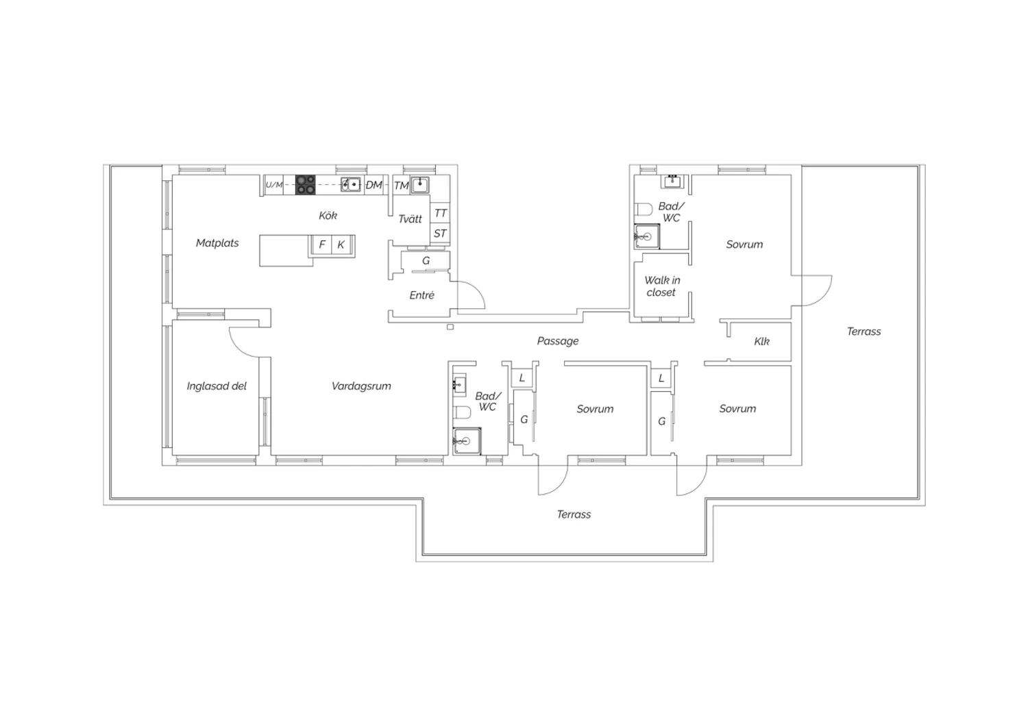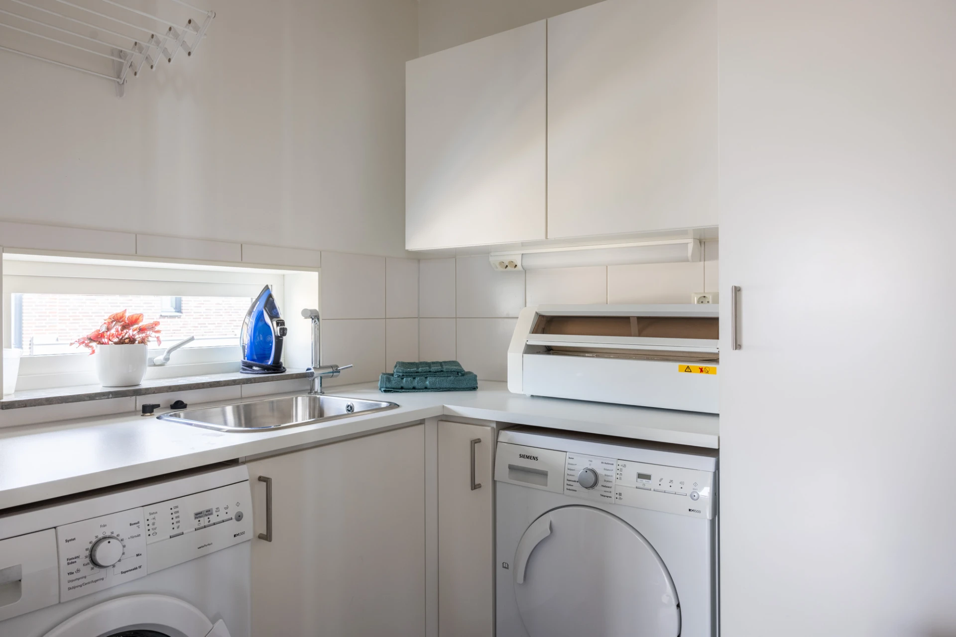 Utrustad med vask, arbetsbänk, förvaring samt tvättmaskin och torktumlare.