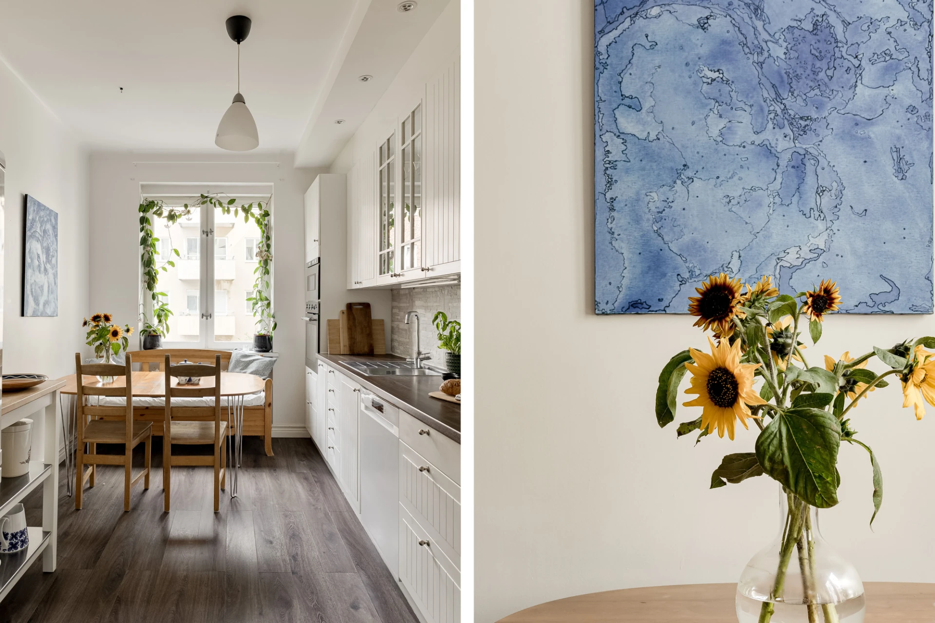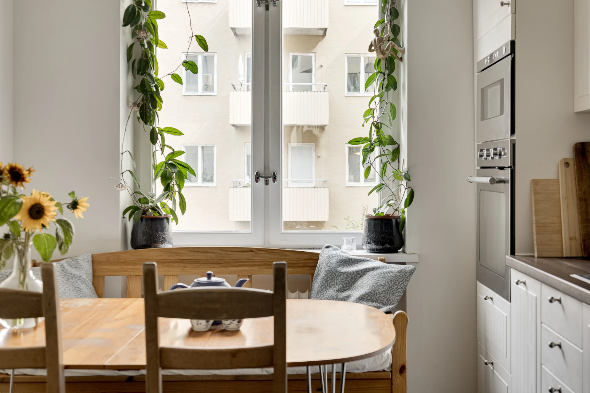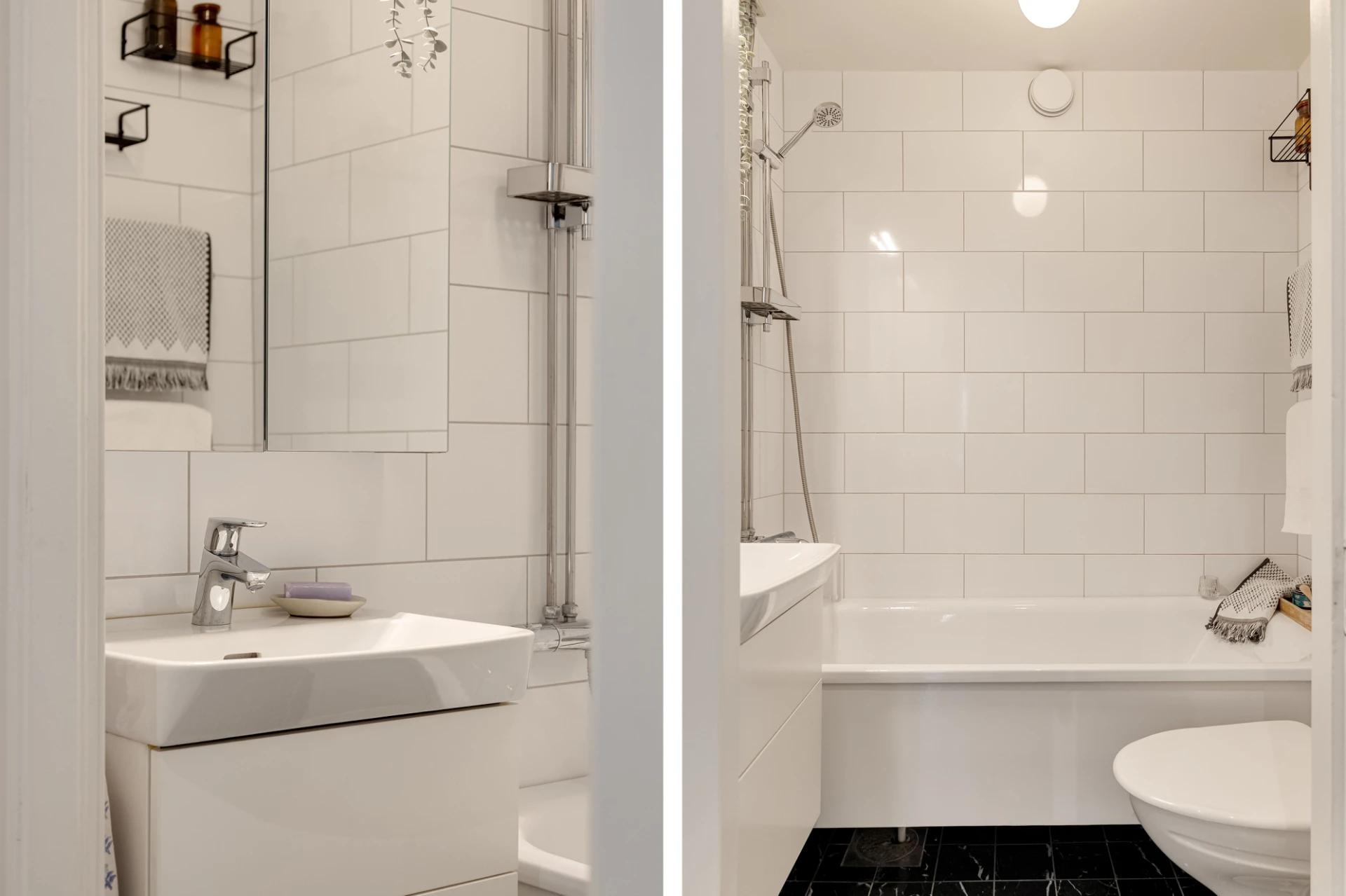 Köket är välplanerat och rymmer matbord för flera personer. Badrummet är helkaklat och renoverat i samband med föreningens stambyte, vilket ger både en modern känsla och trygghet inför framtiden.