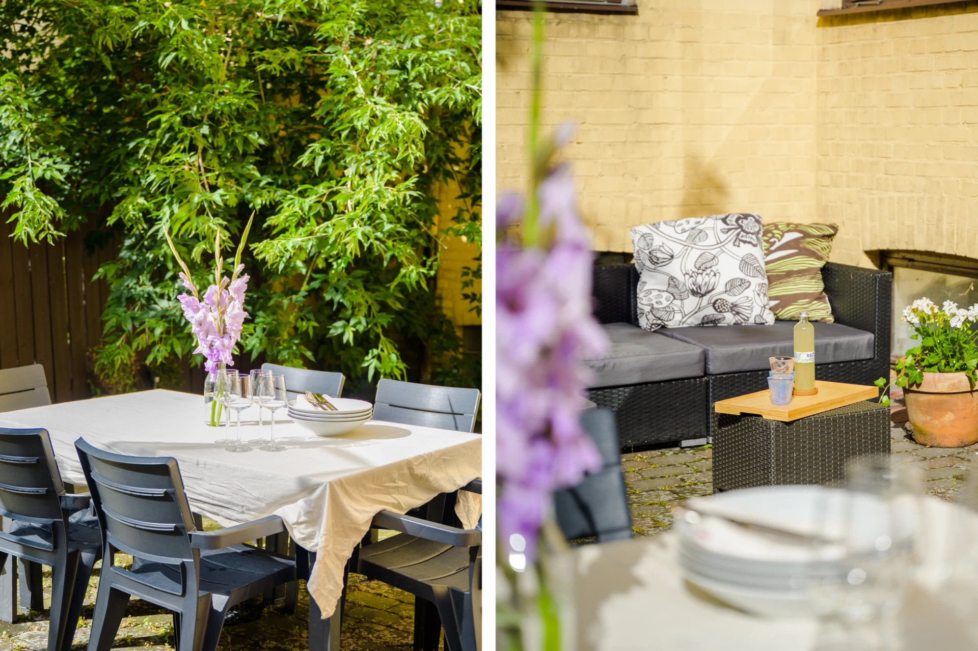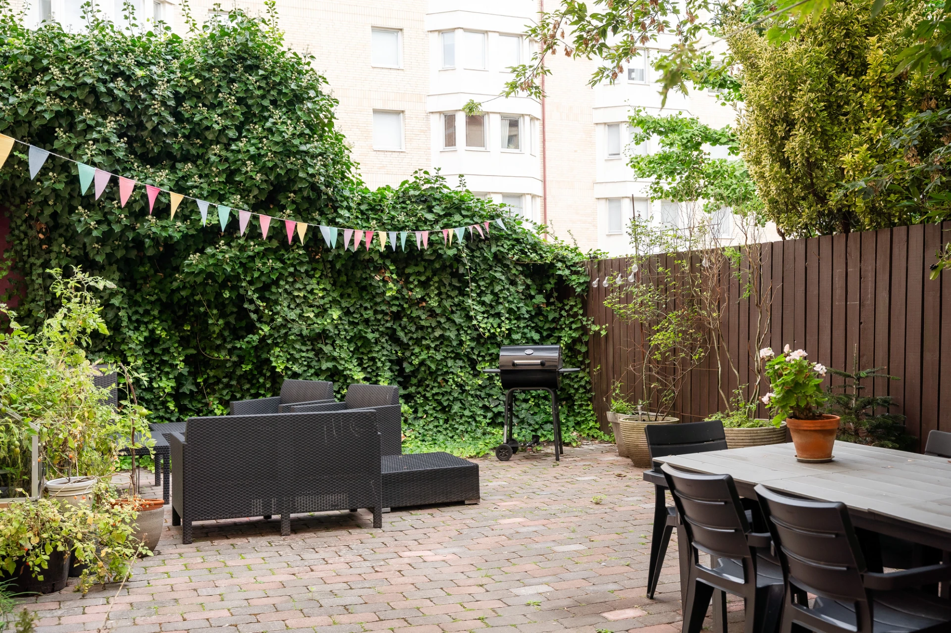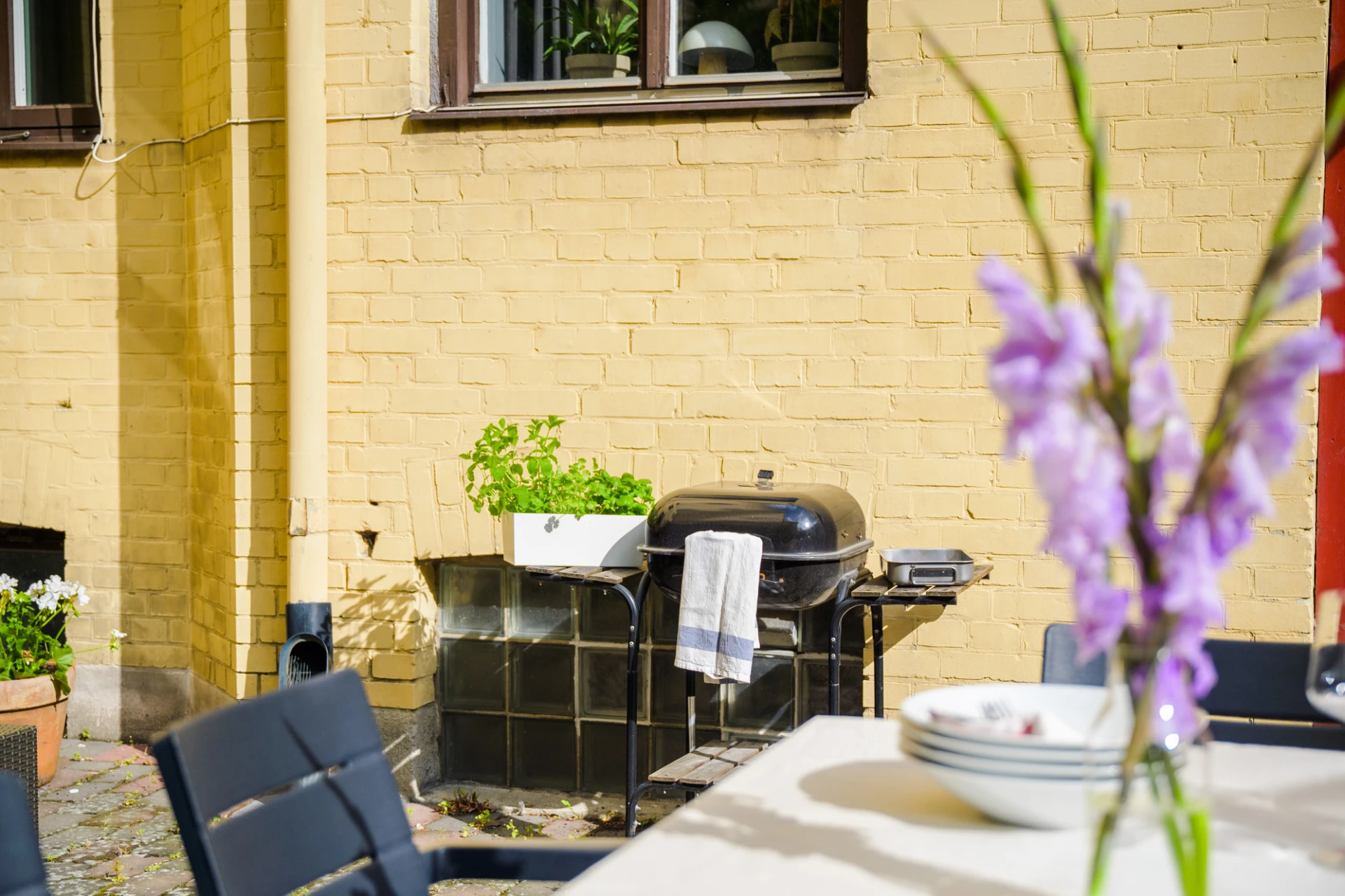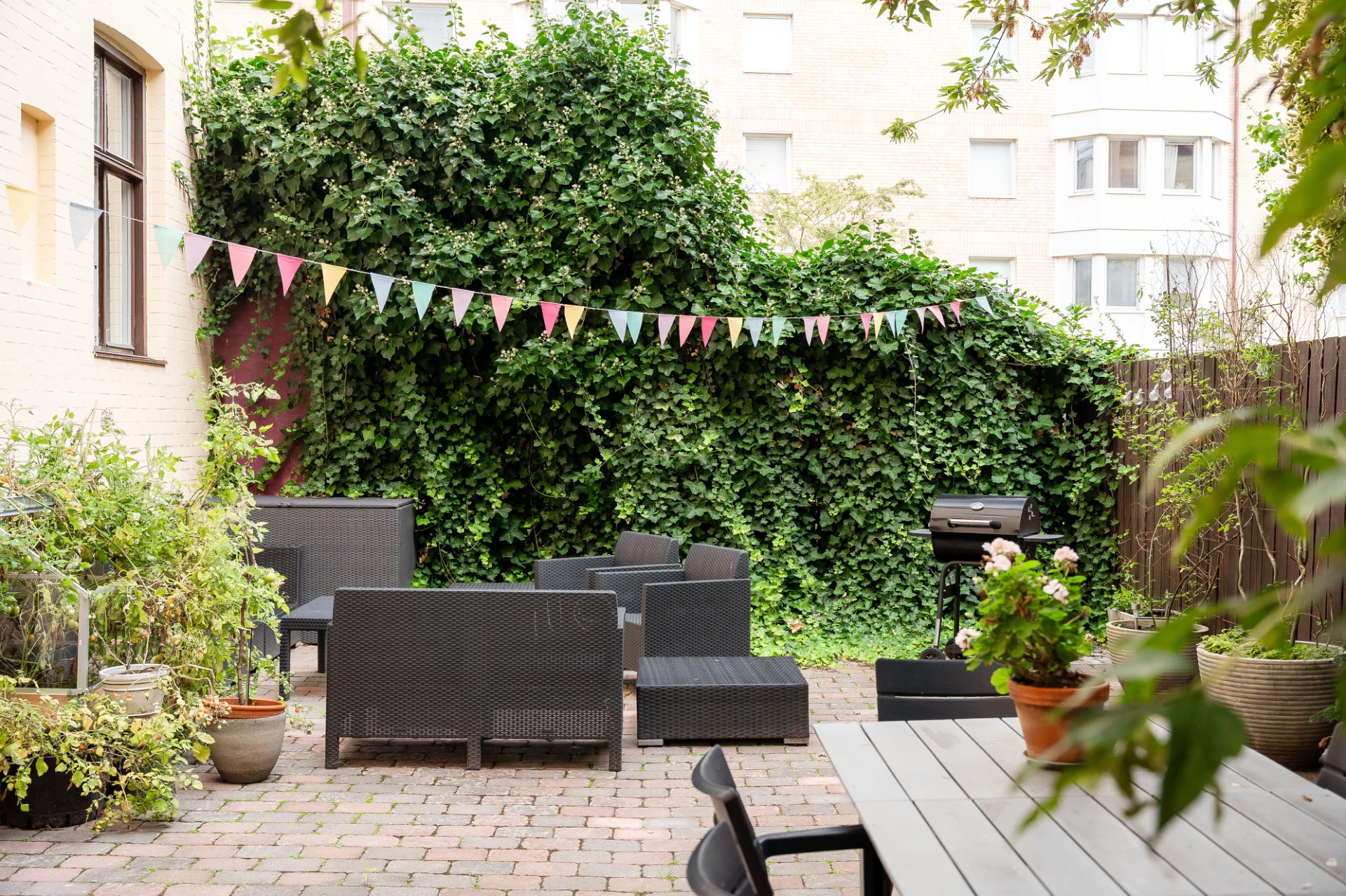 Föreningen har en privat innergård med loungemöbler, matbord och grillmöjligheter.