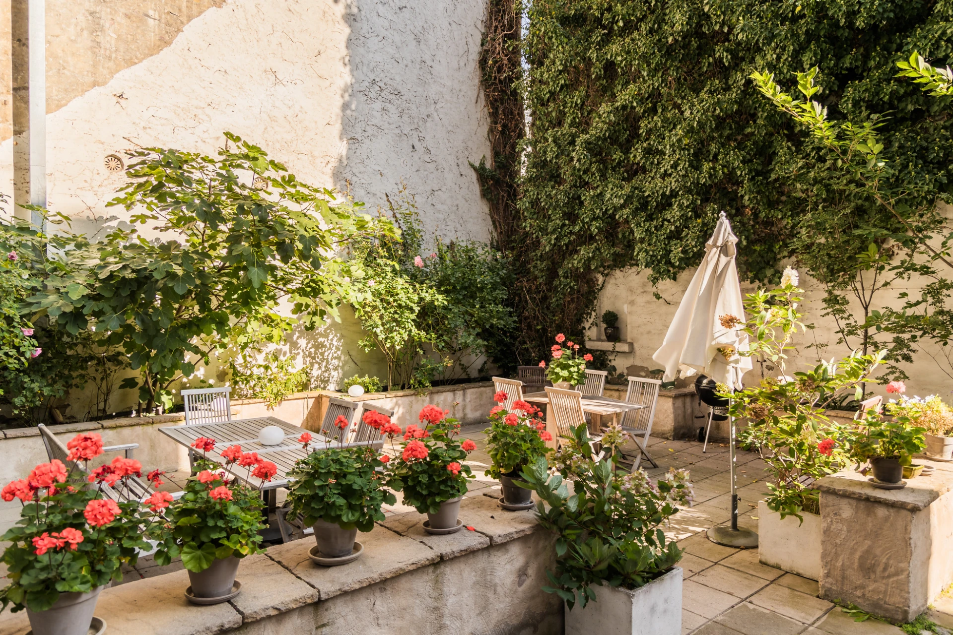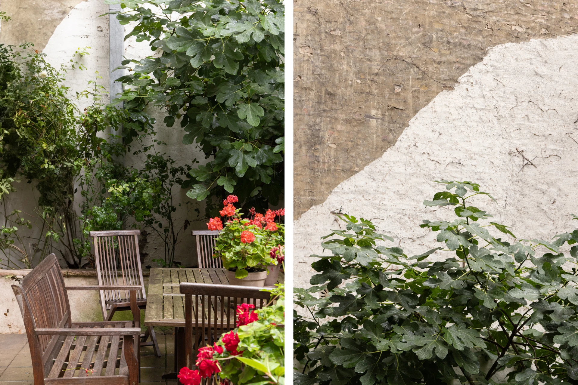 Föreningen har en trevlig innergård med springbrunn och murgröna växandes upp på husfasaden. Det finns grillplats med utemöbler som omges av planteringar och en cykelparkering.
