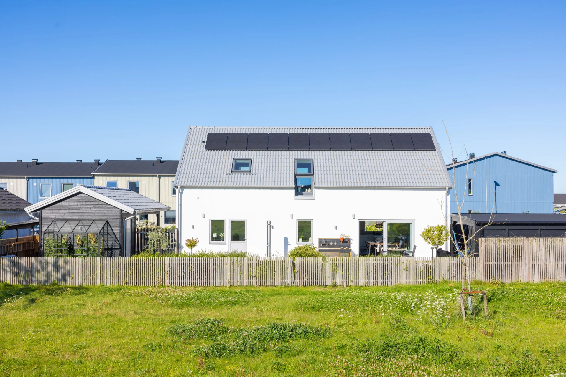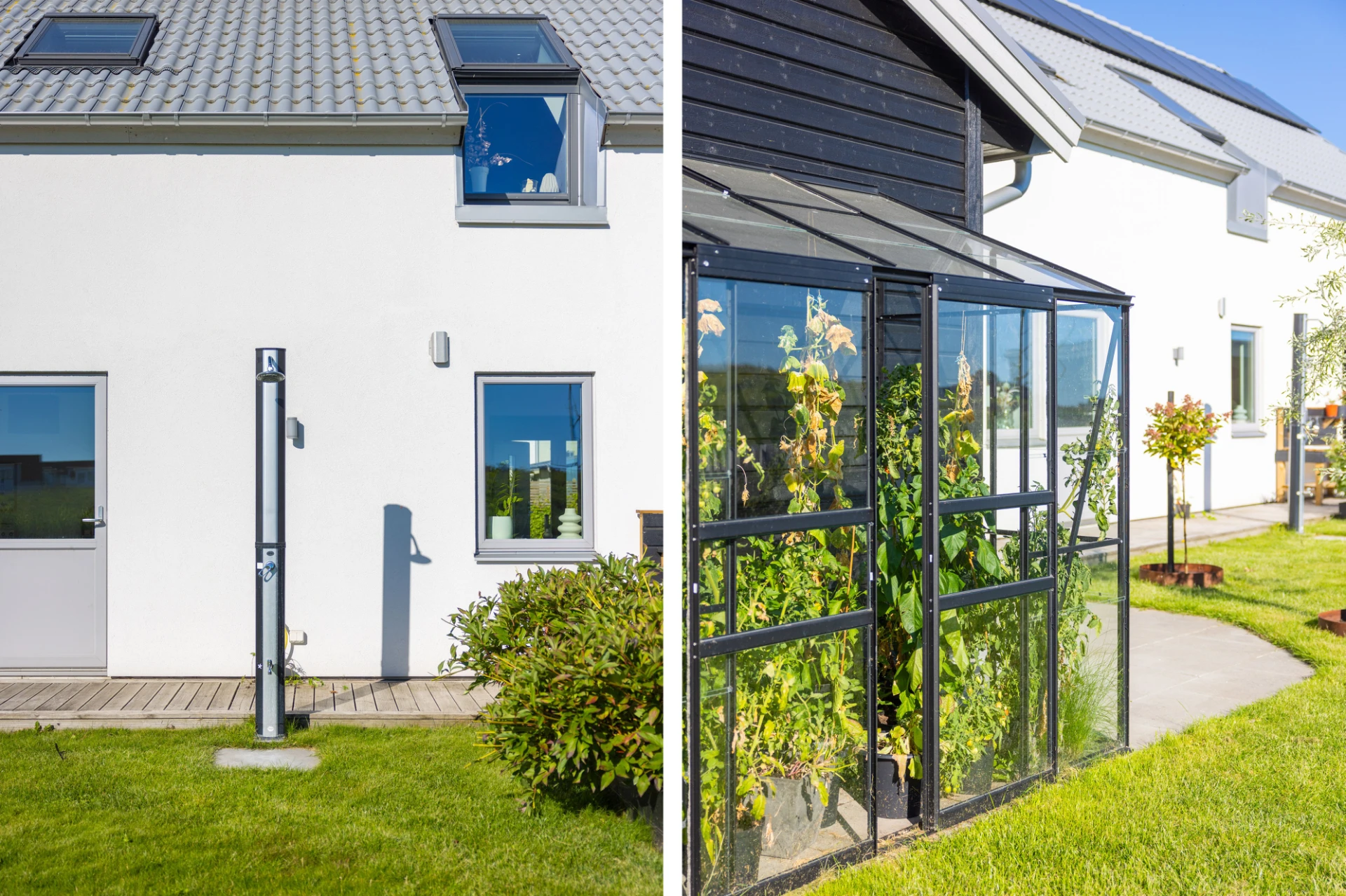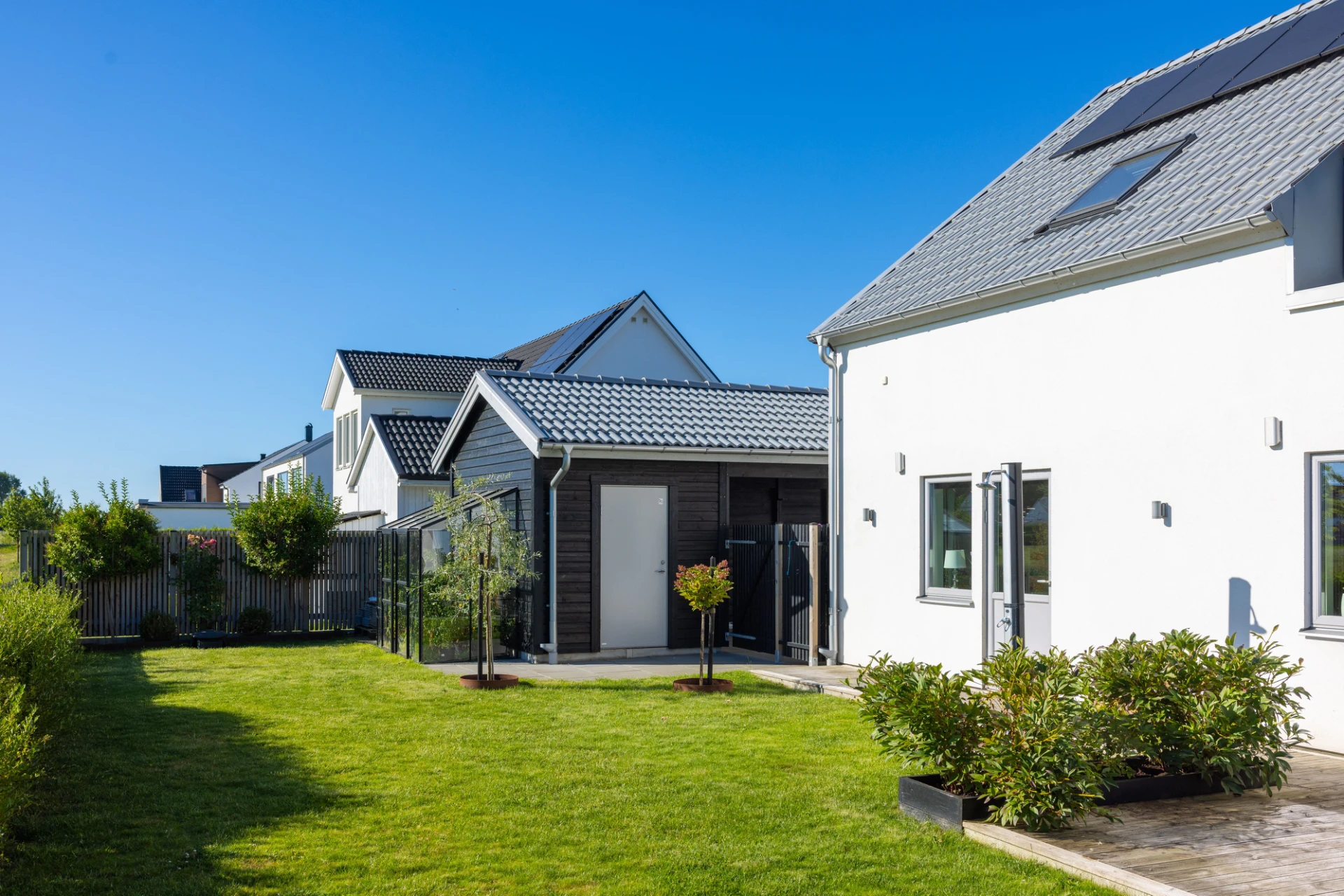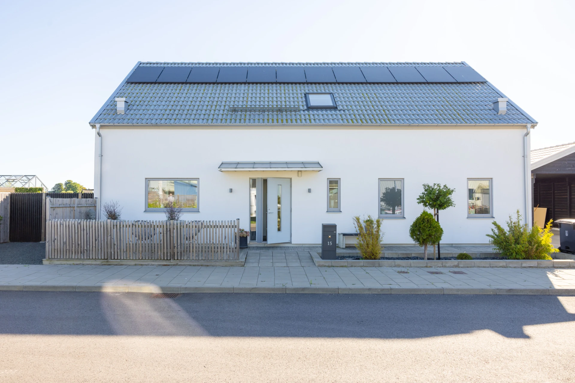 Vinylgolv, vita väggar samt en grå fondvägg. Tre garderober samt golvvärme. Utgång till trädgård.