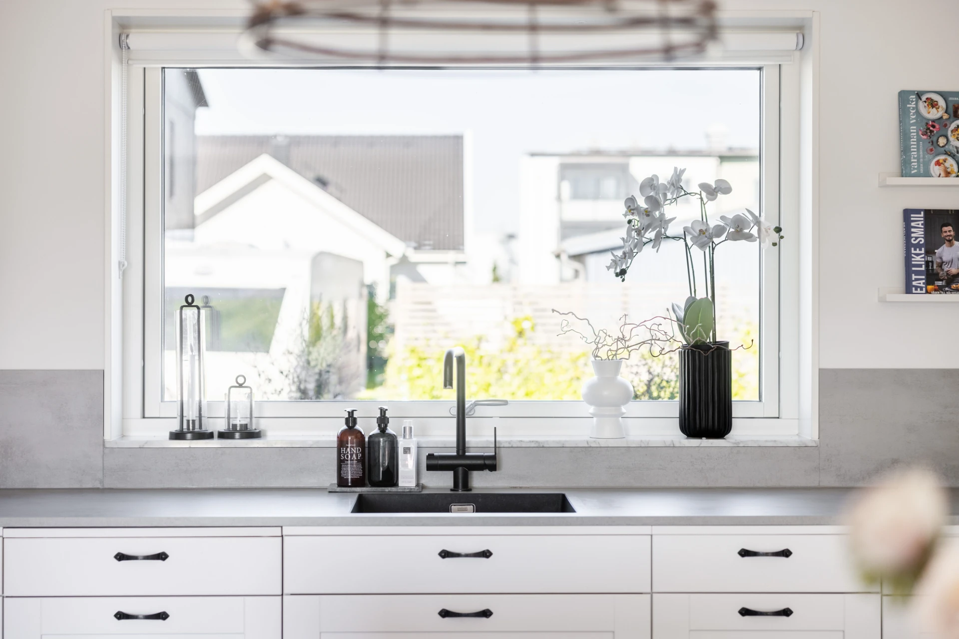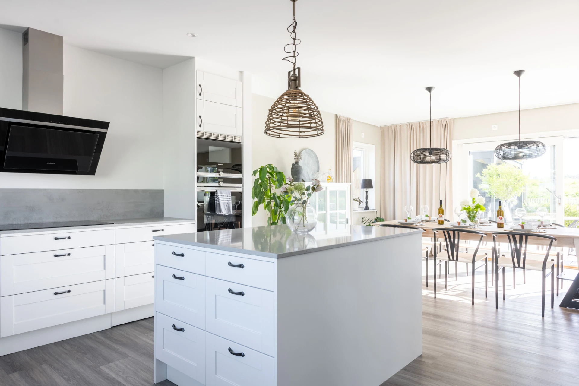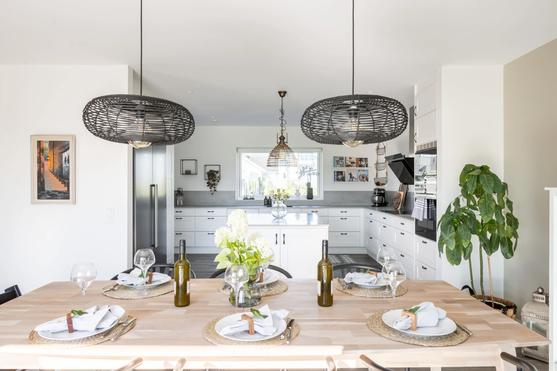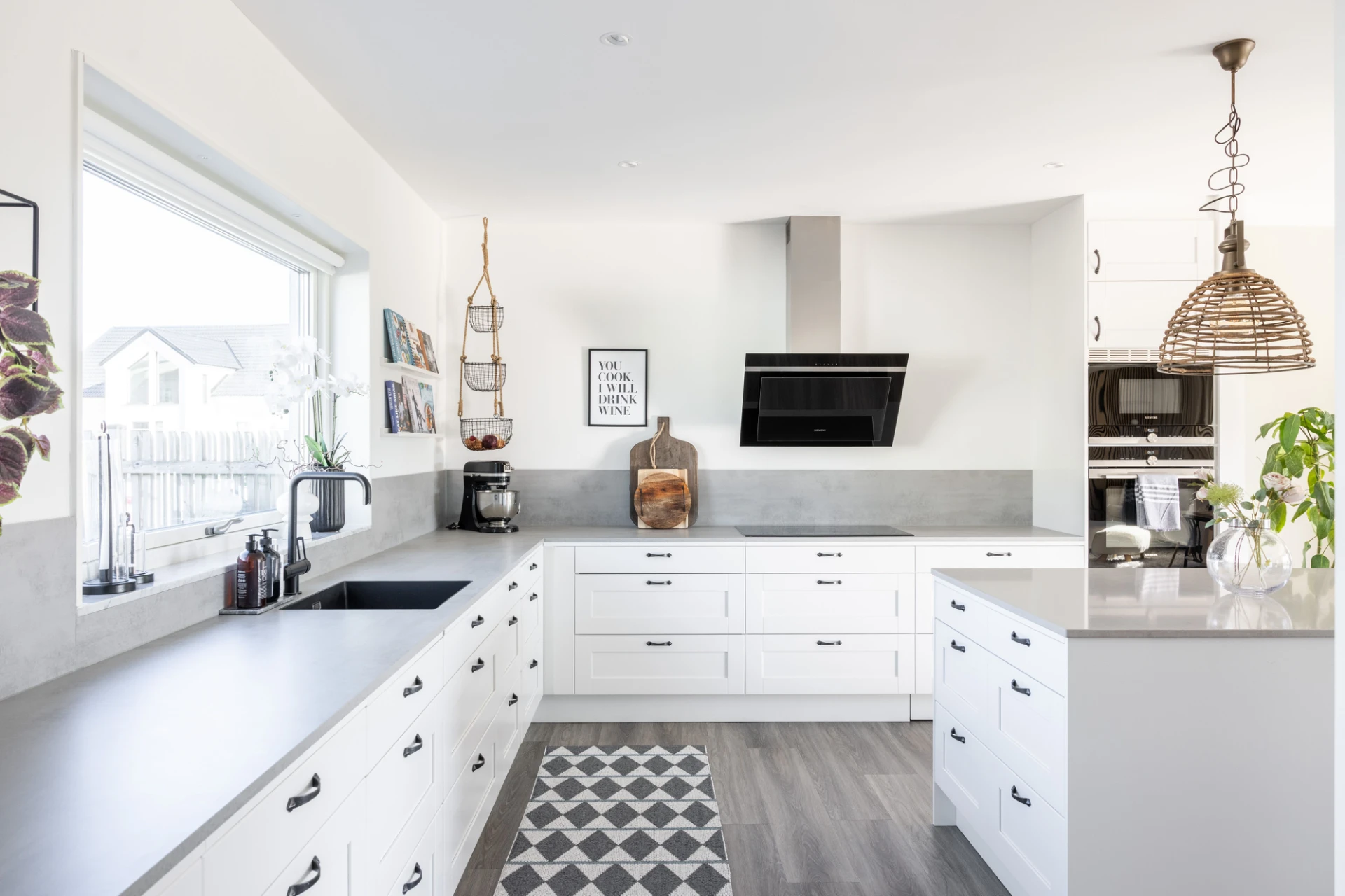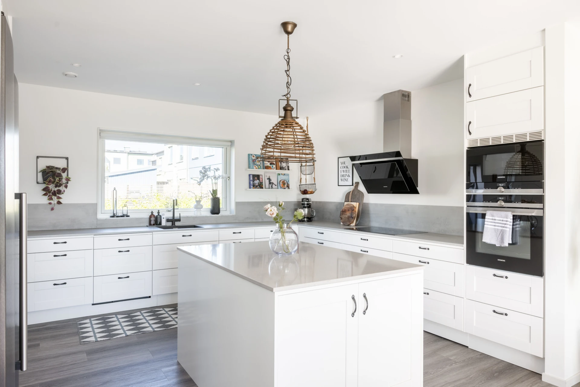 Vinylgolv samt vita väggar. Köksinredningen är vit från vedum, köksbänken är laminat med stänkskydd i laminat. Köket är utrustat med spis/häll (Simenes 2020), ugn (Simenes 2020), fläkt (simenes 2020), mikrovågsugn (Simenes 2020), diskmaskin (Simenes 2020), kyl (simenes 2020), frys (simenes 2020). Köksö med bänskiva i sten, golvvärme, spotlights samt dimmer.