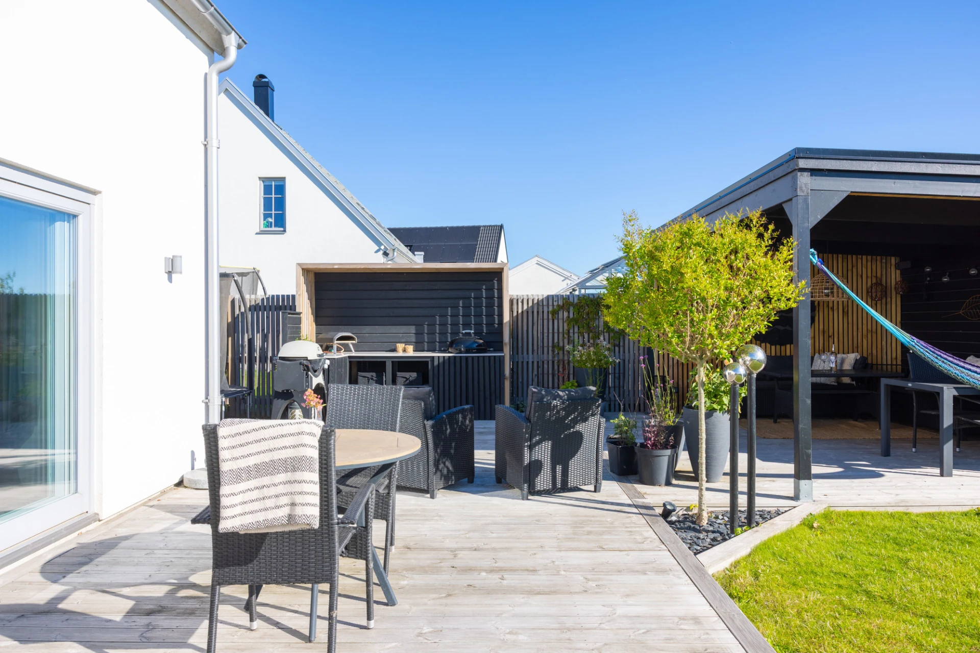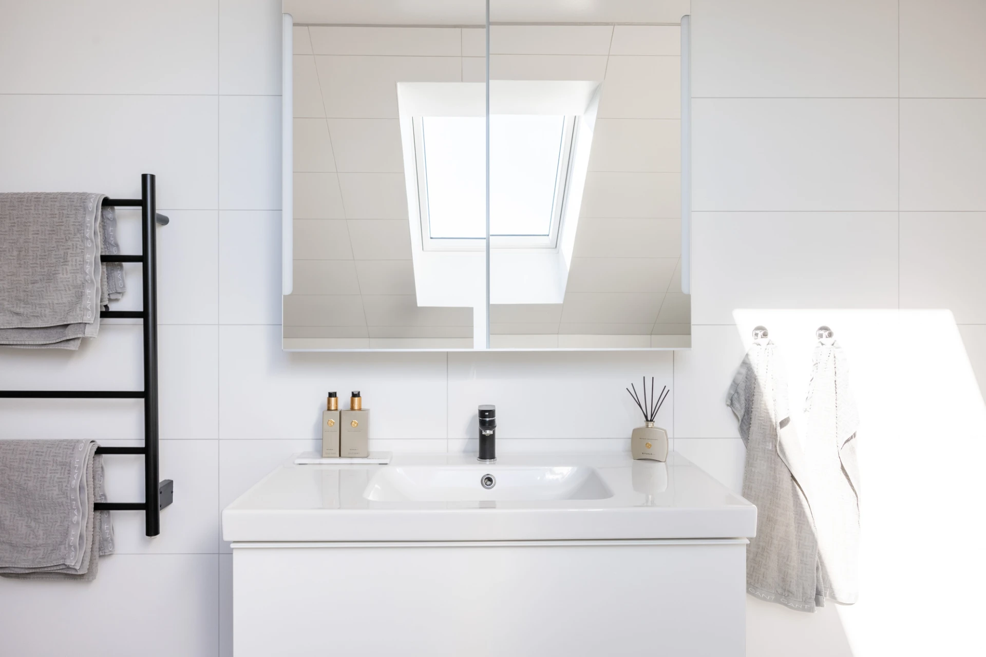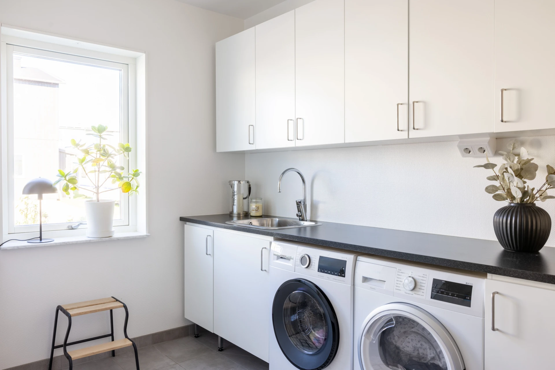 Klinkergolv, vita väggar samt en tvättbänk med diskho. Utrustat med tvättmaskin (Bosch 2025) , torktumlare (Siemens 2020), centraldammsugare (2020). Goda förvaringsmöjligheter. Golvvärme, spotlights samt dimmer.