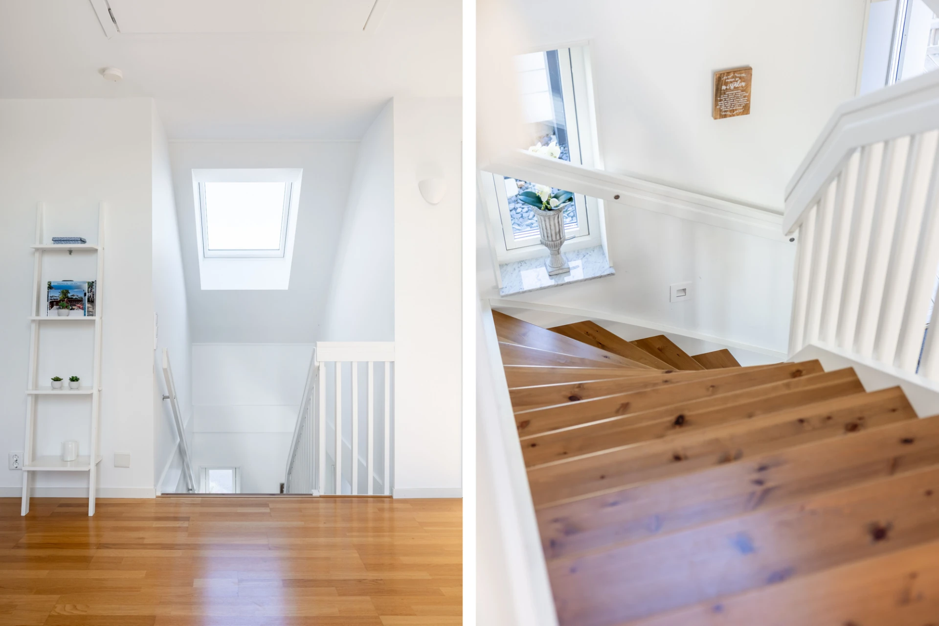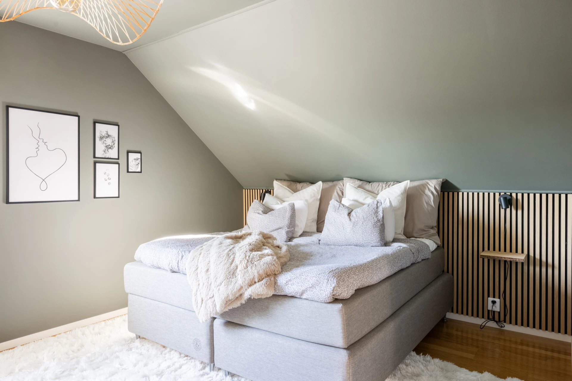 Parkettgolv, gråa väggar samt träpanel. Goda förvaringsmöjligheter i klädkammare.