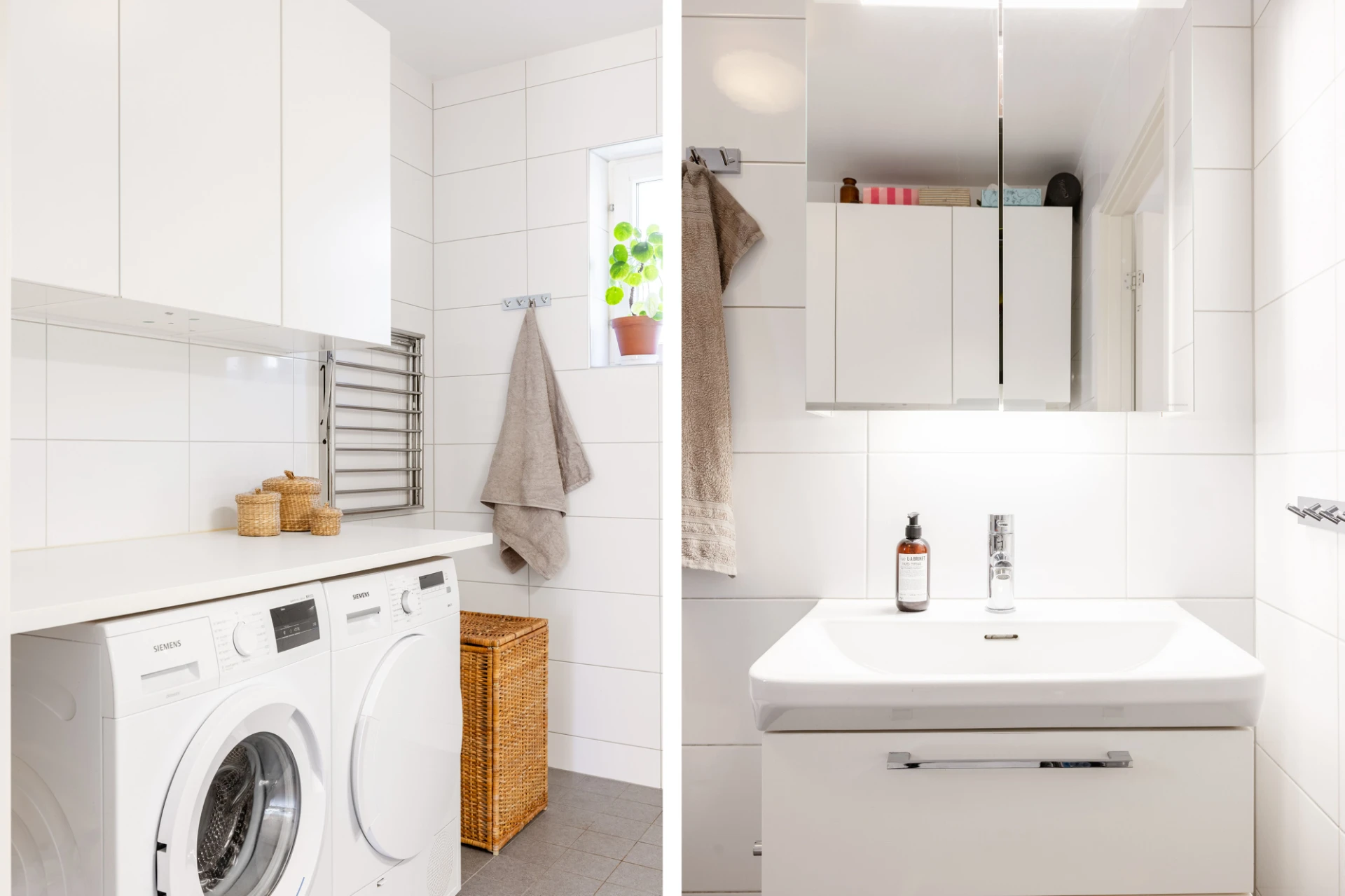 Samtliga lägenheter är utrustade med egna tvättmöjligheter, ingen gemensam tvättstuga finns.