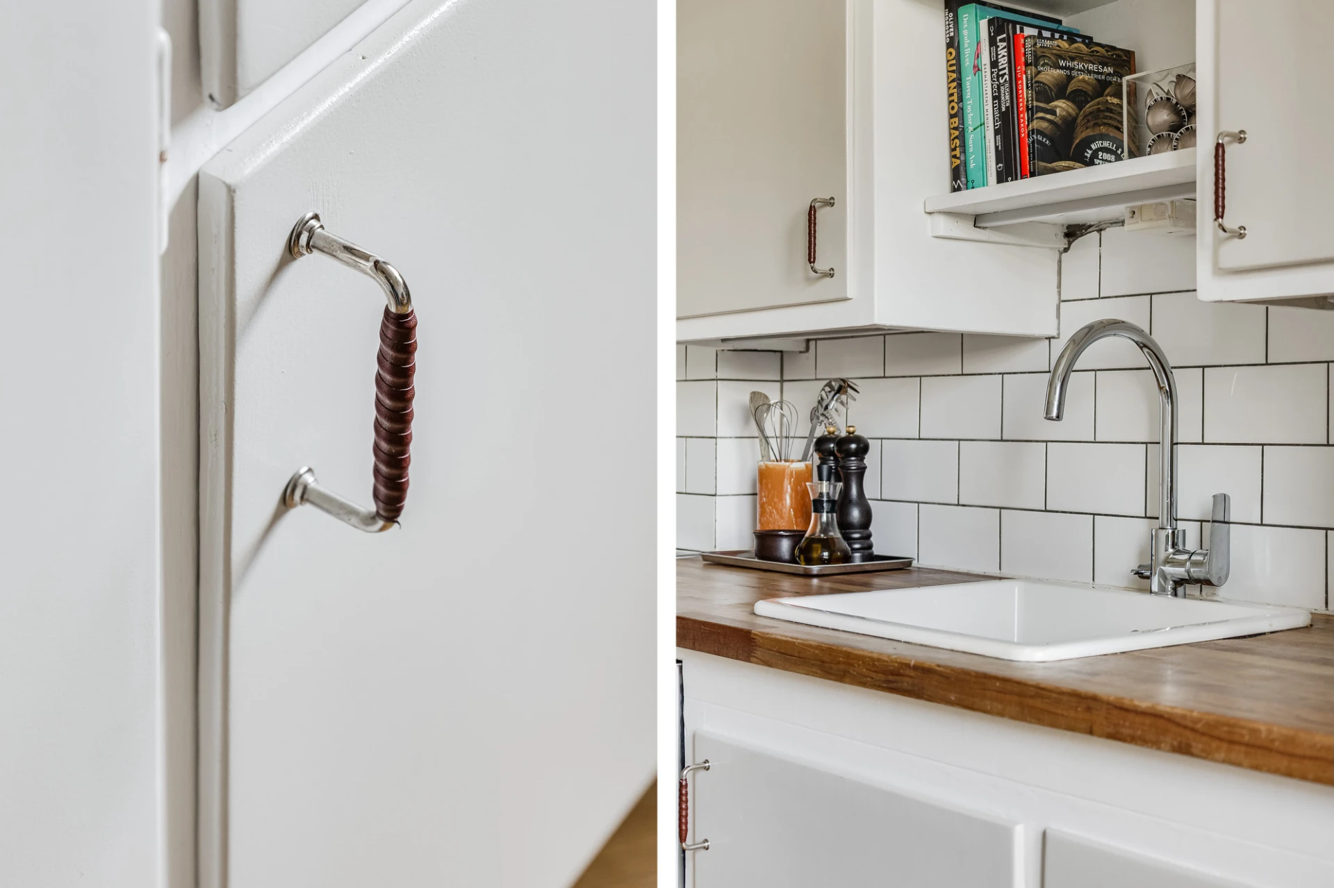 Renovering av kök med ny fiskbensparkett, slipning och målning av köksluckor och köksstomme samt installation av ny belysning. Byte av toalettstol.