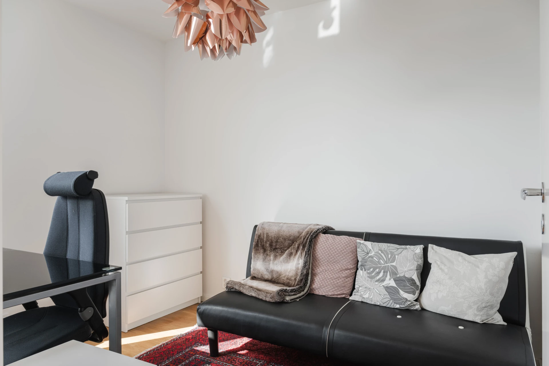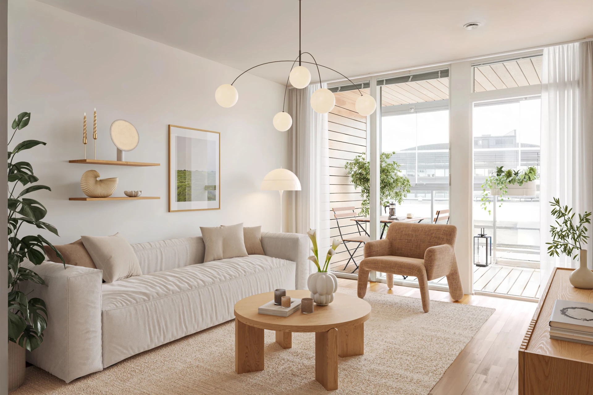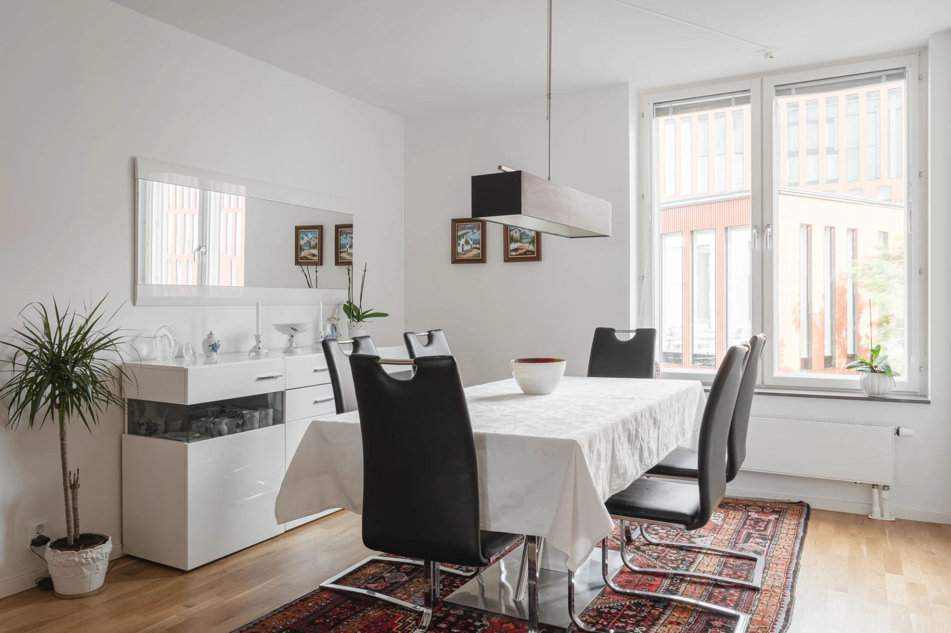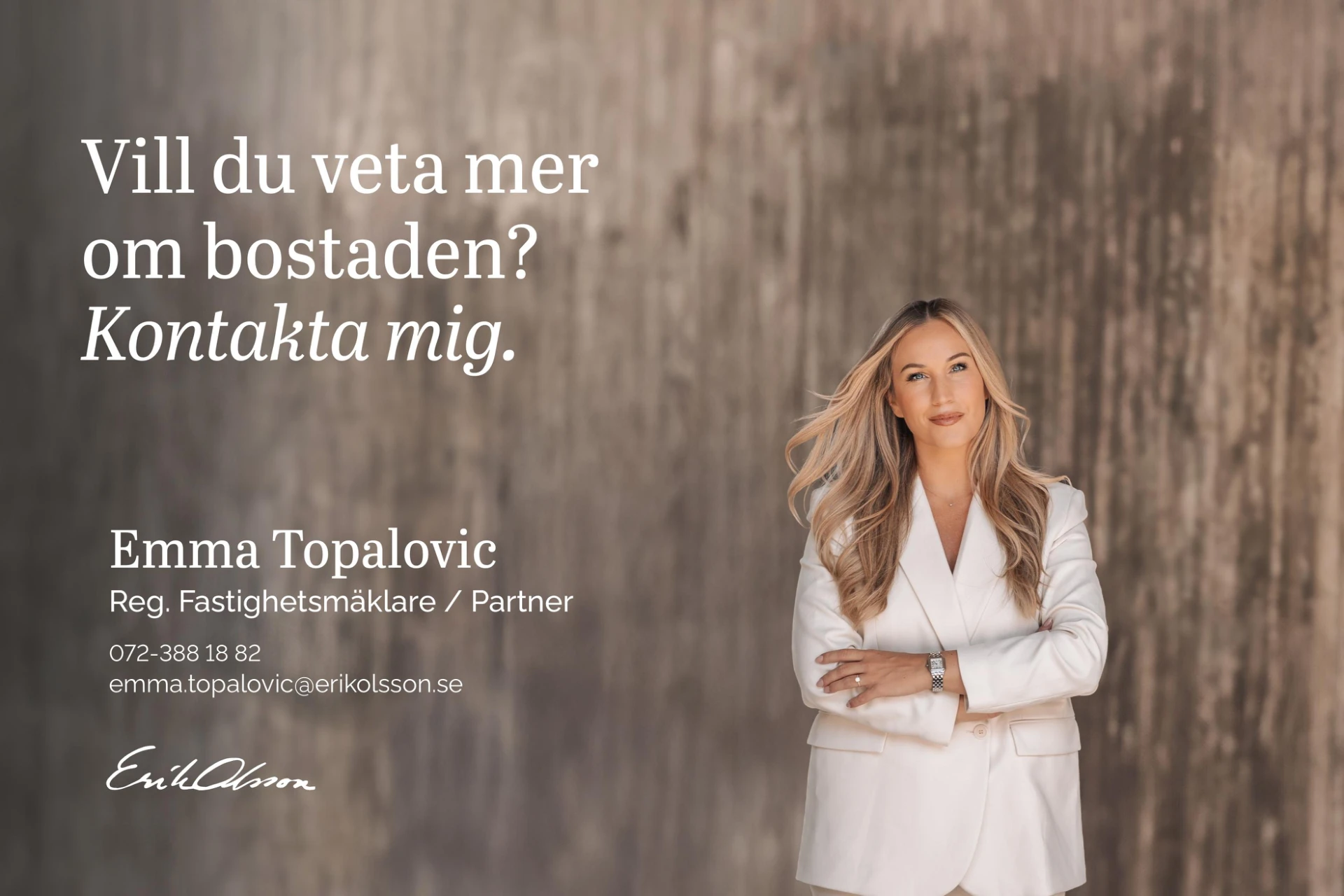 Väl i lägenheten möts du av en välkomnande atmosfär redan i hallen, och gott om förvaringsmöjligheter. Bostaden har tre rymliga sovrum som enkelt anpassas efter behov - barnrum, hemmakontor eller gästrum. Köket och vardagsrummet binds samman i en social planlösning där matlagning och umgänge smälter ihop. De stora fönsterpartierna släpper in rikligt med ljus och skapar en varm känsla genom hela bostaden. Bostaden erbjuder också ett helkaklat badrum med tvättmöjligheter och en separat gäst-WC gör vardagen enkel, särskilt för barnfamiljen eller när gäster kommer på besök.