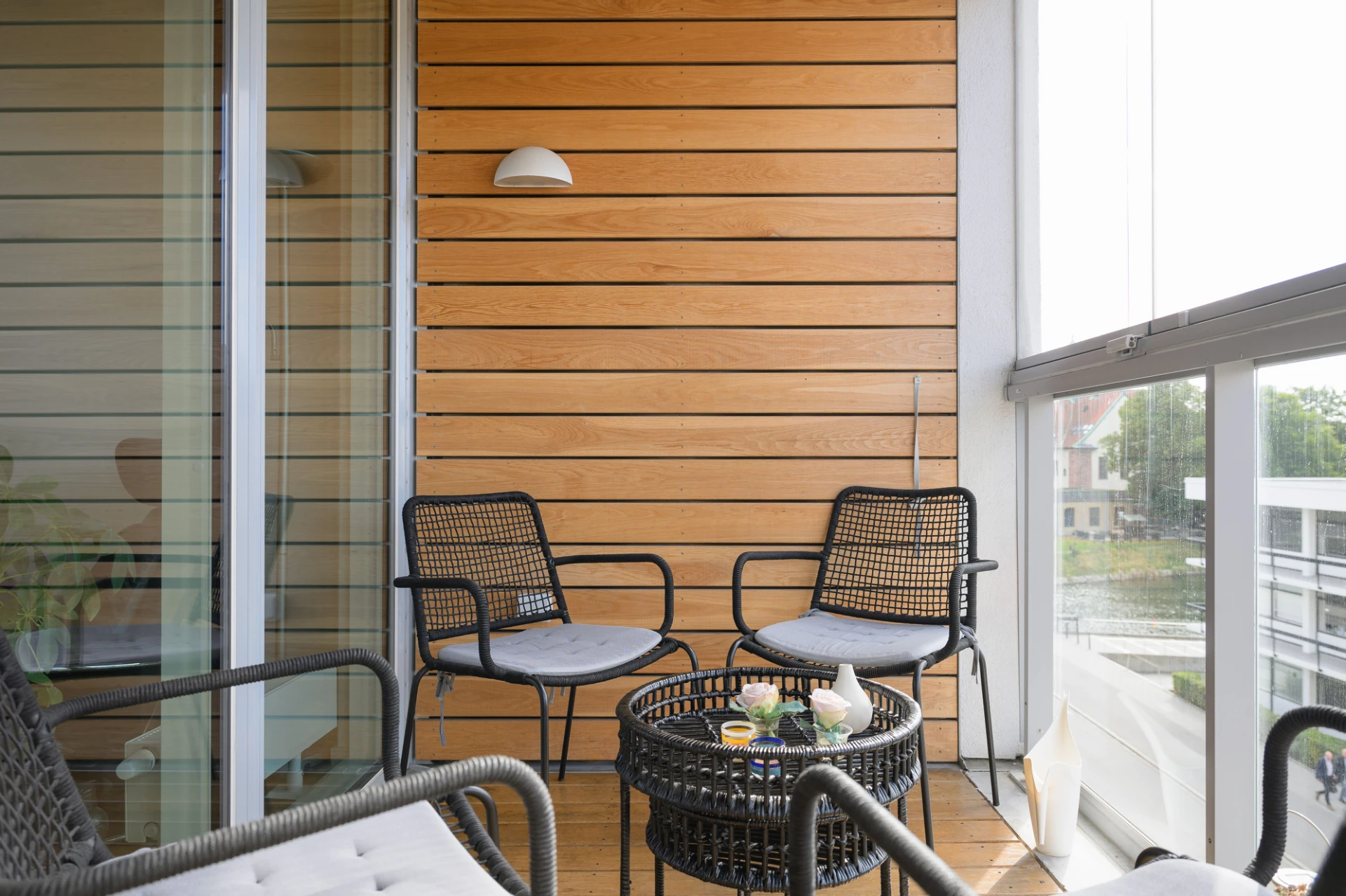 2024 byttes golvet på terrassen samt utfördes underhåll av trästaketen.