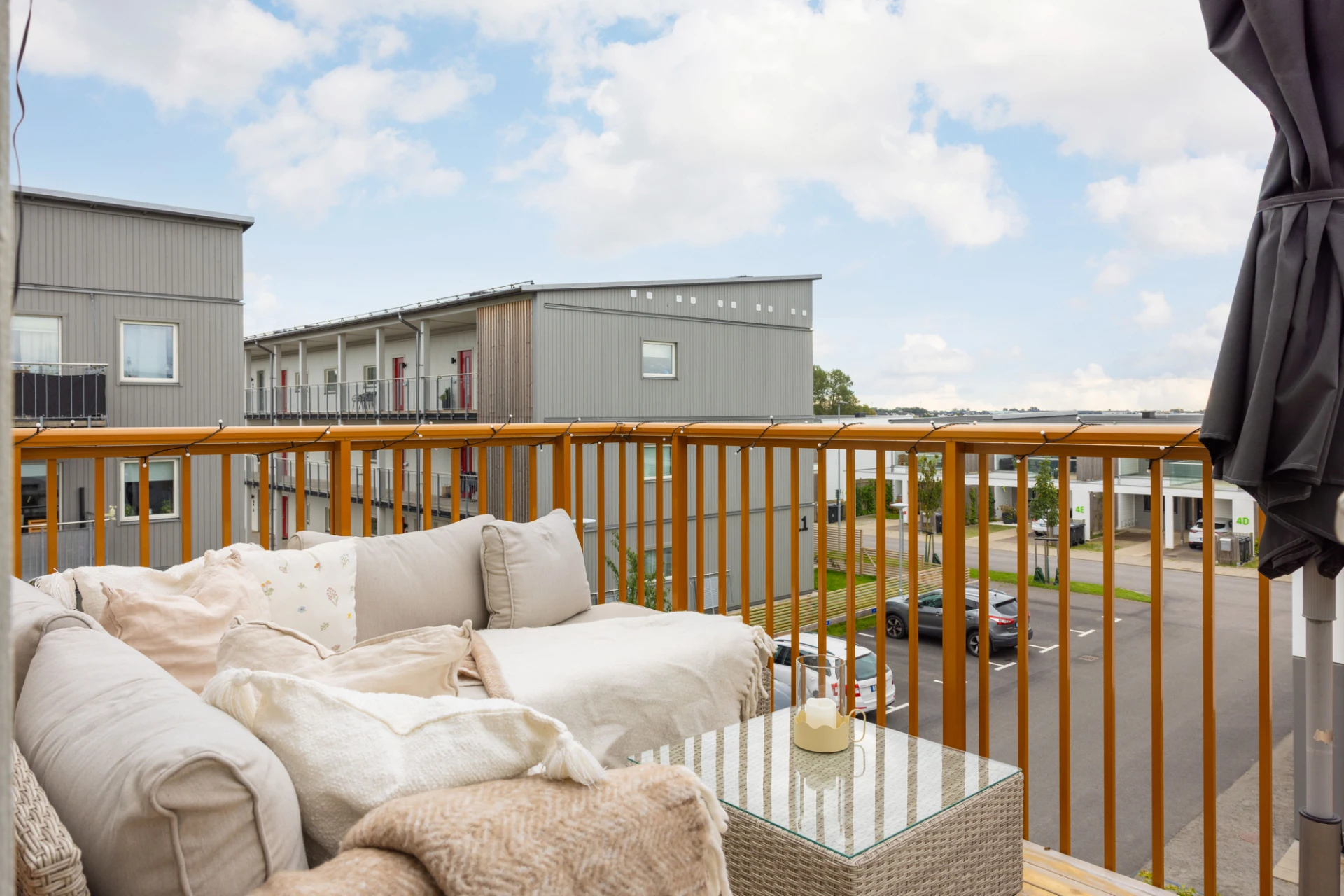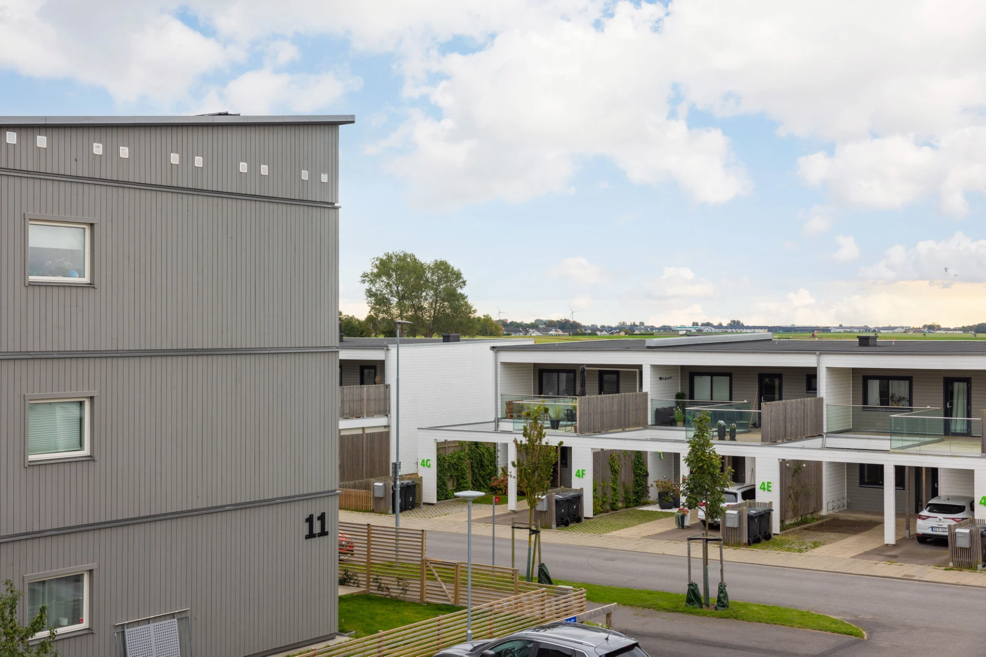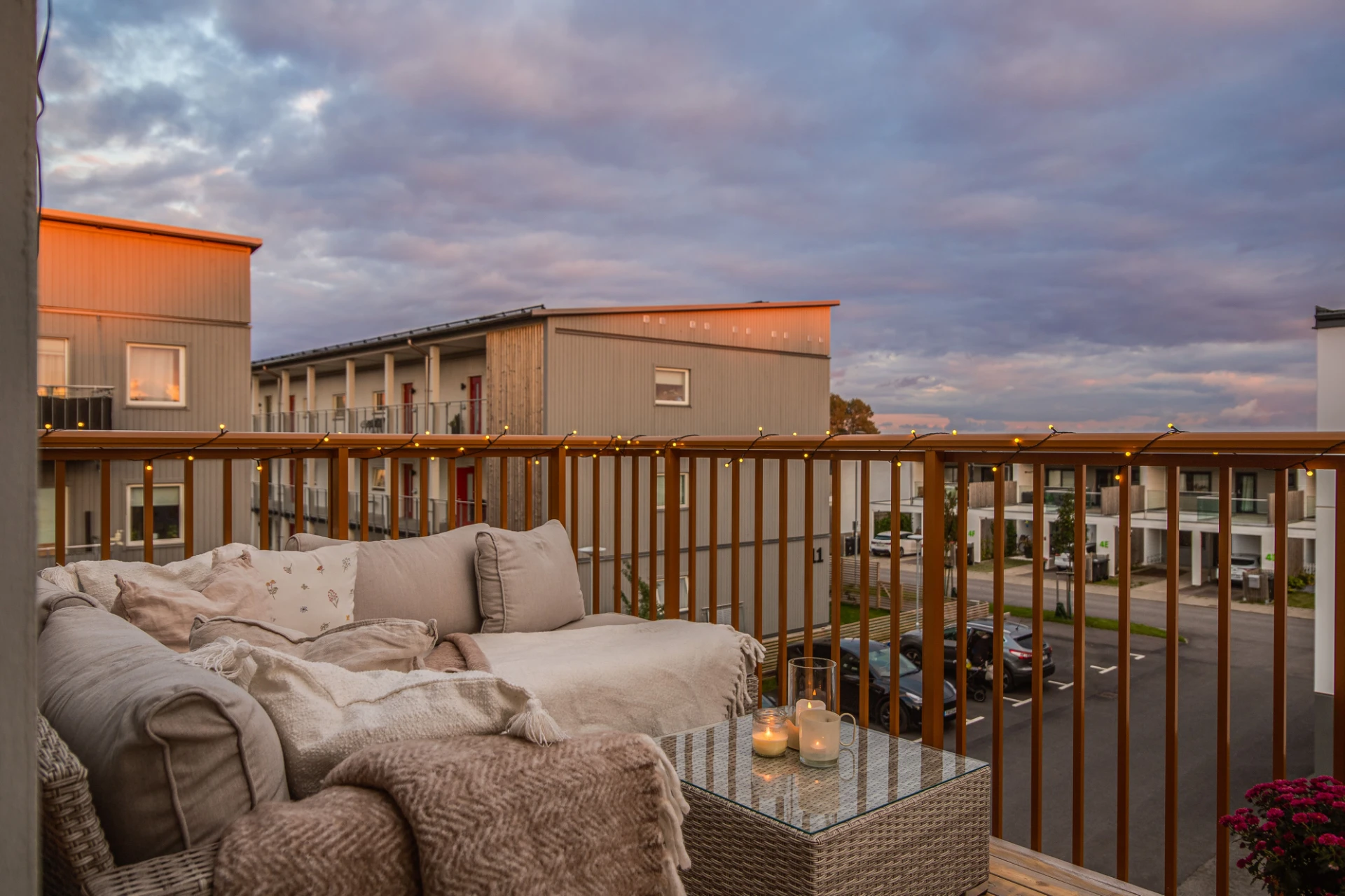 Högst upp i huset väntar denna ljusa och välplanerade gavellägenhet med en fantastiskt balkong i söderläge. Här bor du i ett hem med stilren modernitet med optimal planlösning– perfekt för dig som söker både funktionalitet, komfort och livskvalitet. Bostaden erbjuder tre rum och kök i en öppen och social planlösning med vackra, stilrena färgval där det eleganta köket i smma kullör som väggen smälter samman med det luftiga vardagsrummet. Härifrån kliver du direkt ut på den rymliga balkongen i bästa söderläge – där du kan njuta av solen från lunch till sen kväll, samtidigt som du blickar ut över öppna vyer och vackra åkrar. Den perfekta platsen för avkoppling och umgänge under sommarhalvåret. Lägenheten rymmer två rofyllda sovrum samt ett extra utrymme för förvaring. Det helkaklade badrummet imponerar med sin generösa storlek och är utrustat med dusch bakom vikbara glasdörrar, tvättmaskin och torktumlare – en vardagslyx att uppskatta. Dessutom finns en snyggt inbyggd garderob och ett praktiskt förråd inne i lägenheten, vilket förenklar förvaringen ytterligare. Området är lugnt och barnvänligt med närhet till skola, förskola och lekplatser. Bara runt hörnet finns café, pizzeria och andra bekvämligheter, och på bara ca 10 minuter tar du dig in till Trelleborg centrum – eller till Malmö på ca 20 minuter med goda kommunikationer. Ett hem som verkligen har det lilla extra – ljus, rymd, smart planlösning och ett underbart läge höst upp i byggnaden. Varmt välkommen att boka in dig på visning!