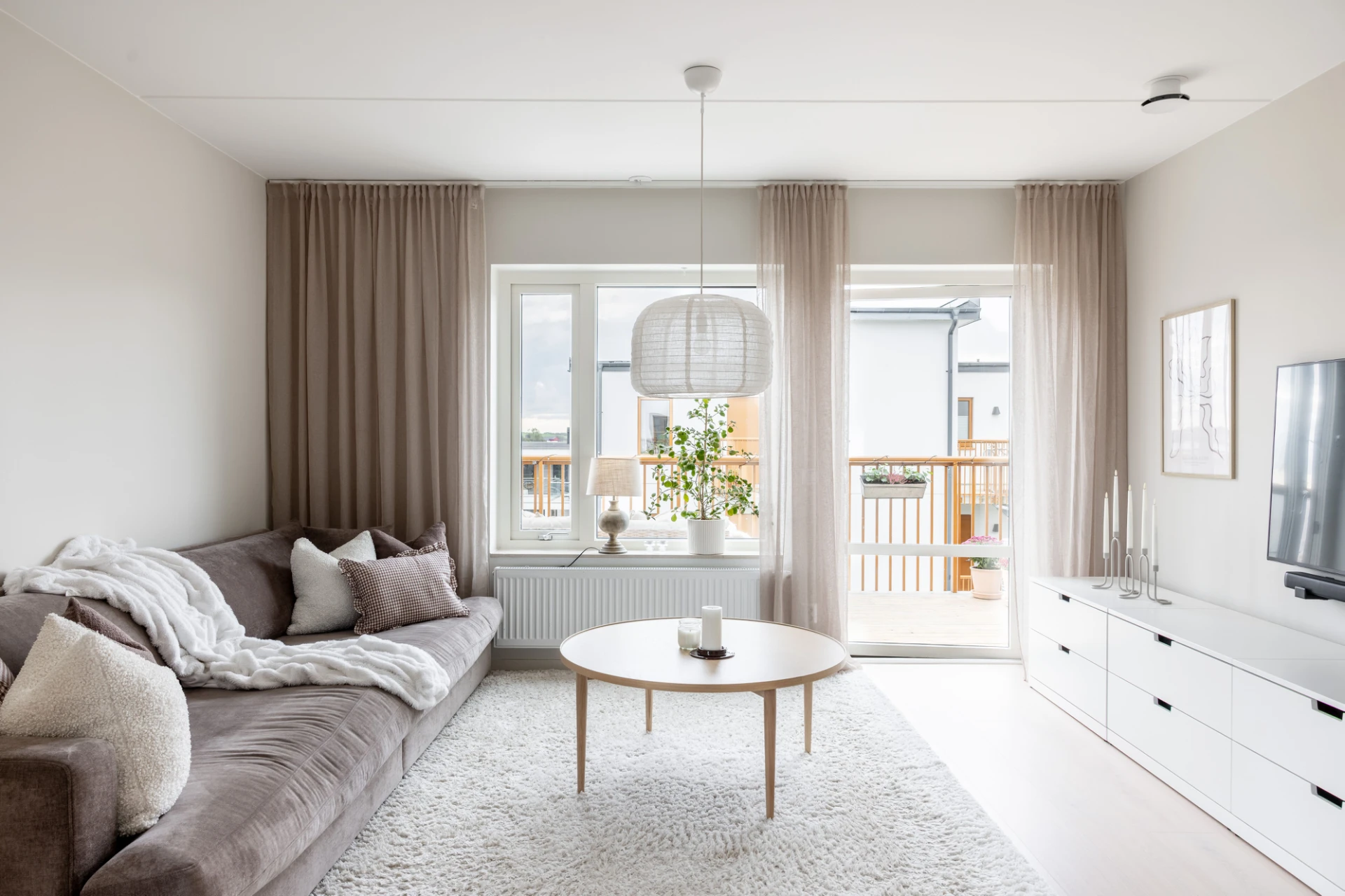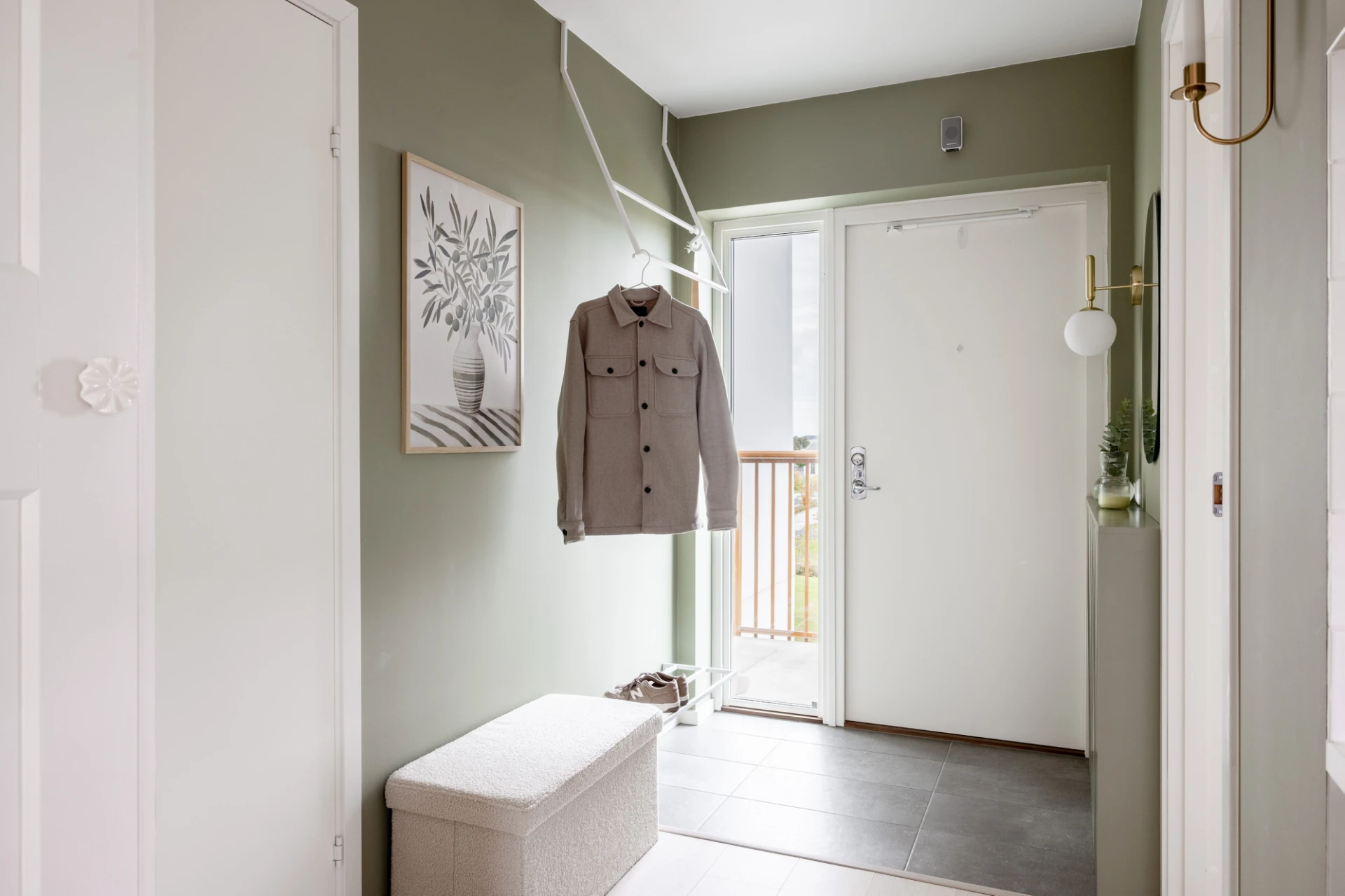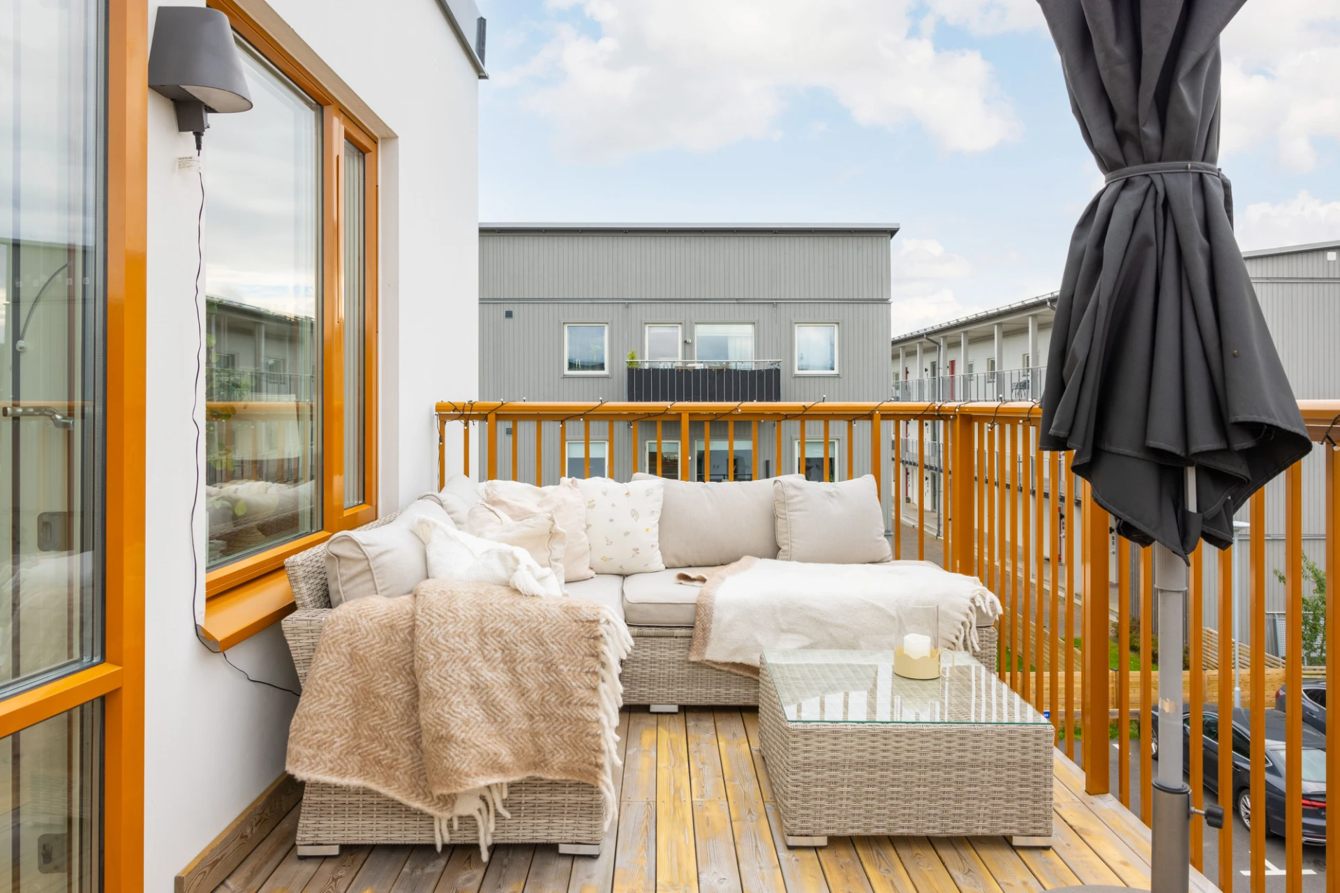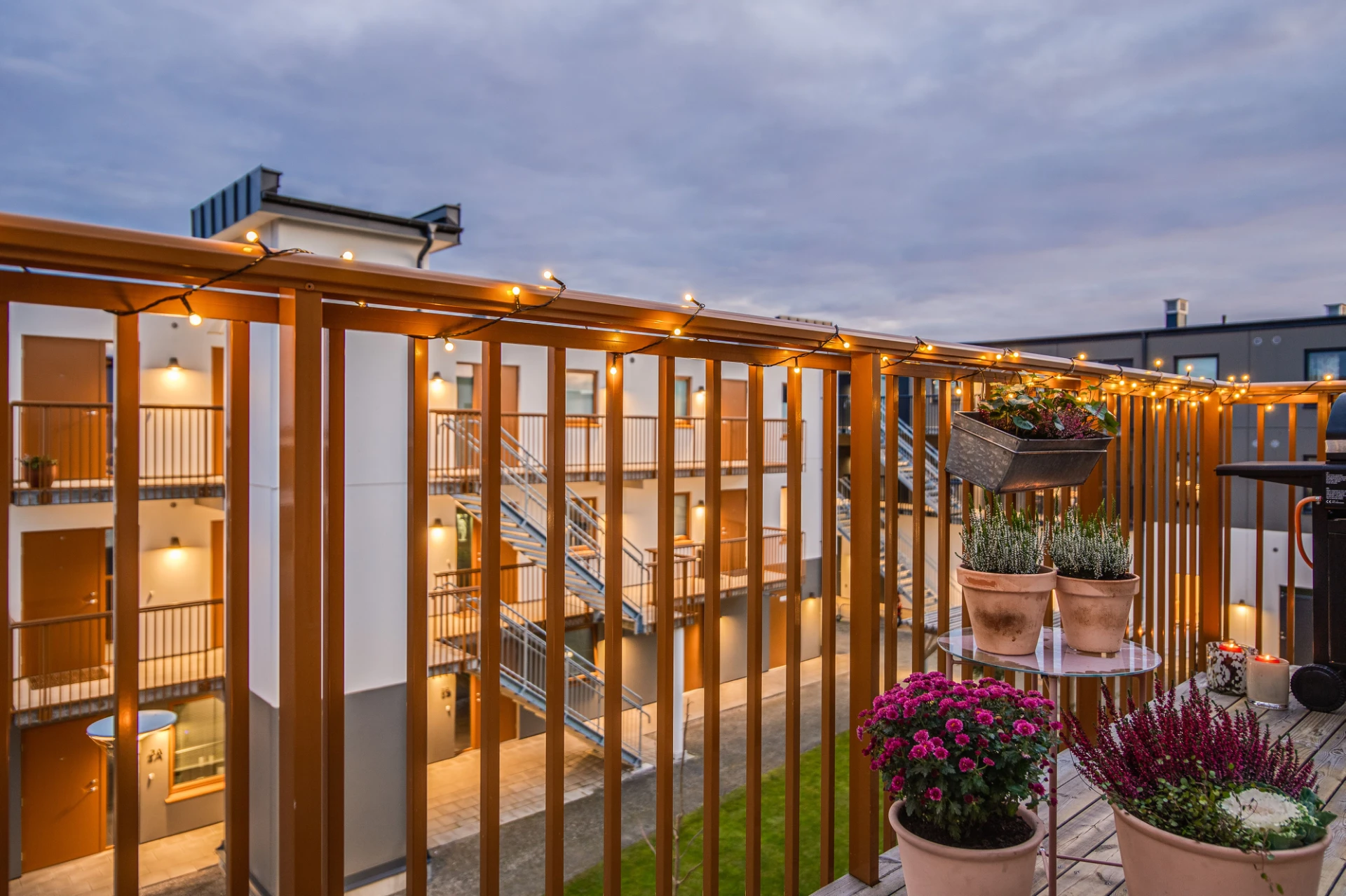 Högst upp i huset väntar denna ljusa och välplanerade gavellägenhet med en fantastiskt balkong i söderläge. Här bor du i ett hem med stilren modernitet med optimal planlösning– perfekt för dig som söker både funktionalitet, komfort och livskvalitet. Bostaden erbjuder tre rum och kök i en öppen och social planlösning med vackra, stilrena färgval där det eleganta köket i smma kullör som väggen smälter samman med det luftiga vardagsrummet. Härifrån kliver du direkt ut på den rymliga balkongen i bästa söderläge – där du kan njuta av solen från lunch till sen kväll, samtidigt som du blickar ut över öppna vyer och vackra åkrar. Den perfekta platsen för avkoppling och umgänge under sommarhalvåret. Lägenheten rymmer två rofyllda sovrum samt ett extra utrymme för förvaring. Det helkaklade badrummet imponerar med sin generösa storlek och är utrustat med dusch bakom vikbara glasdörrar, tvättmaskin och torktumlare – en vardagslyx att uppskatta. Dessutom finns en snyggt inbyggd garderob och ett praktiskt förråd inne i lägenheten, vilket förenklar förvaringen ytterligare. Området är lugnt och barnvänligt med närhet till skola, förskola och lekplatser. Bara runt hörnet finns café, pizzeria och andra bekvämligheter, och på bara ca 10 minuter tar du dig in till Trelleborg centrum – eller till Malmö på ca 20 minuter med goda kommunikationer. Ett hem som verkligen har det lilla extra – ljus, rymd, smart planlösning och ett underbart läge höst upp i byggnaden. Varmt välkommen att boka in dig på visning!