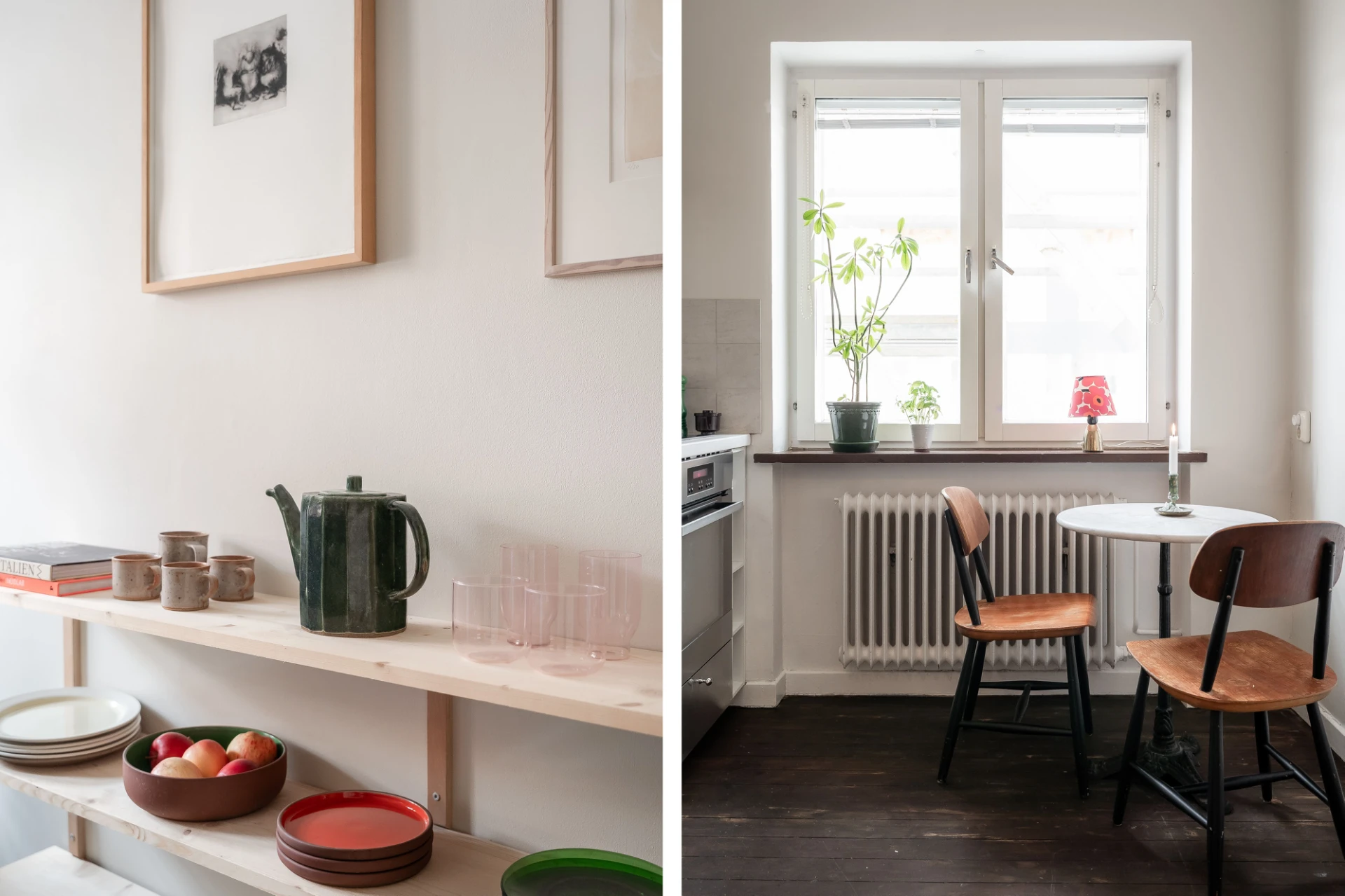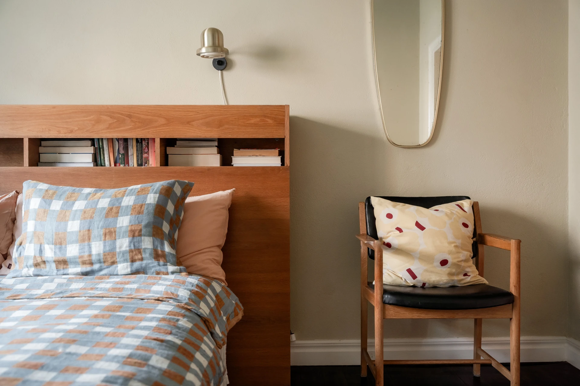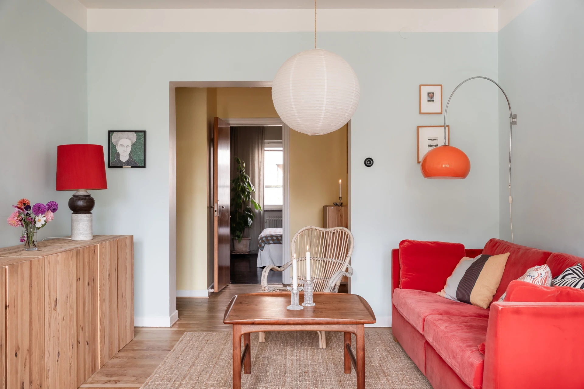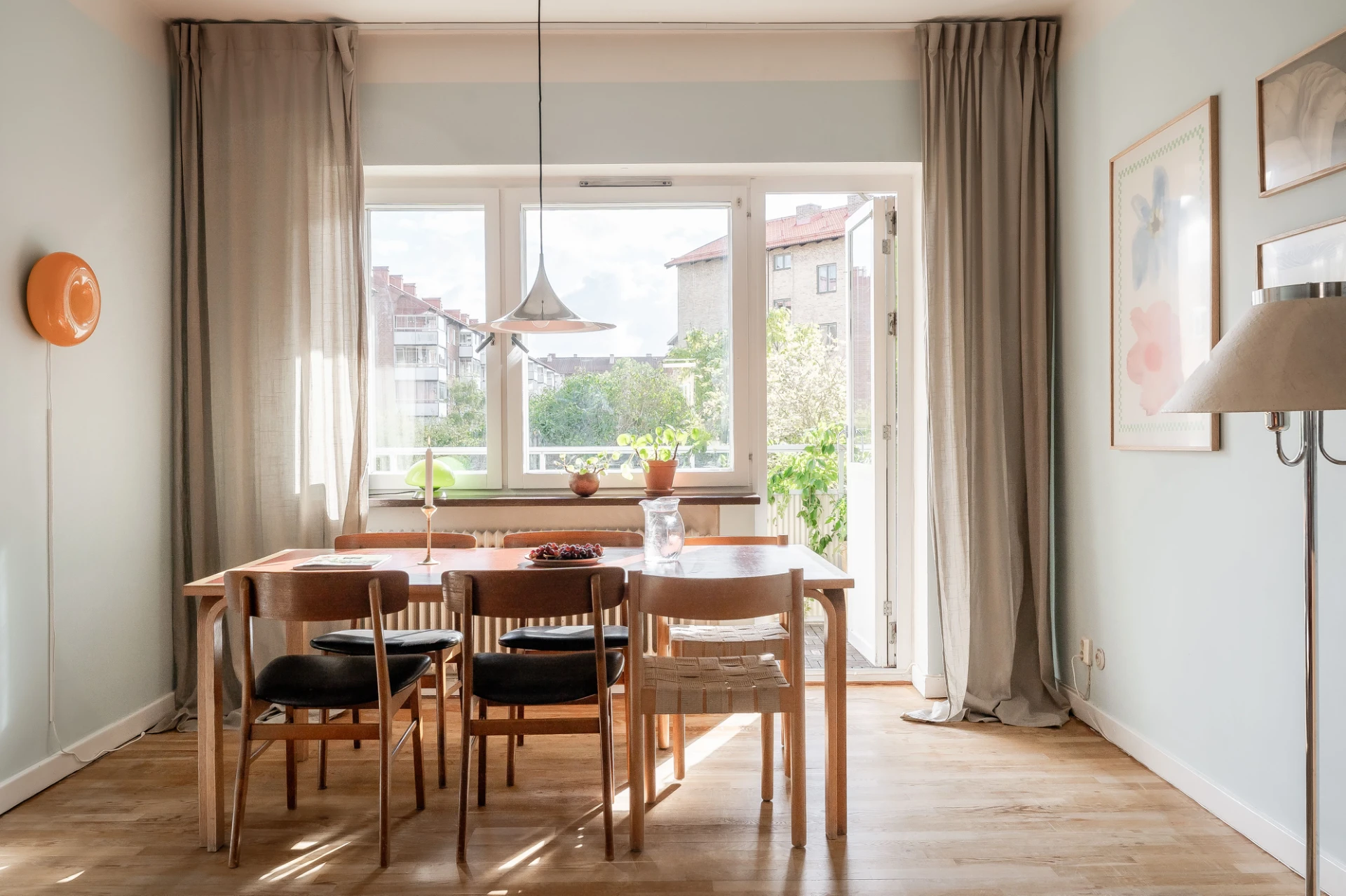 Lägenheten erbjuder lättmöblerade rum med en interiör i varma toner som skapar en ombonads känsla. Vardagsrummet är rymligt med gott om plats för både soffa och matbord och härifrån nås balkongen med fri utblick över föreningens grönskande innergård. En perfekt plats för avkoppling och sociala stunder.