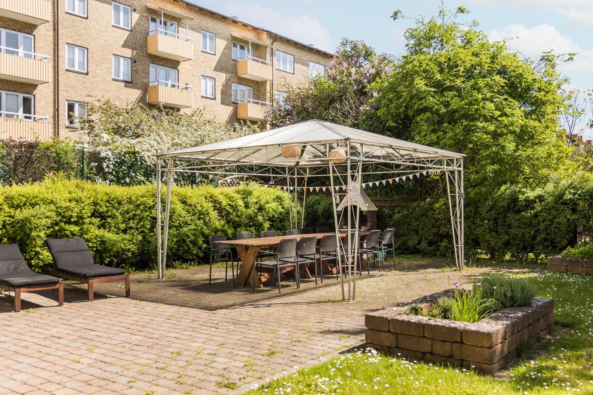 I föreningen finns en grönskande innergård med gemensamma utemöbler och planteringar.