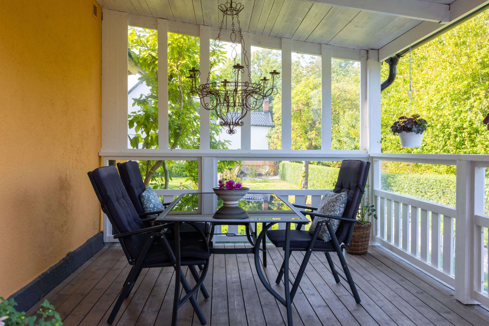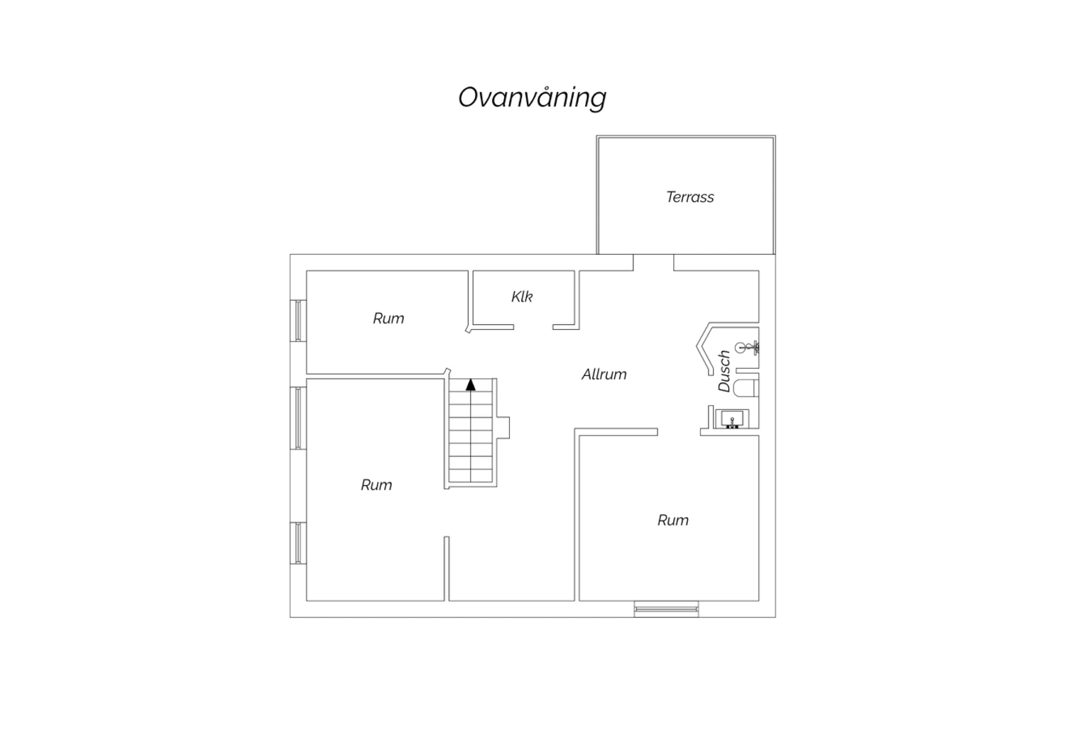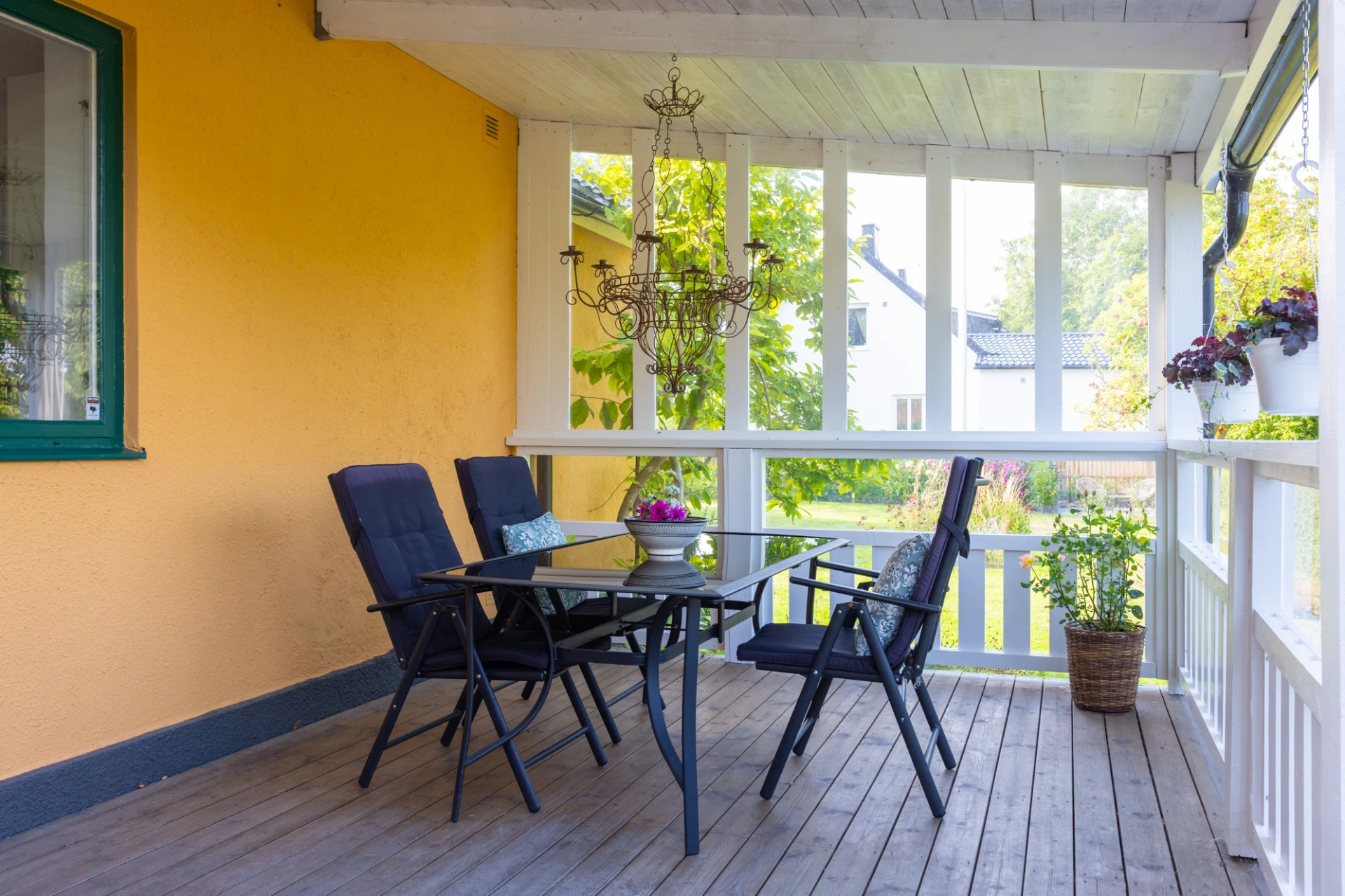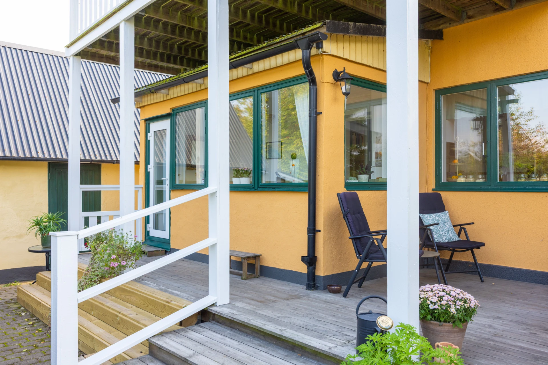 Entréplanet bjuder på ett trivsamt vardagsrum med braskamin, ett nyrenoverat matrum samt ett charmigt och praktiskt kök. Till köket ansluter en av favoritplatserna i huset, nämligen den lilla verandan, där måltiderna kan avnjutas året runt med utsikt mot grönområdet. Här sitter man gärna länge och väl! Det finns även en rejäl terrass, delvis överbyggd och vindskyddad. Den är en stor tillgång under sommarens lata dagar och förlänger utesäsongen. Under en del av huset finner vi källaren, vilken inrymmer tvättstugan och praktisk förvaring. Här nere är takhöjden lite lägre men det funkar helt klart som tvättstuga etc.