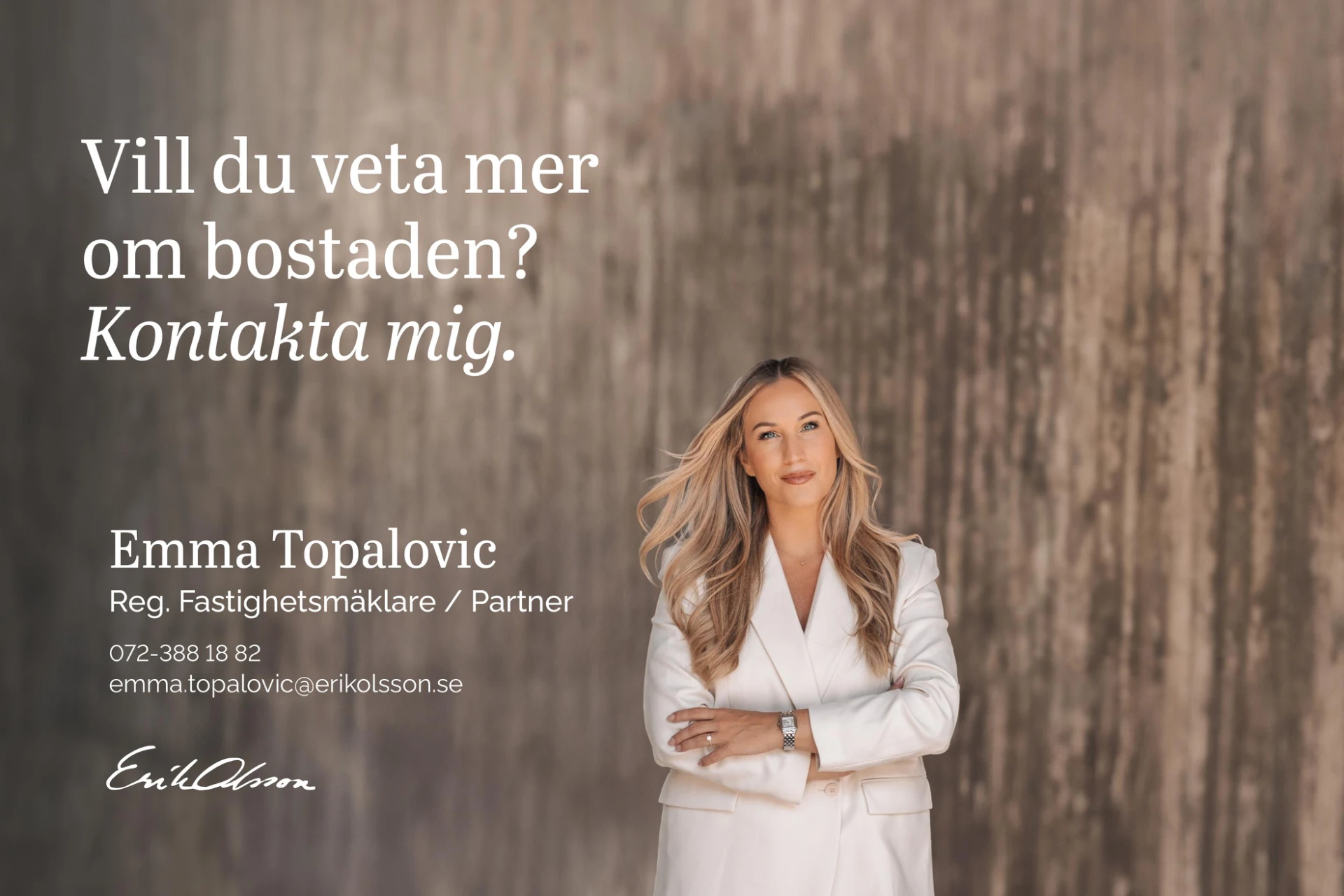 När du hittat ditt drömboende hjälper vi dig gärna att sälja din nuvarande bostad. För oss är det viktigt att du känner dig trygg både när du köper och säljer bostad via Erik Olsson. Därför är våra mäklare bland de vassaste och mest engagerade i branschen. Vi anstränger oss gärna lite extra för att din bostadsförsäljning ska bli perfekt. Hos oss får du en riktigt lyckad bostadsaffär – och bäst betalt.