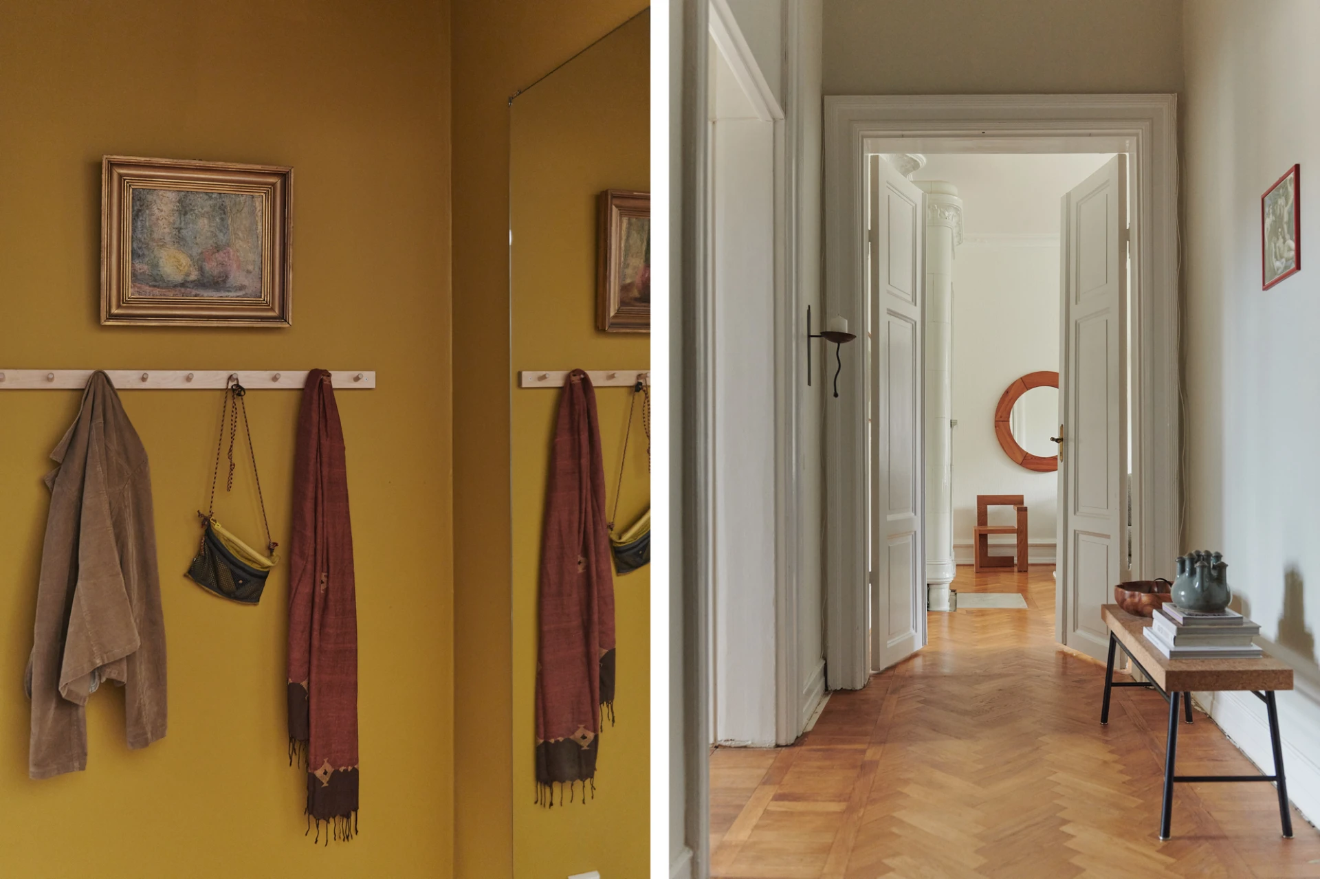 Stor, rymlig hall med plats för förvaring. Generös takhöjd, vacker takstuckatur och fiskbensparkett som direkt sätter tonen för resten av bostaden. Den långsträckta planlösningen möjliggör för sittbänk och praktisk förvaring. En hall som erbjuder funktion redan från första steget in i hemmet.