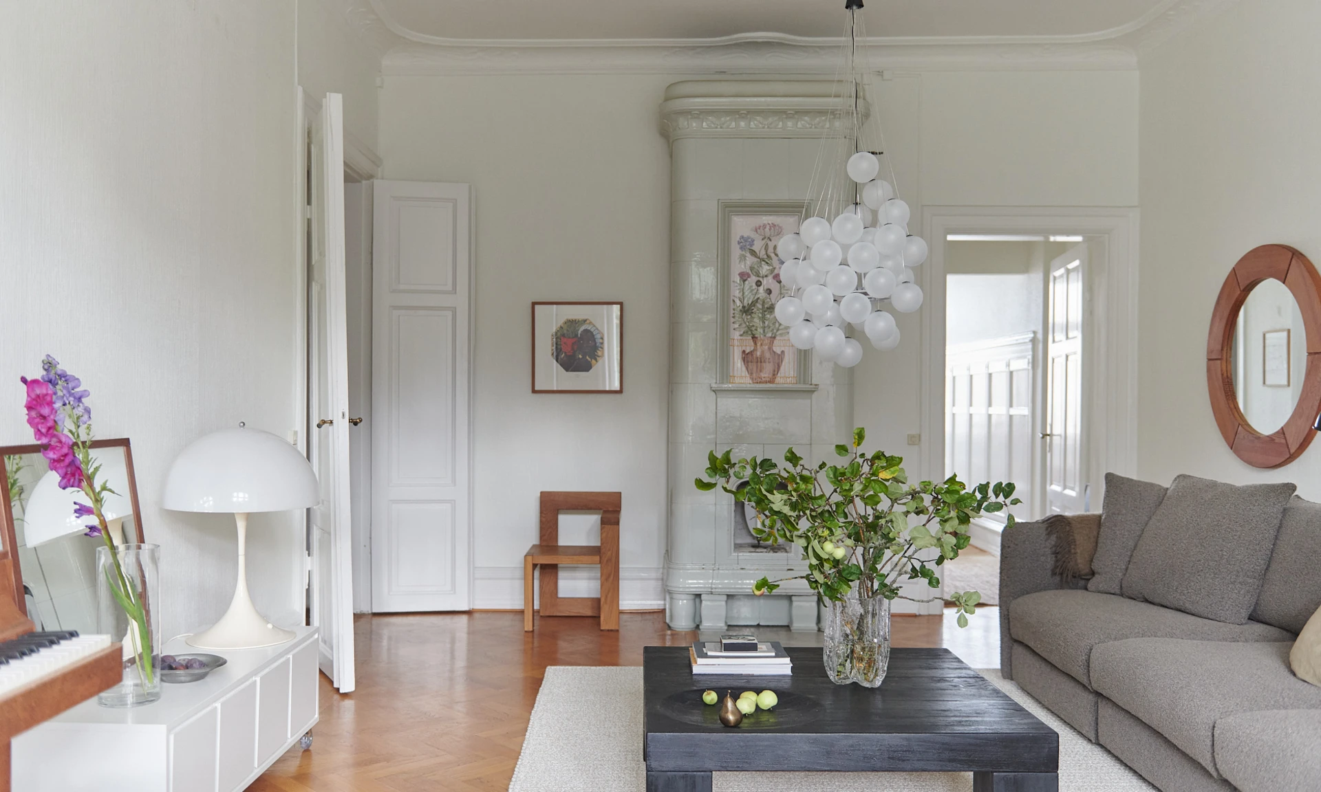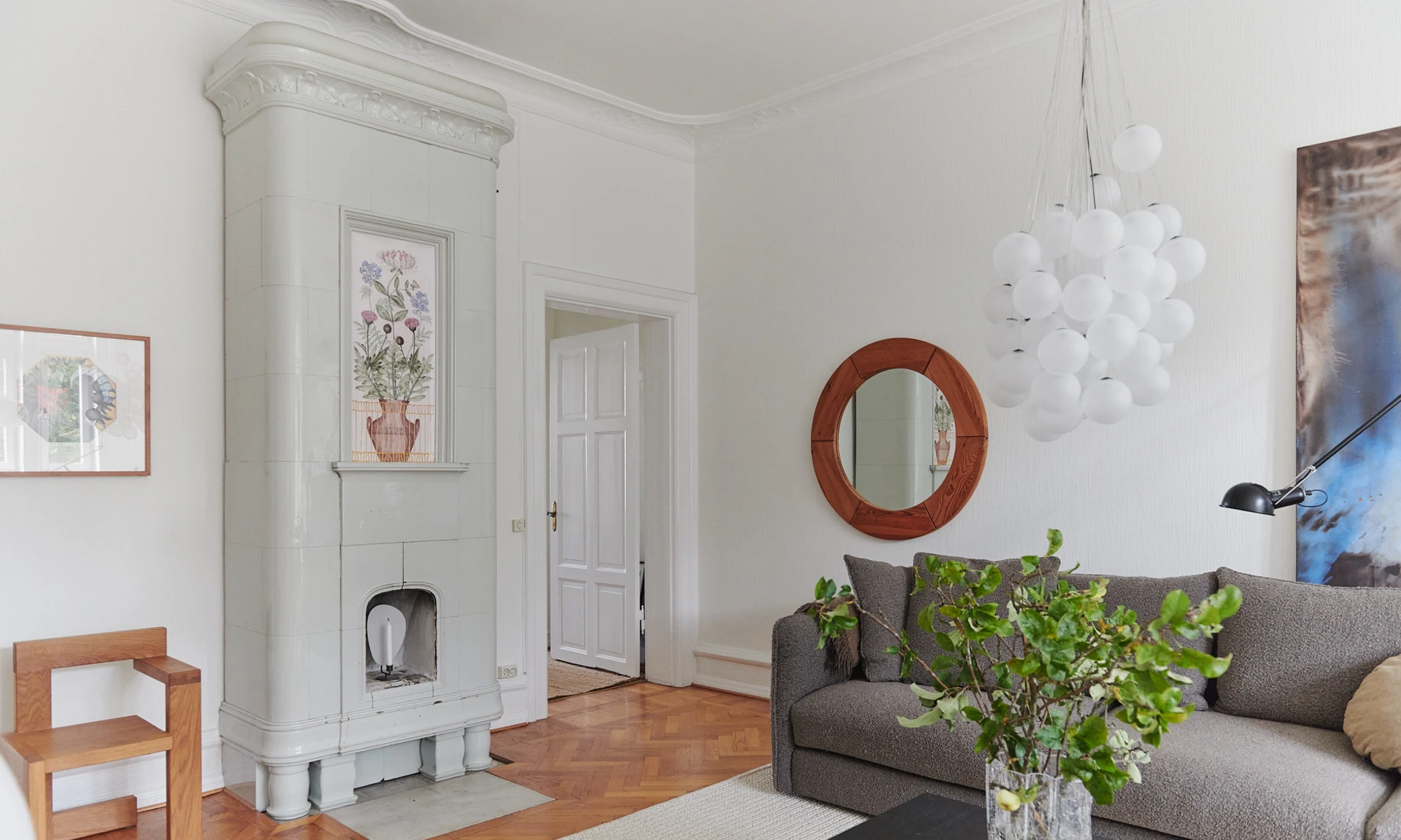 Planlösningen är genomgående, vilket gör att dagsljuset vandrar vackert genom rummen under dagens timmar. Sovrummen vetter mot den grönskande innergården - en rofylld oas med flera gemensamma ytor att njuta av. Här infinner sig lugnet, långt ifrån stadens brus men ändå mitt i den. Vardagsrummet vetter mot de höga trädkronorna på Sankt Pauli kyrkogård och pryds av en majestätisk kakelugn. Det var dessutom här, i detta rum, som författarparet Maj Sjöwall och Per Wahlöö skrev flera av de klassiska Beck-romanerna. En plakett på fastighetens fasad vittnar än i dag om detta spännande kulturarv.