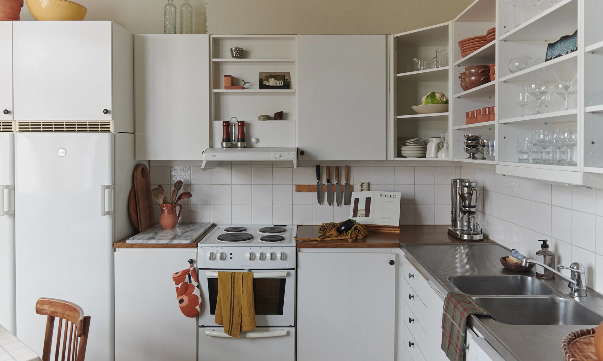 Köket har en trivsam och ljus karaktär, med gott om utrymme för både matlagning och umgänge. Det bär fortfarande drag av 80-talet, vilket ger en fantastisk möjlighet för nästa ägare att skapa sitt drömkök, eller flytta in och trivas i ett fullt fungerande kök med generös förvaring.
