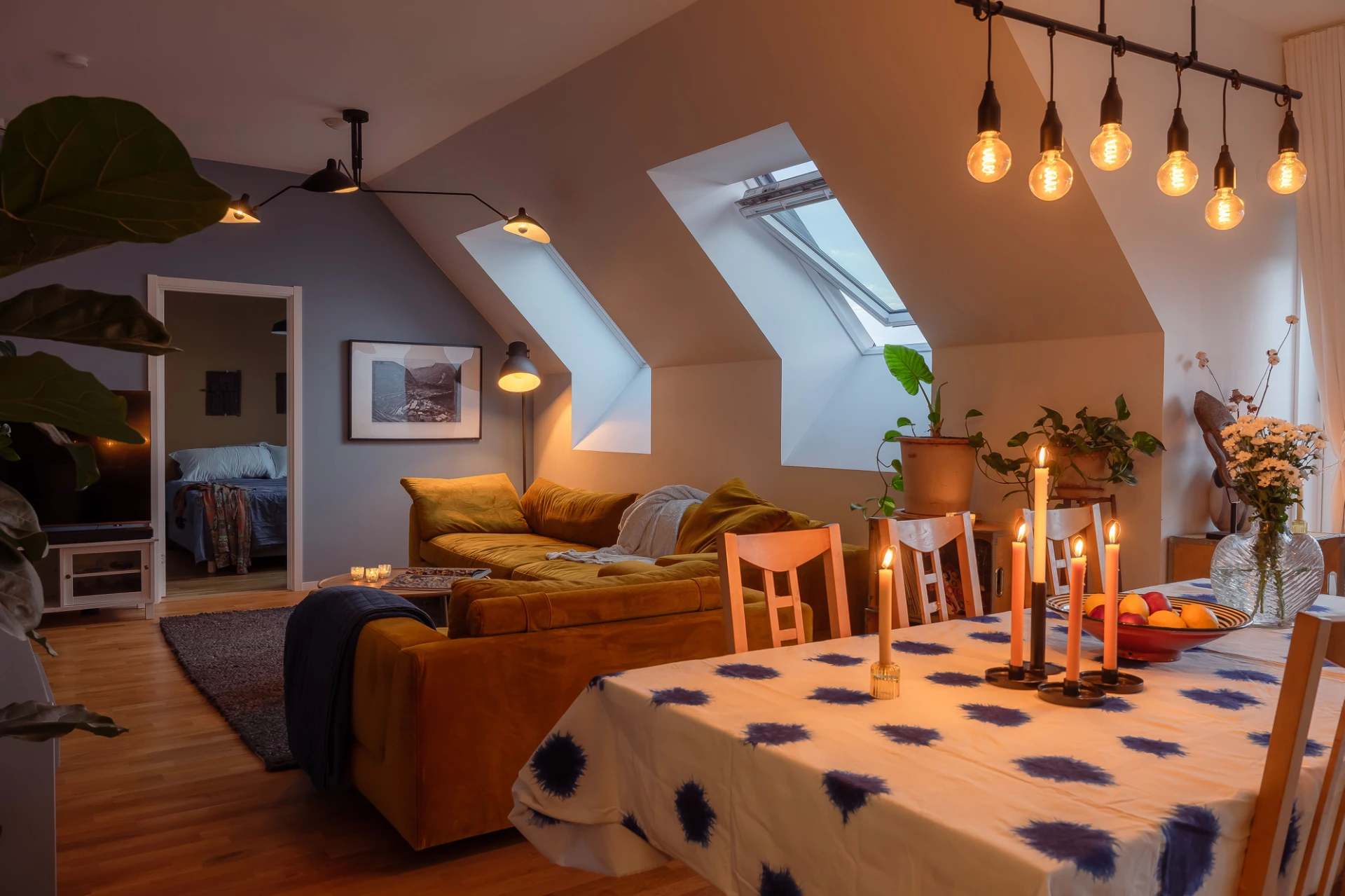 Letar du efter en lägenhet med det där lilla extra? Då har du kommit helt rätt! Här presenteras en magisk bostad högst upp i huset på ytterst privat läge. Med 2,9 m i takhöjd ges här en otrolig rymd samtidigt som snedtaken skapar karaktär till bostaden. På den väl tilltagna balkongen i västerläge kan man njuta av solen hela kvällen lång med grönskande och fri utsikt, utan någon direkt insyn. Invändigt väntar en modern interiör med smakfullt kök som integreras i en öppen planlösning med vardagsrummet vilket skapar stora sociala ytor. Bostaden erbjuder även tre bra sovrum som är generösa till storleken, bra förvaring samt två badrum i stilrent utförande. Föreningen erbjuder gemensam takterass och garage.