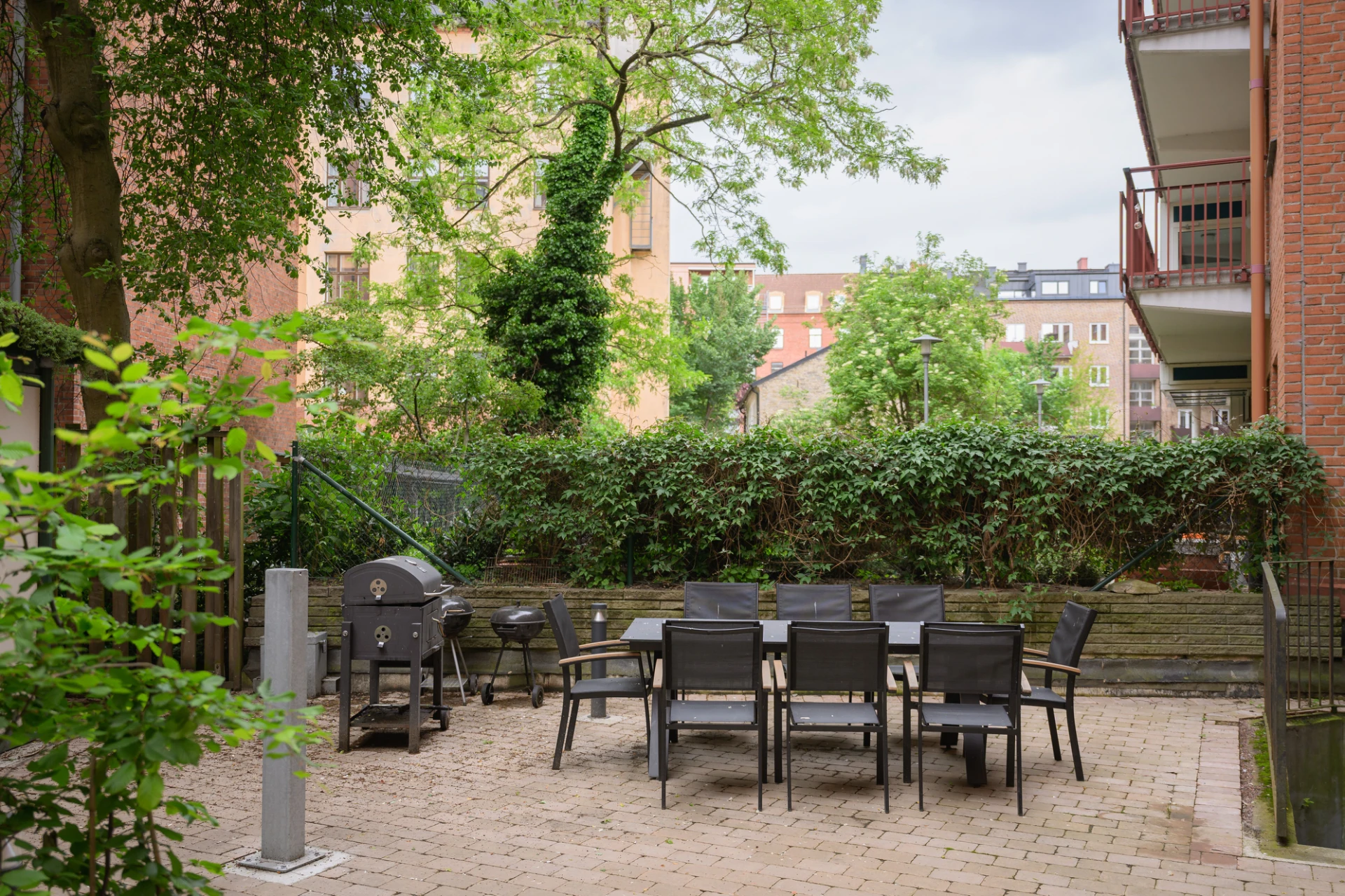 Föreningen har en trevlig innergård med tillgång till gemensamma utemöbler och grill.