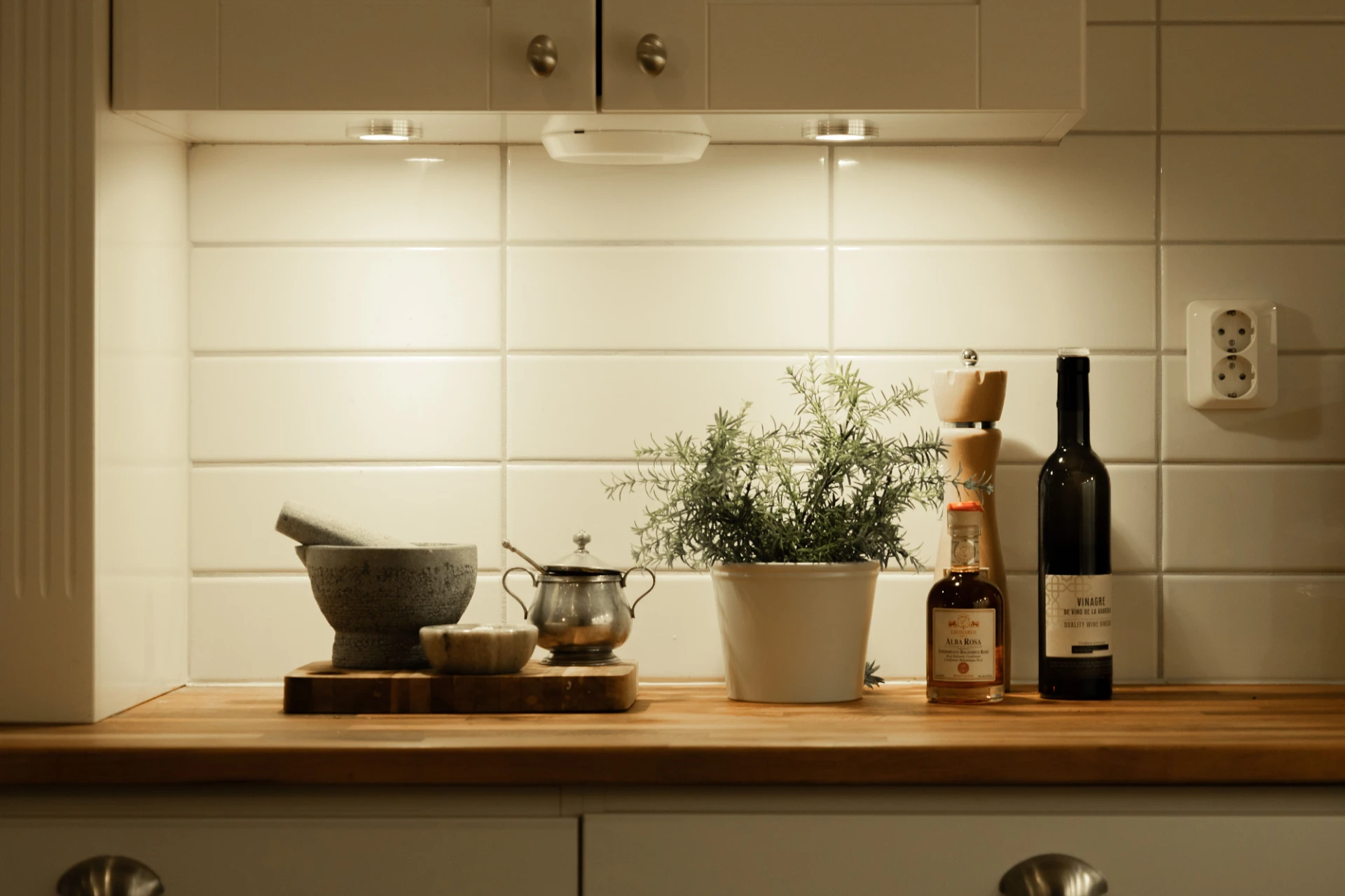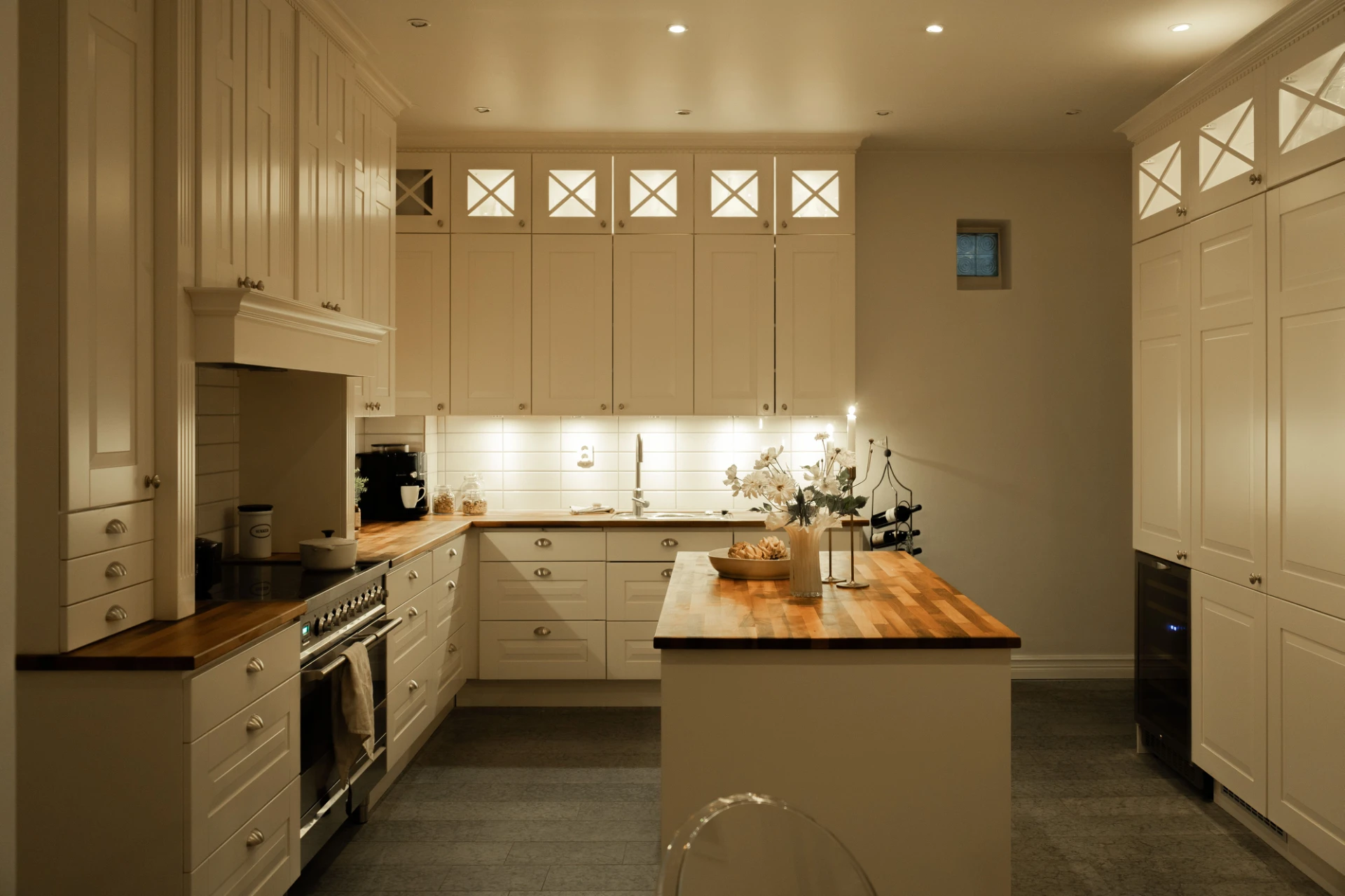 Målning och spackling av dörrkarmar, målning av balkong samt slipning och oljning av bordsytor i köket har