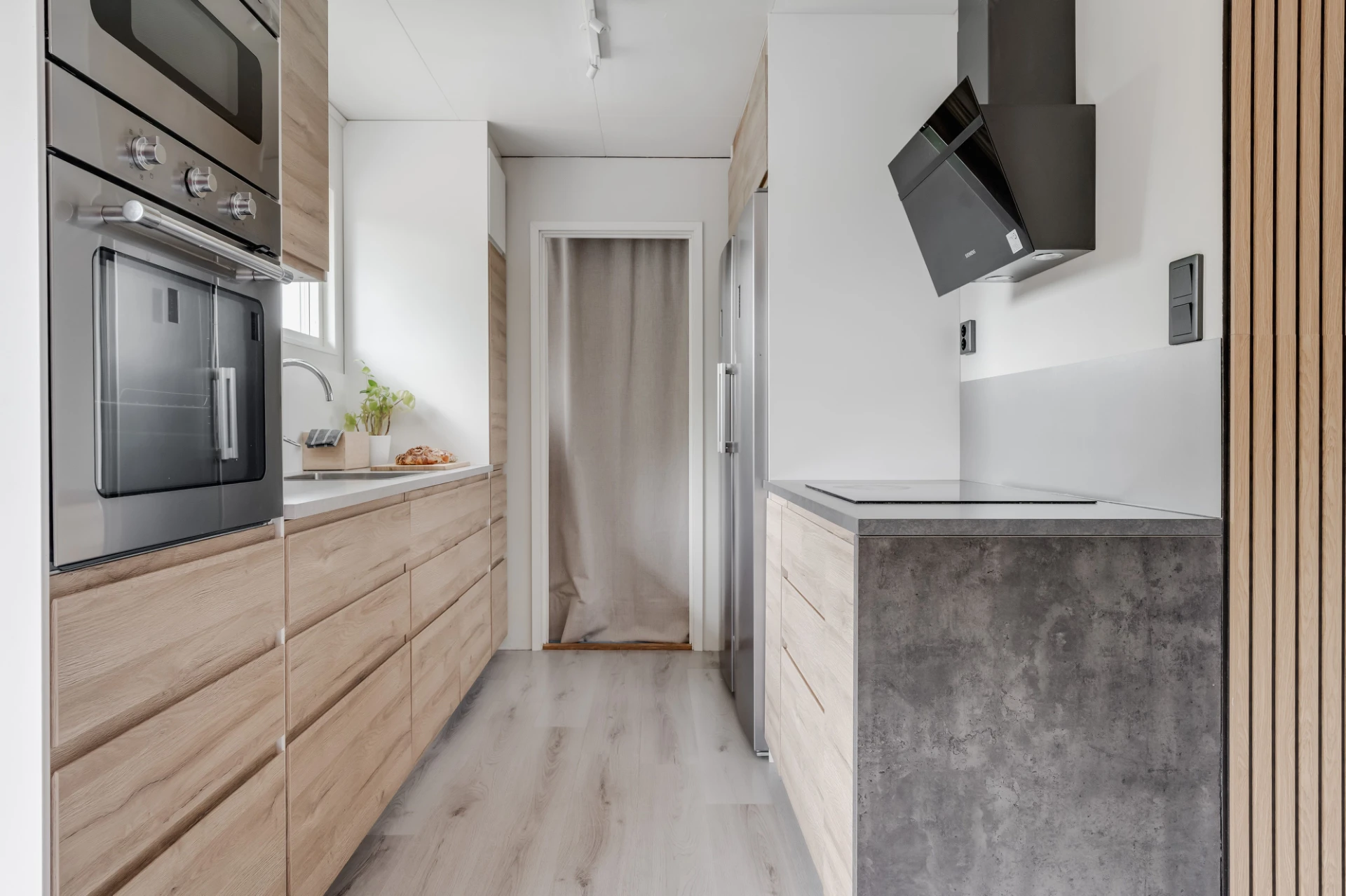 Kök renoverat 2024 från Ikea. Bra planerat med gott om förvaring. Kyl och frys i fullhöjd, rostfritt utförande. Spishäll, köksfläkt och integrerad diskmaskin, ugn och micro erbjuds.