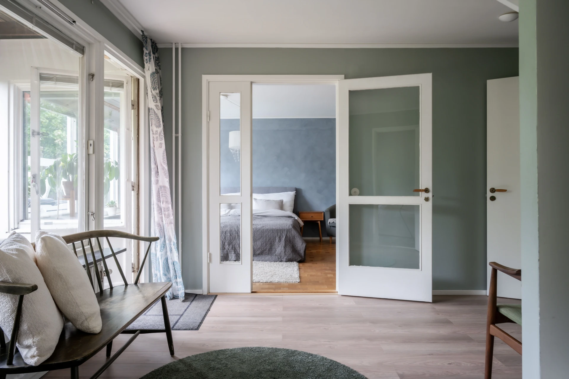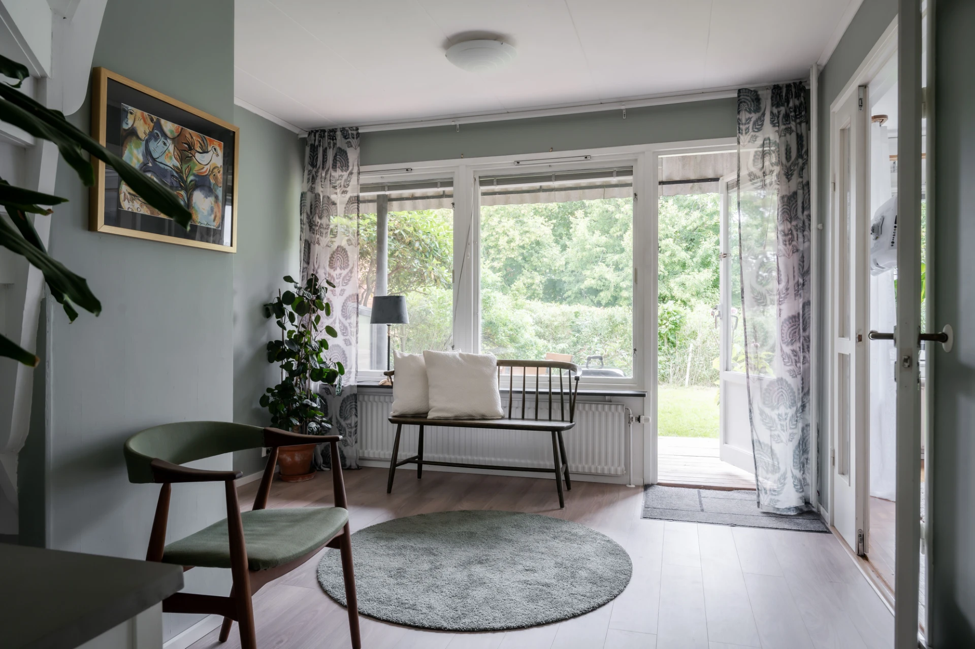 Här finns plats för en härlig läshörna, ett piano eller ett skrivbord? Inred efter eget behov. Härifrån når ni utgången till altanen på baksidan. Praktiskt att erbjuda in/utgång genom ett allrum.
