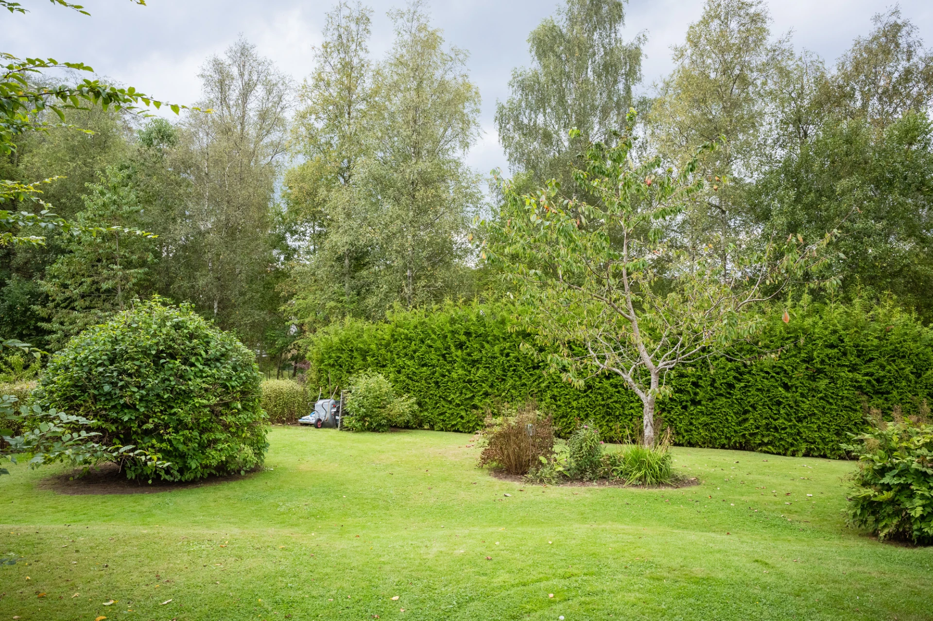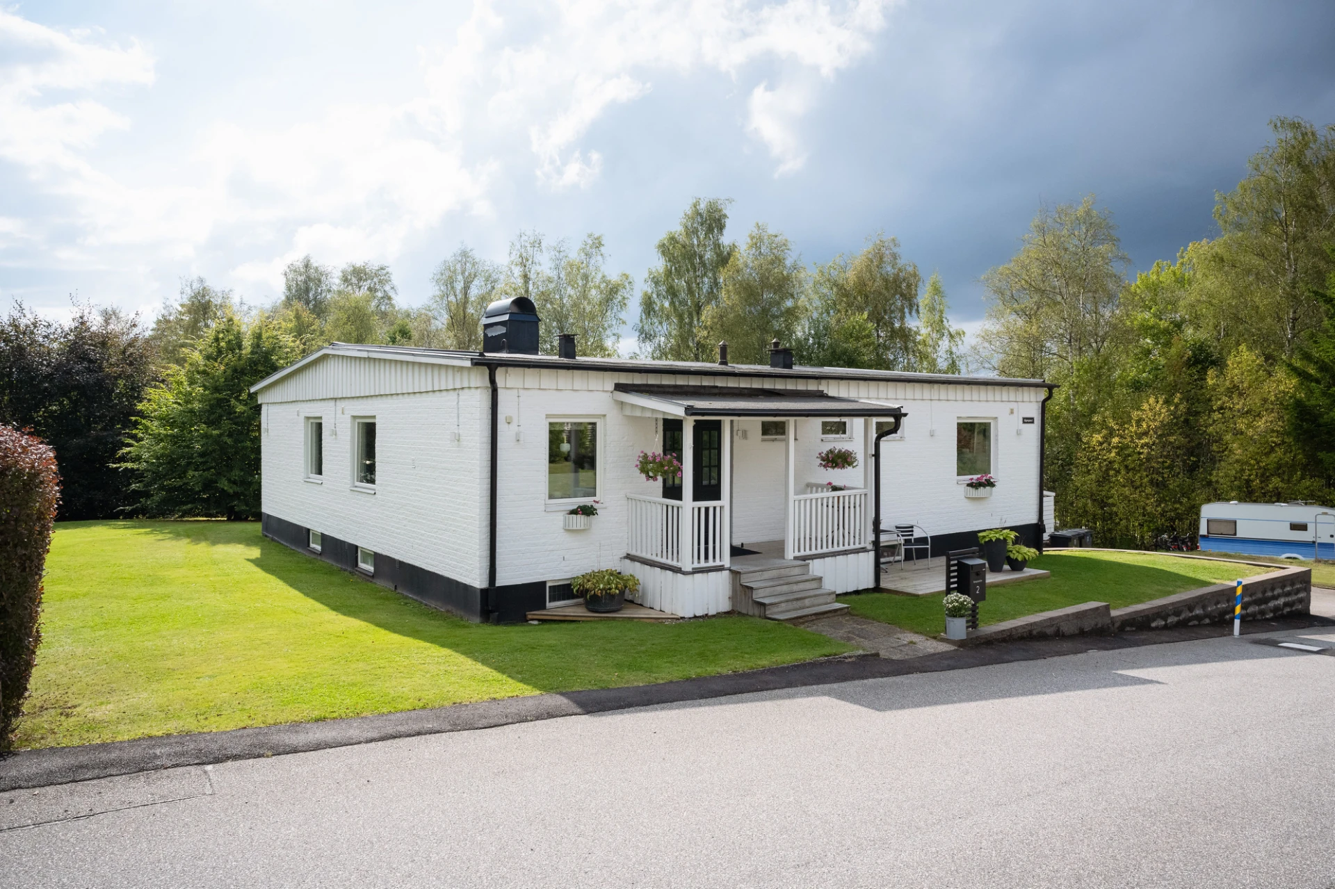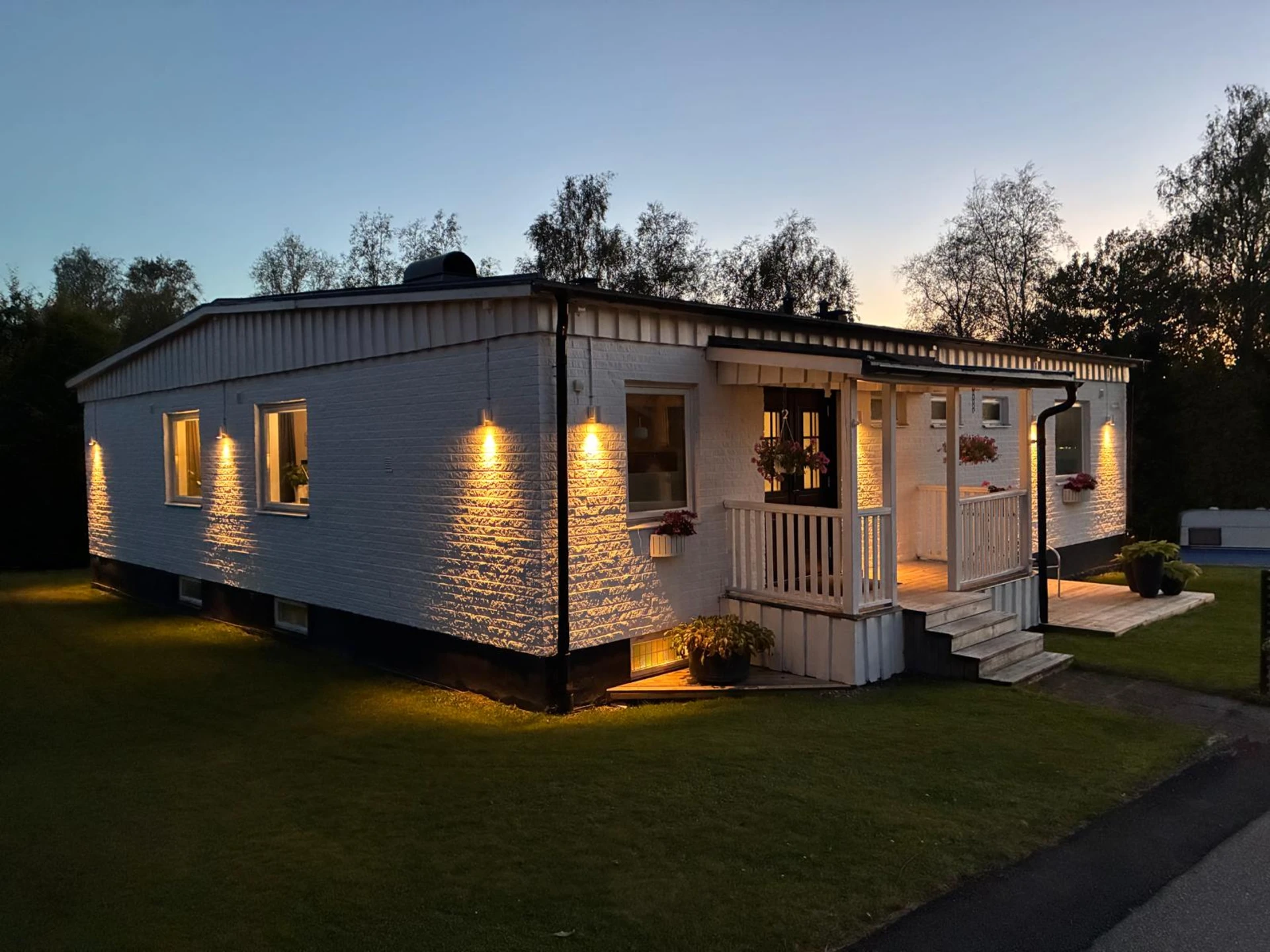 Garage i direkt anslutning till huset – praktiskt och skyddat.