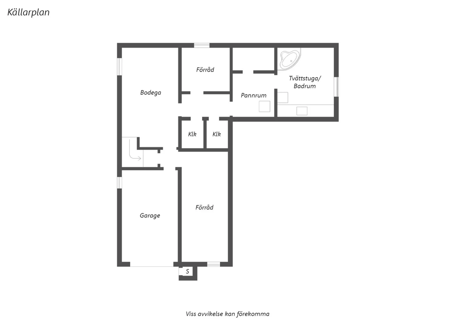 Pannrum med ljusa väggar och målat betonggolv – bra för förvaring.