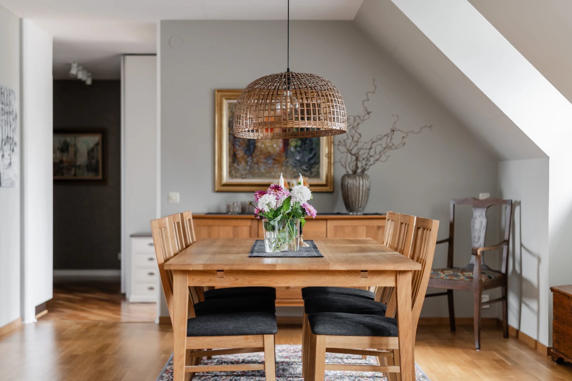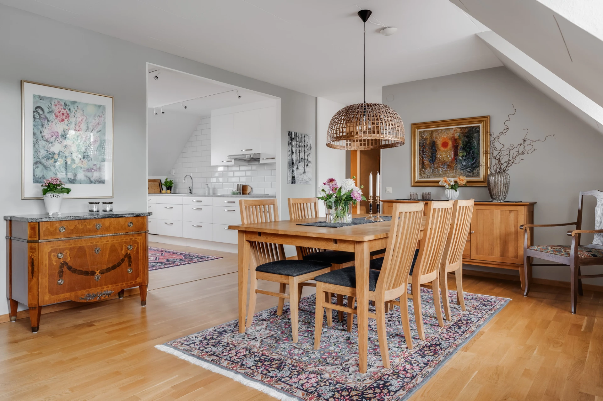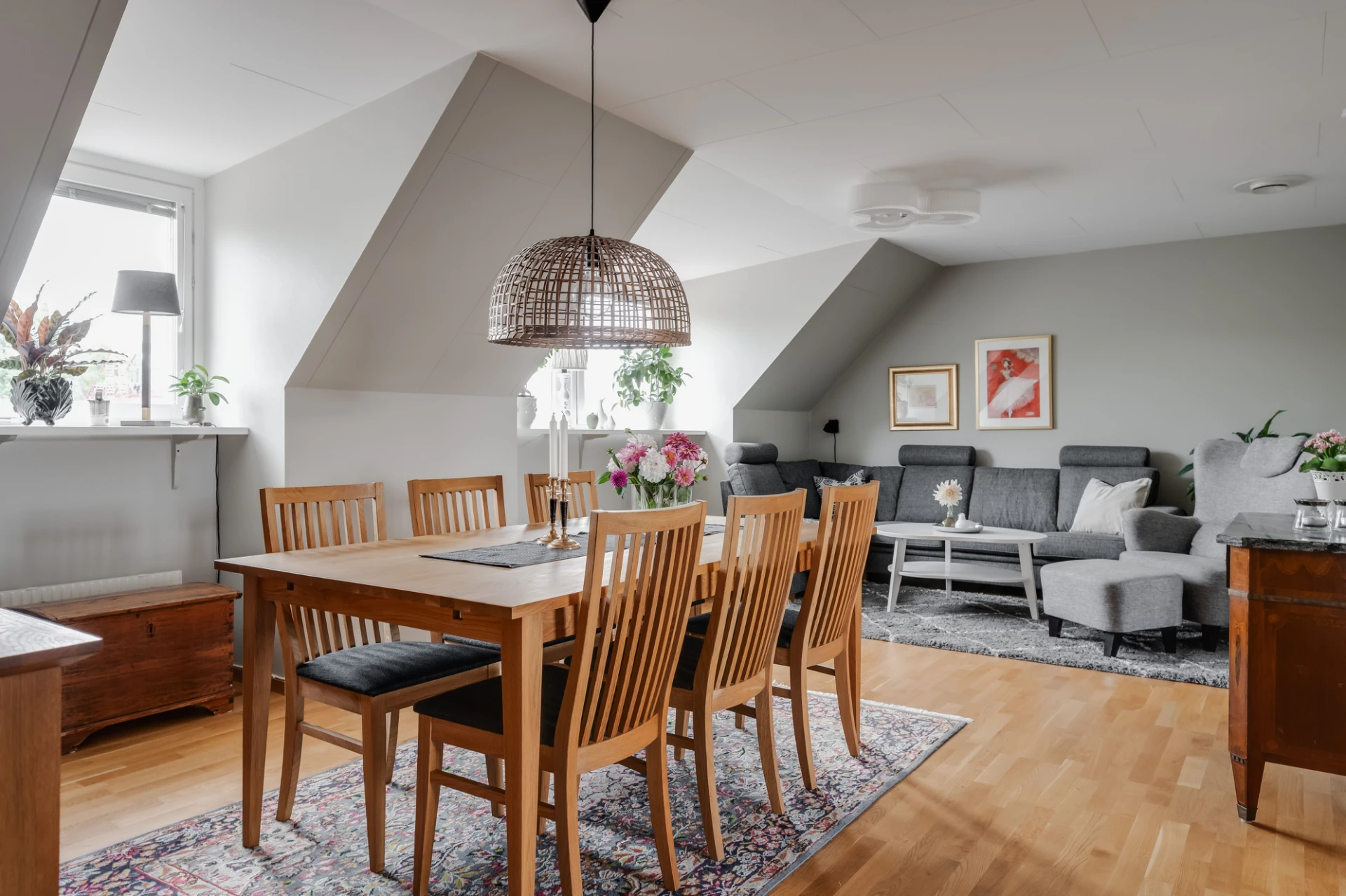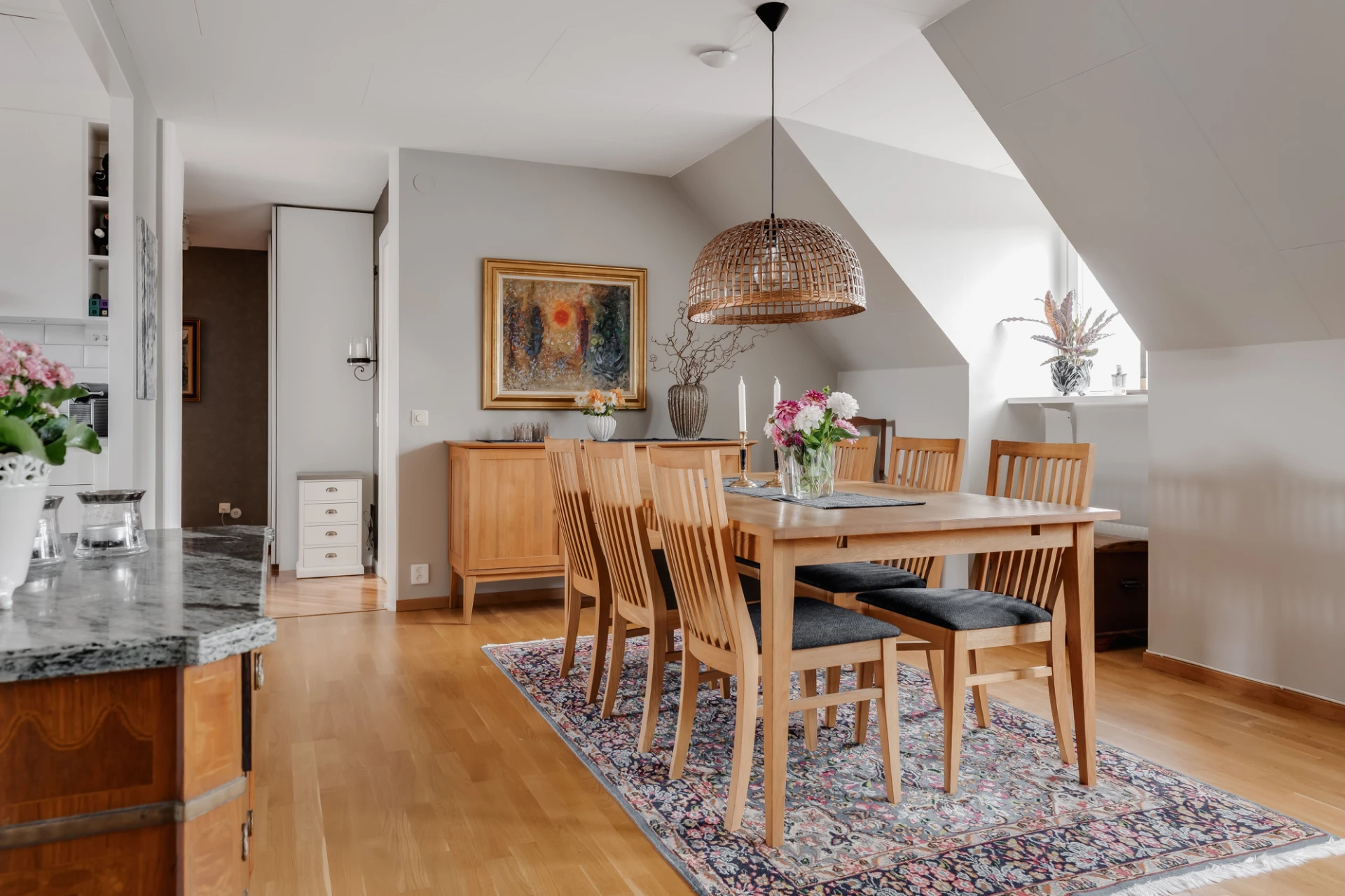 Här kan du smidigt inreda med en större matsalsgrupp och bjuda över vänner och familj på middag.