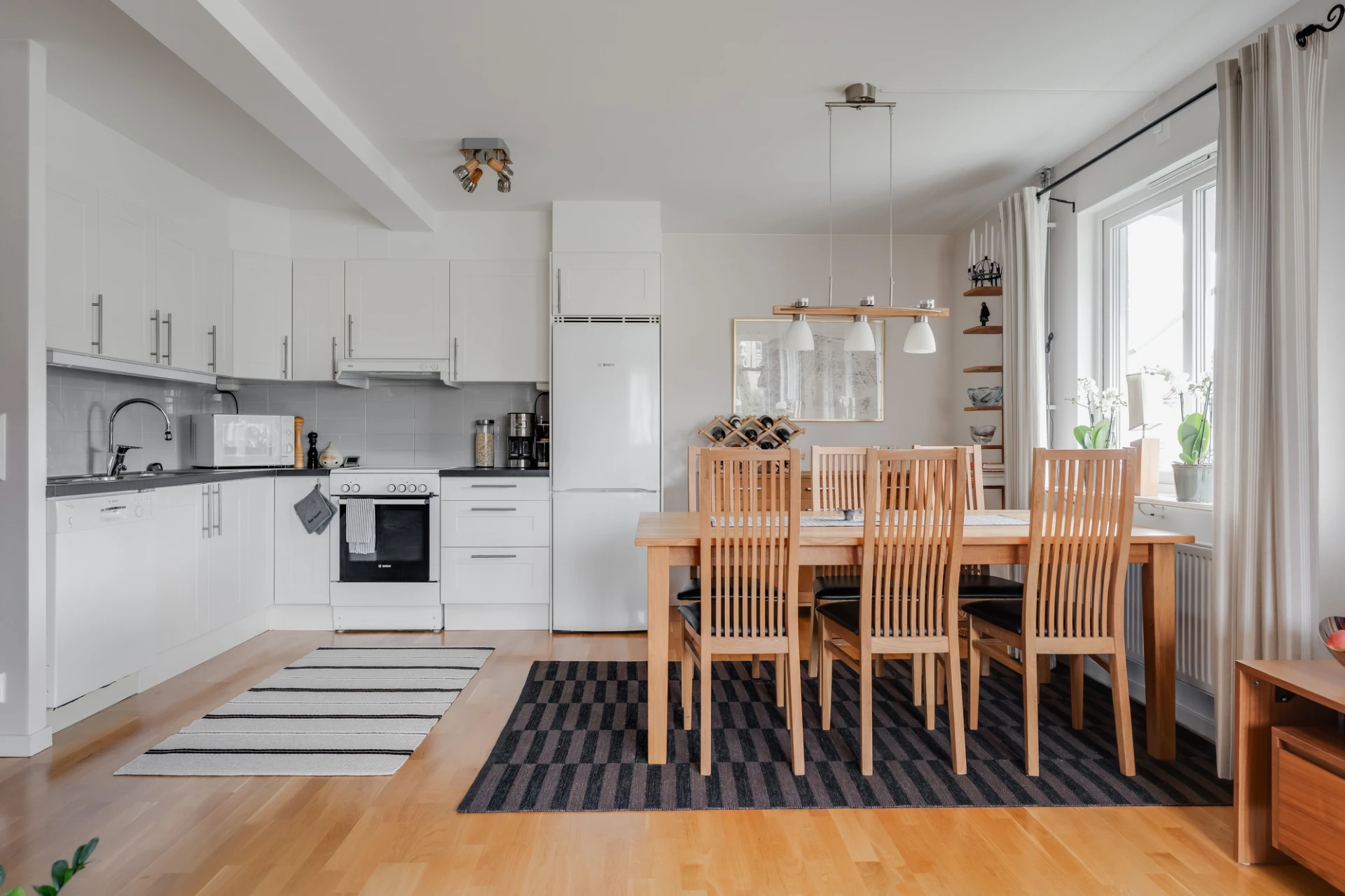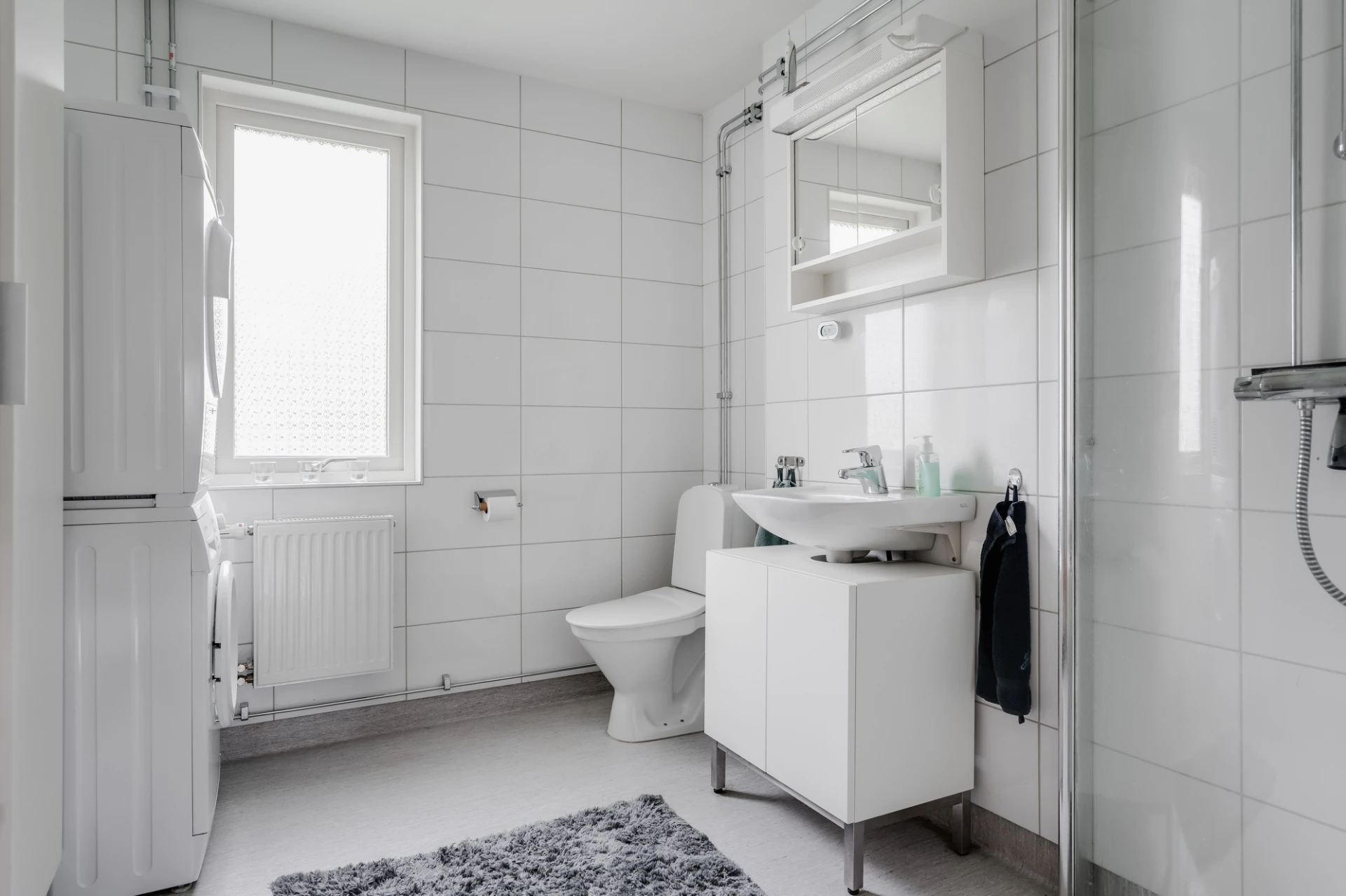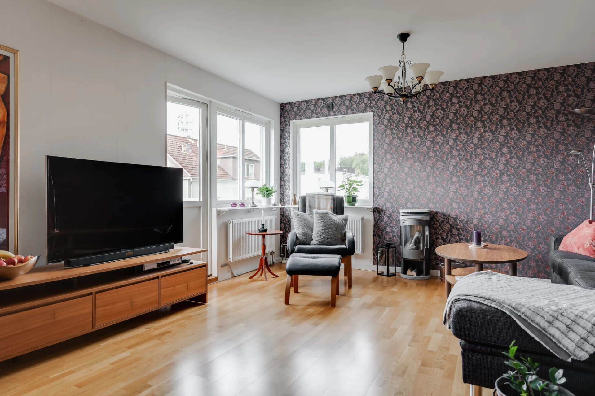 Huset totalrenoverades 2009 och fördelat med två bra sovrum samt förvaring. Stort och öppen planlösning mellan kök och vardagsrum. Plats för matsalsdel samt soffgrupp framför teven. Utgång till balkong med kvällssol. Badrumet är rymligt och är utrustad med dusch, kommod, wc samt tvättmaskin och torktumlare.