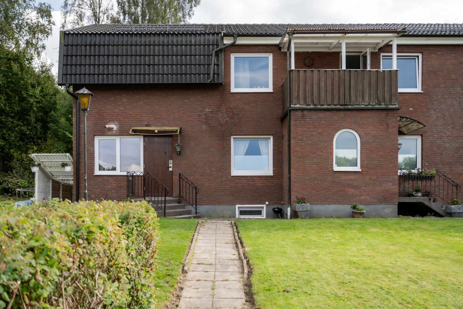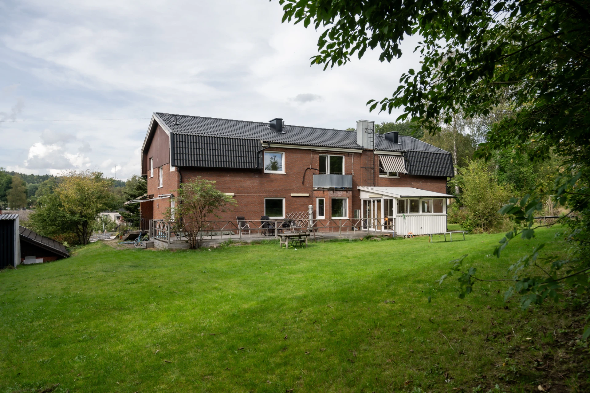 Huset är idag indelat i två större lägenheter och två mindre. Därav hög driftskostnad då det bor fem vuxna och 5 barn på adressen. Kontakta ditt försäkringsbolag för en exakt premie.