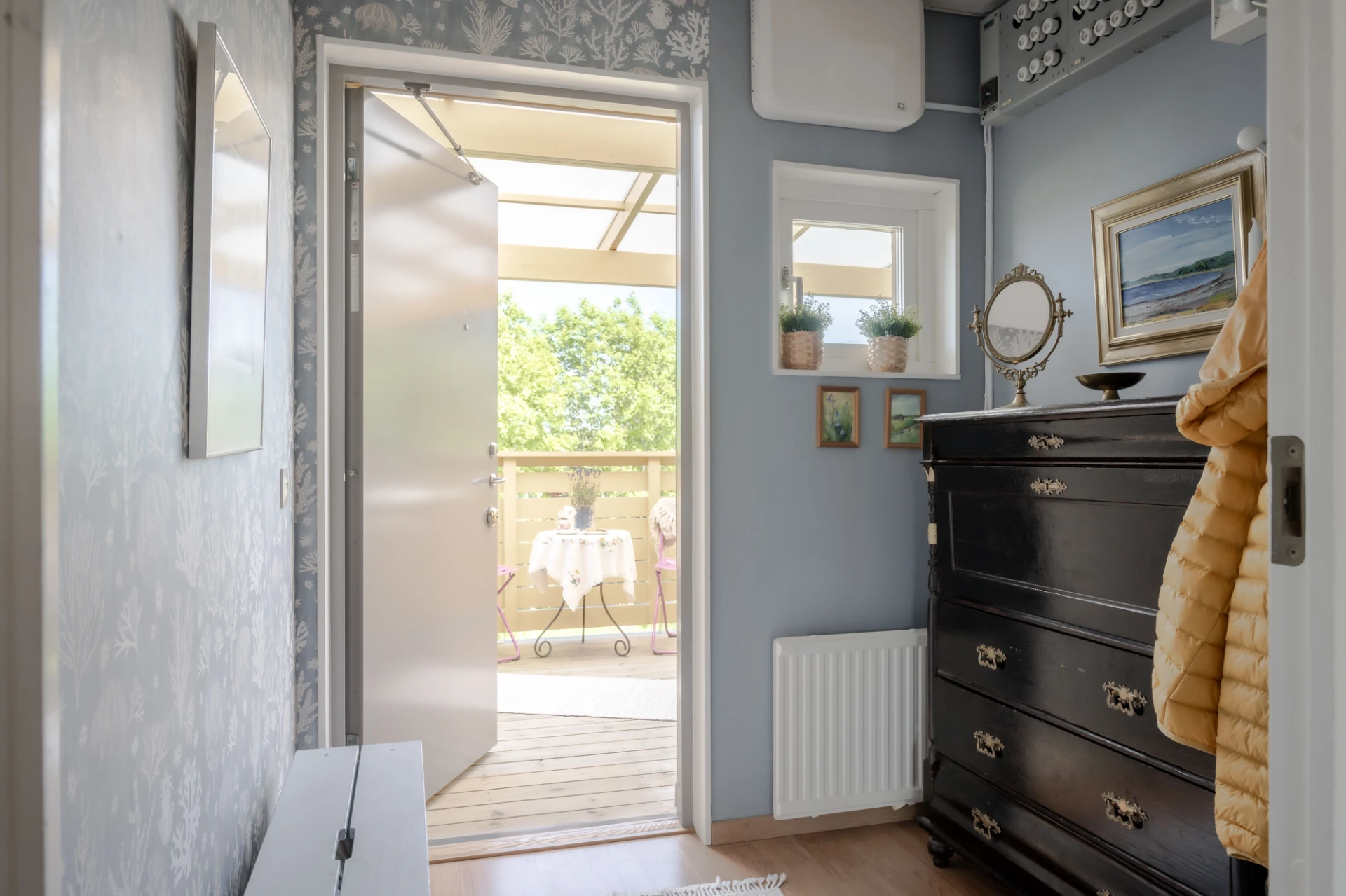 Till bostaden hör ett rymligt förråd och föreningen har ett gemensamt inglasat uterum med uteplats som föreningens medlemmar kan låna till kalas, här finns utemöbler och grill. Gemensam tvättstuga finns också på gården. Här bor du i en välskött HSB förening med villakänsla utan att behöva tänka på yttre underhåll. I närområdet erbjuds skola och förskola. Bygdens pärla, liten obemannad matbutik ca 200 m bort har verkligen givit Bredared ett lyft, bra utbud och humana priser. Bredared är känt för sitt lugn, sina naturområden och nära till golfbanan och friluftsliv.