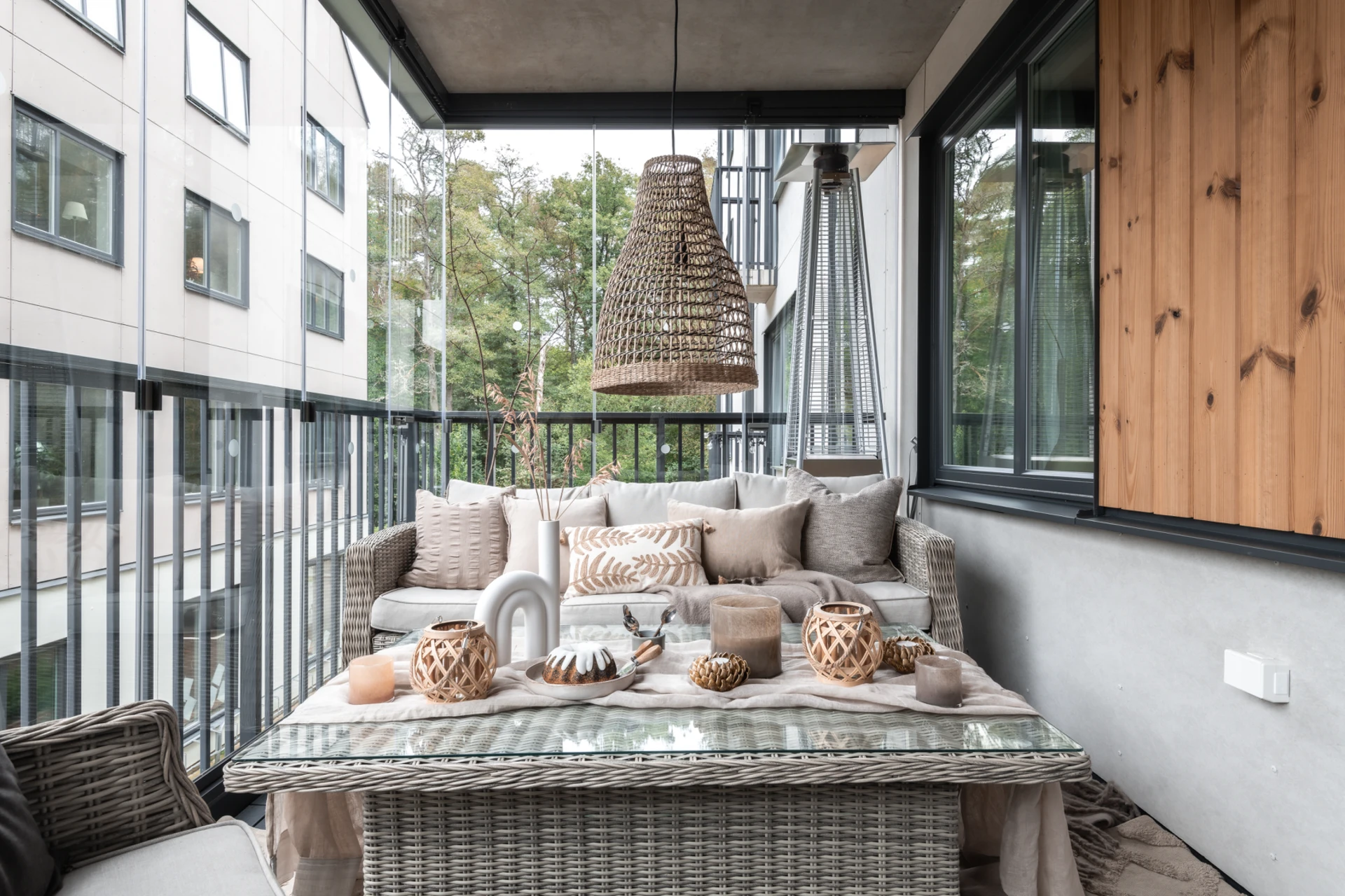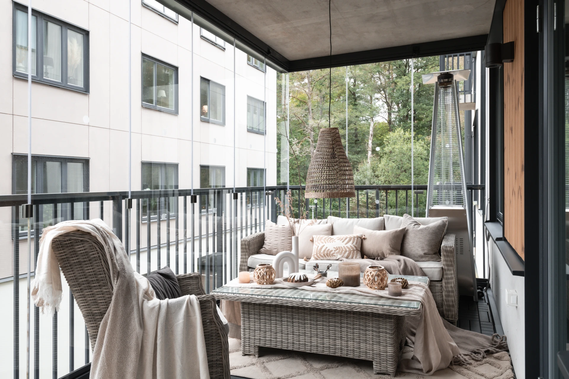 Det öppna köket tillsammans med det luftiga vardagsrummet erbjuder en öppen social planlösning, Från vardagsrummet når du den trivsamma inlasade balkongen med ett perfekt solläge. Här har man också utsikt mot innergården. Bostaden bjuder på en praktisk hall med bra klädförvaring, vackra stenplattor både vid entrédel och hall, övriga rum har parkettgolv. Det finns även två rymliga sovrum samt ett lyxigt badrum i tidlös design som har dusch/badkar men också tvättavdelning med tvättmaskin och torktumlare samt förvaringsskåp.