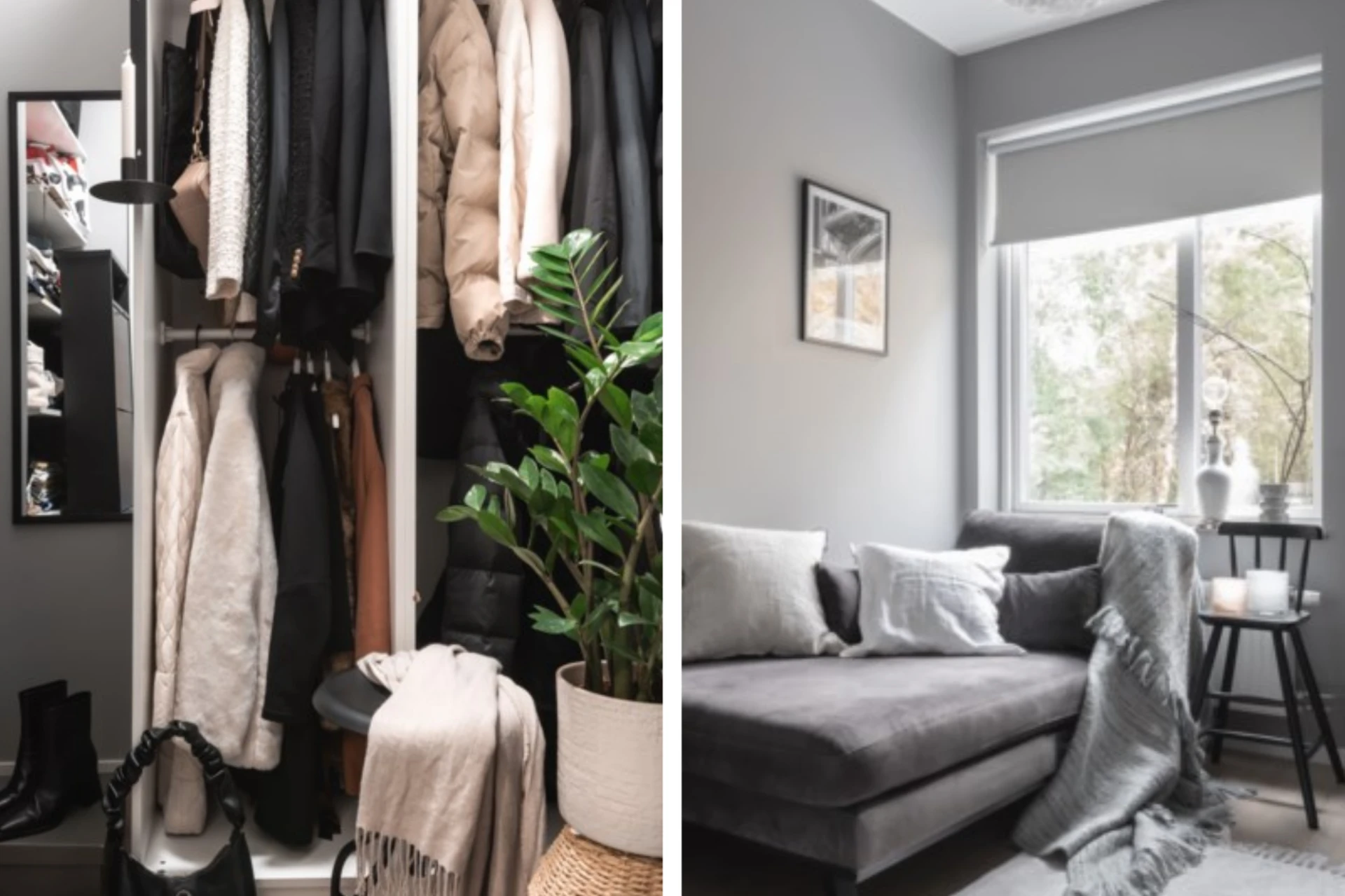 Entrén/hallen ger en lyxig känsla med blanka stilrena stenplattor på golvet. Här finns både en öppen yta och garderob som skänker god klädförvaring.
