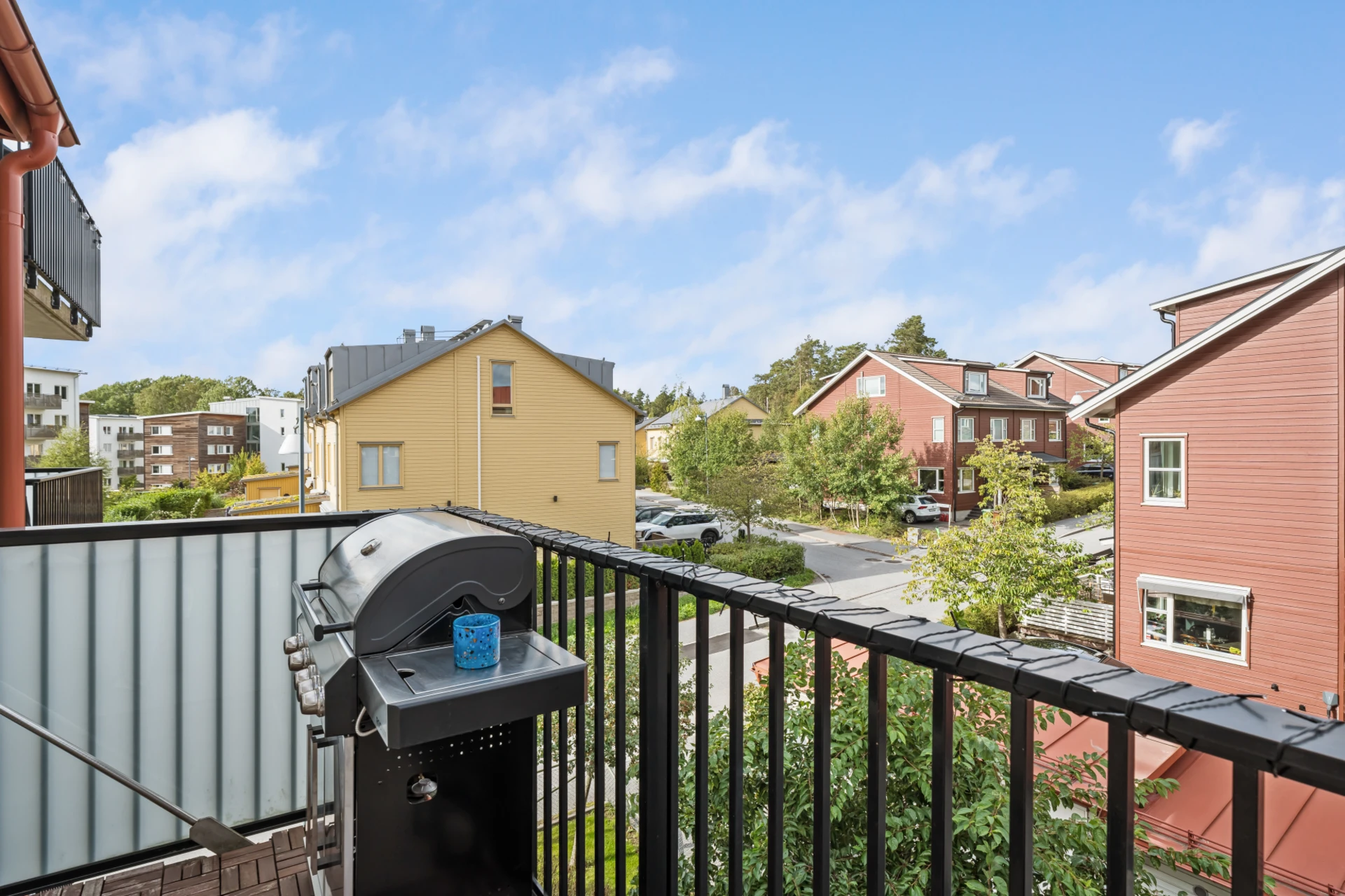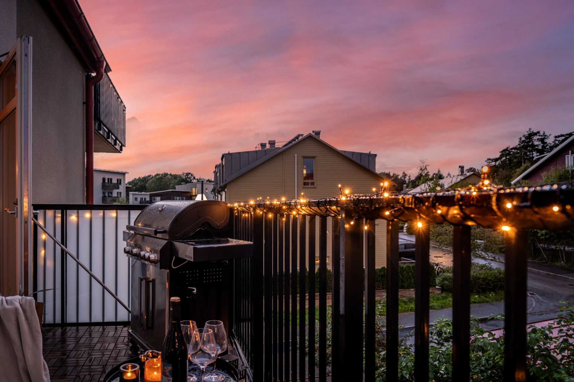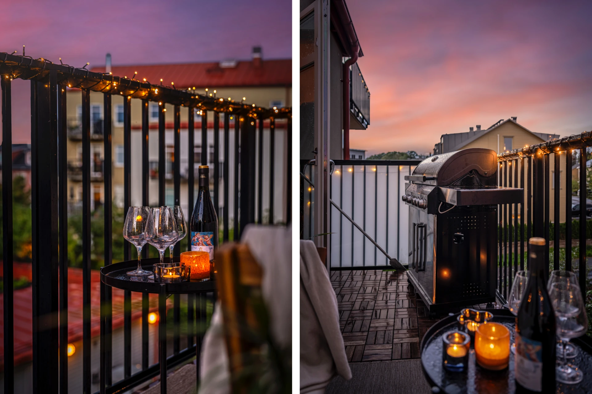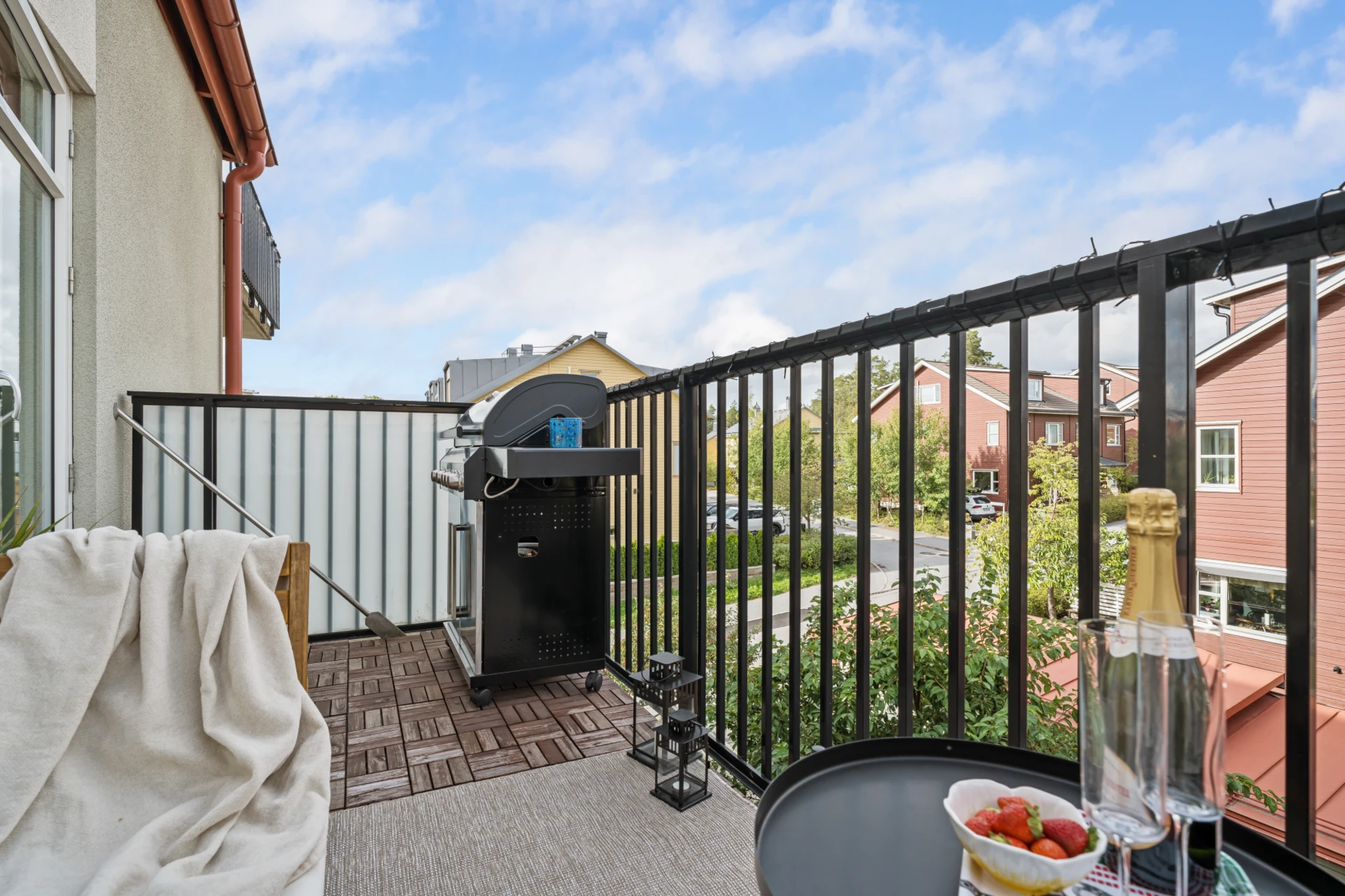Mysig balkong med plats för både soffgrupp och grill samt annan önskad möblering.