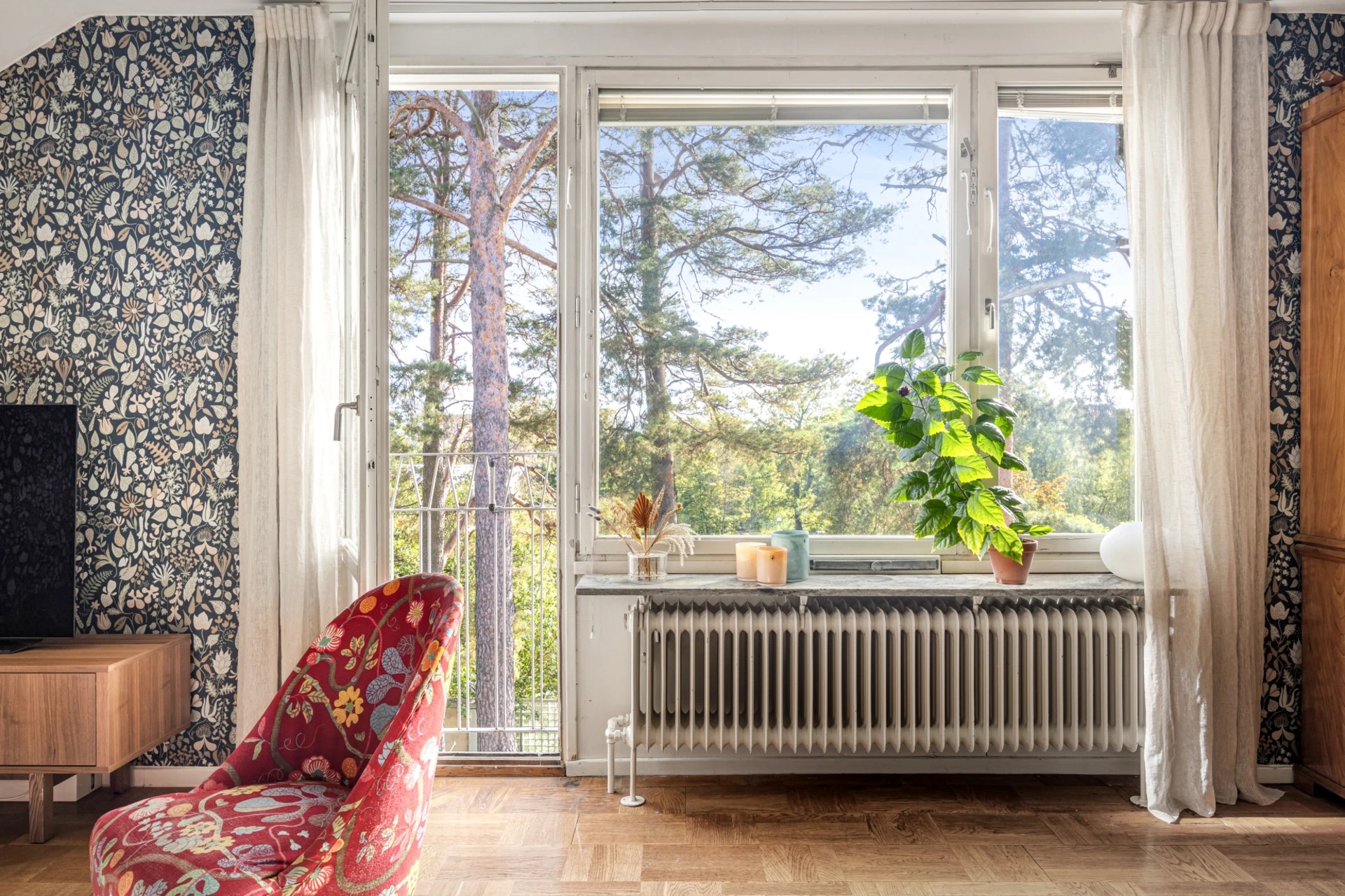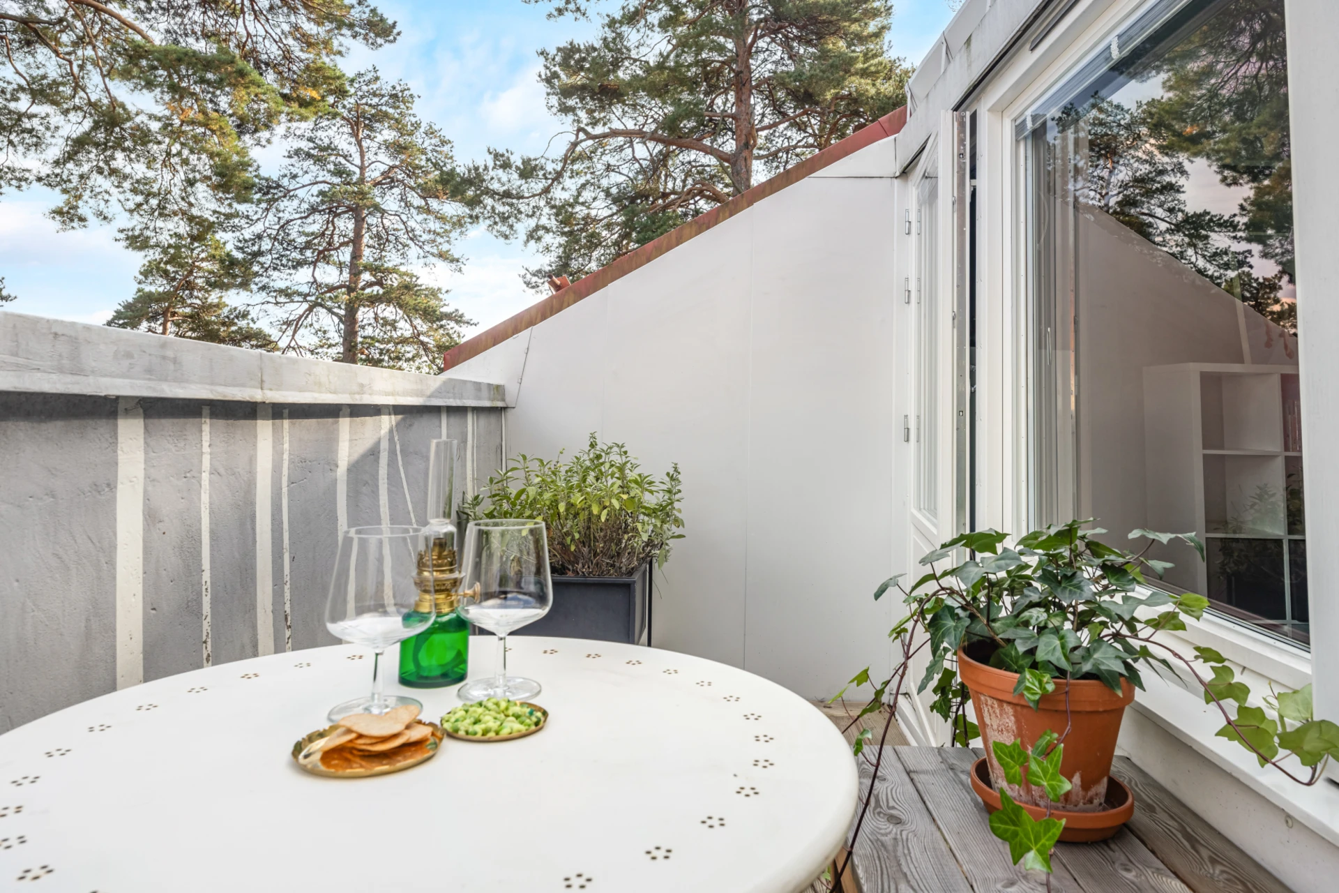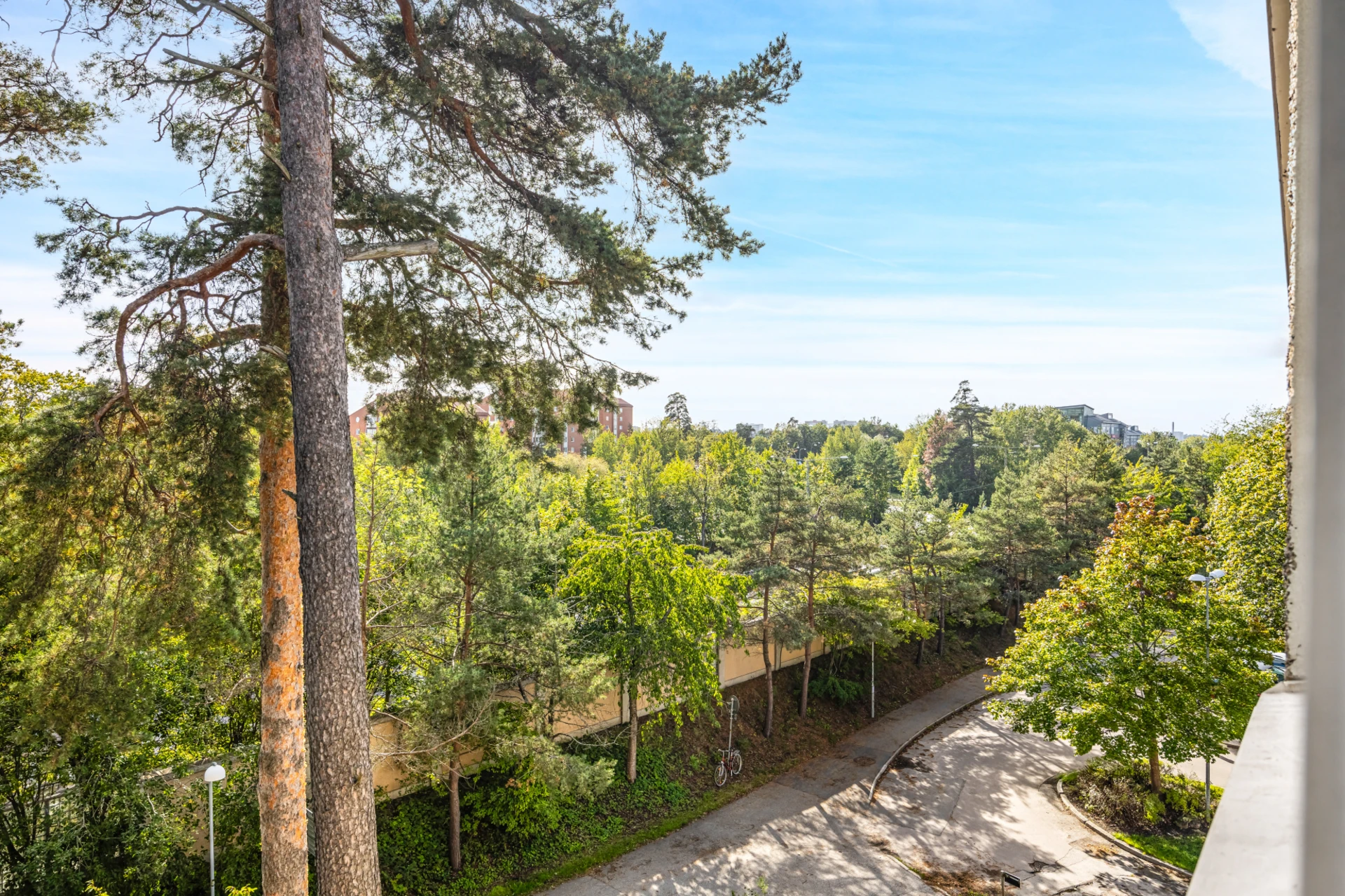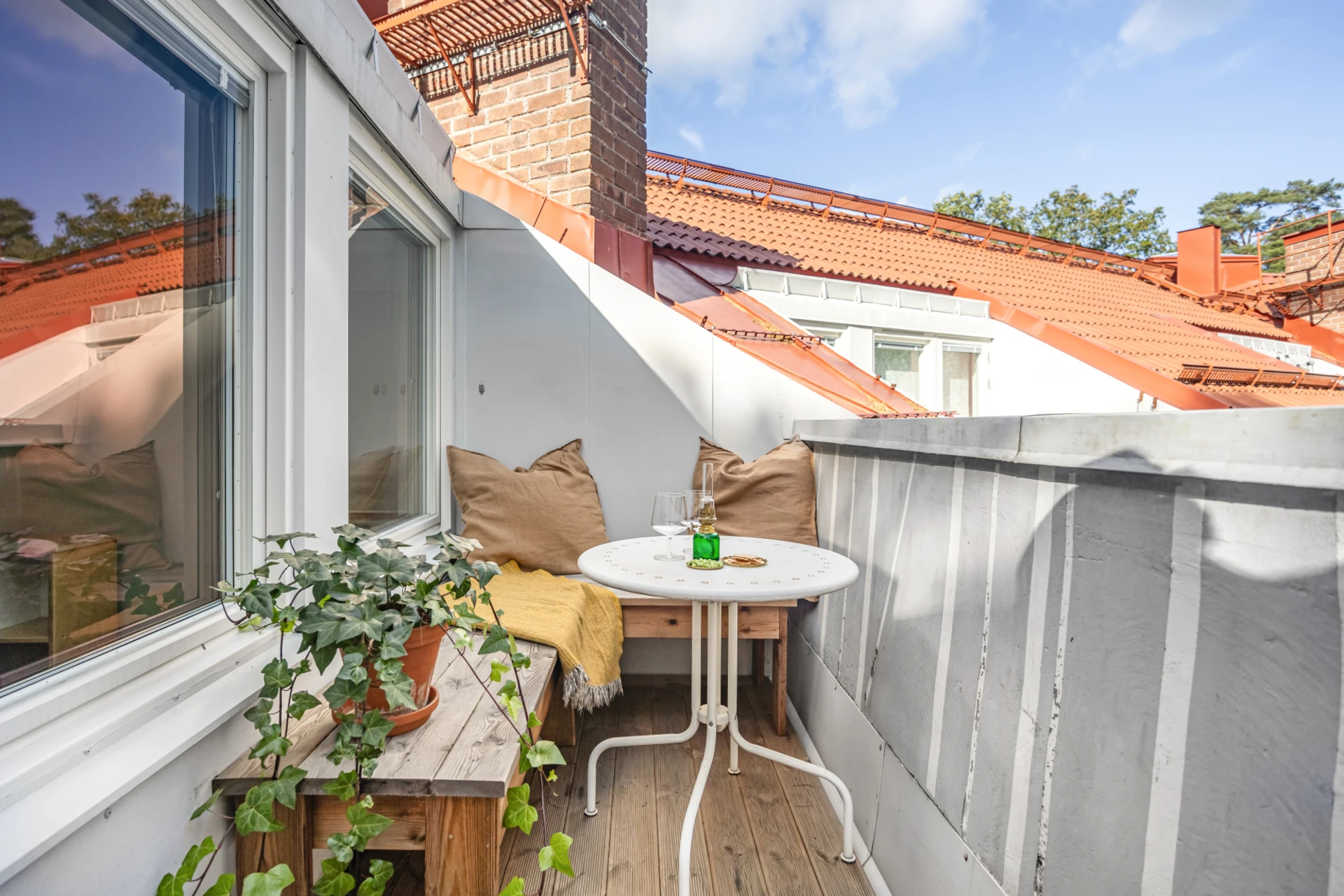 Välkommen till denna mysiga lägenhet högst upp i huset! En fantastisk terrass där du kan njuta av solen med ekorrar och fåglar som grannar bland de gamla tallarna intill. Stor innerhall som idag disponeras med en extra sovdel med takfönster. Samtliga fönster och takfönster (ej fönster vardagsrum) är renoverade och balkongdörr. Stambytt helkaklat badrum med golvvärme och tvättmaskin. Taken är omlagda i hela föreningen. Förvaringsmöjligheterna är goda med klädkammare och inbyggda garderober. Därtill finns två källarförråd.